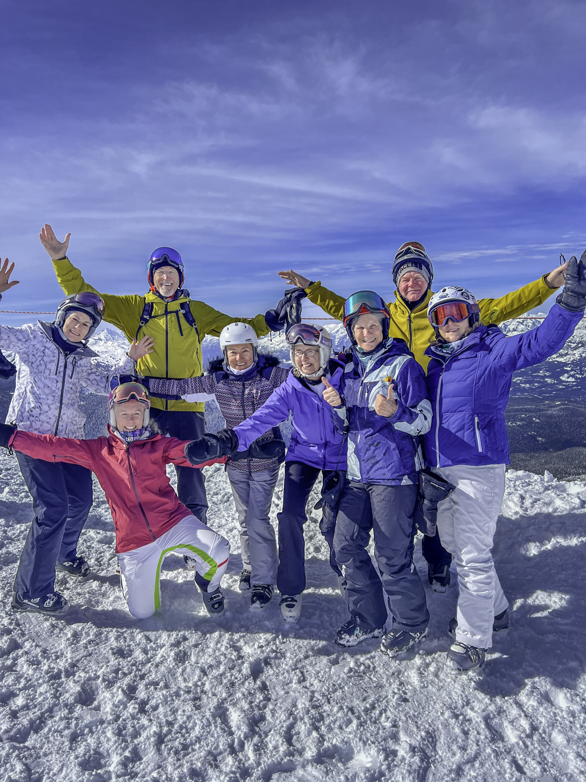 But just as nature often does, it offered us a delightful surprise as the week progressed. The weather gods smiled upon us, gradually clearing the skies and revealing stunning vistas that seemed straight out of a postcard. Those initial days of limited visibility transformed into several “blue bird” skiing days – those glorious moments when the sky is a brilliant shade of azure, the sun glistens on the snow, and the surrounding mountains emerge majestically into view.