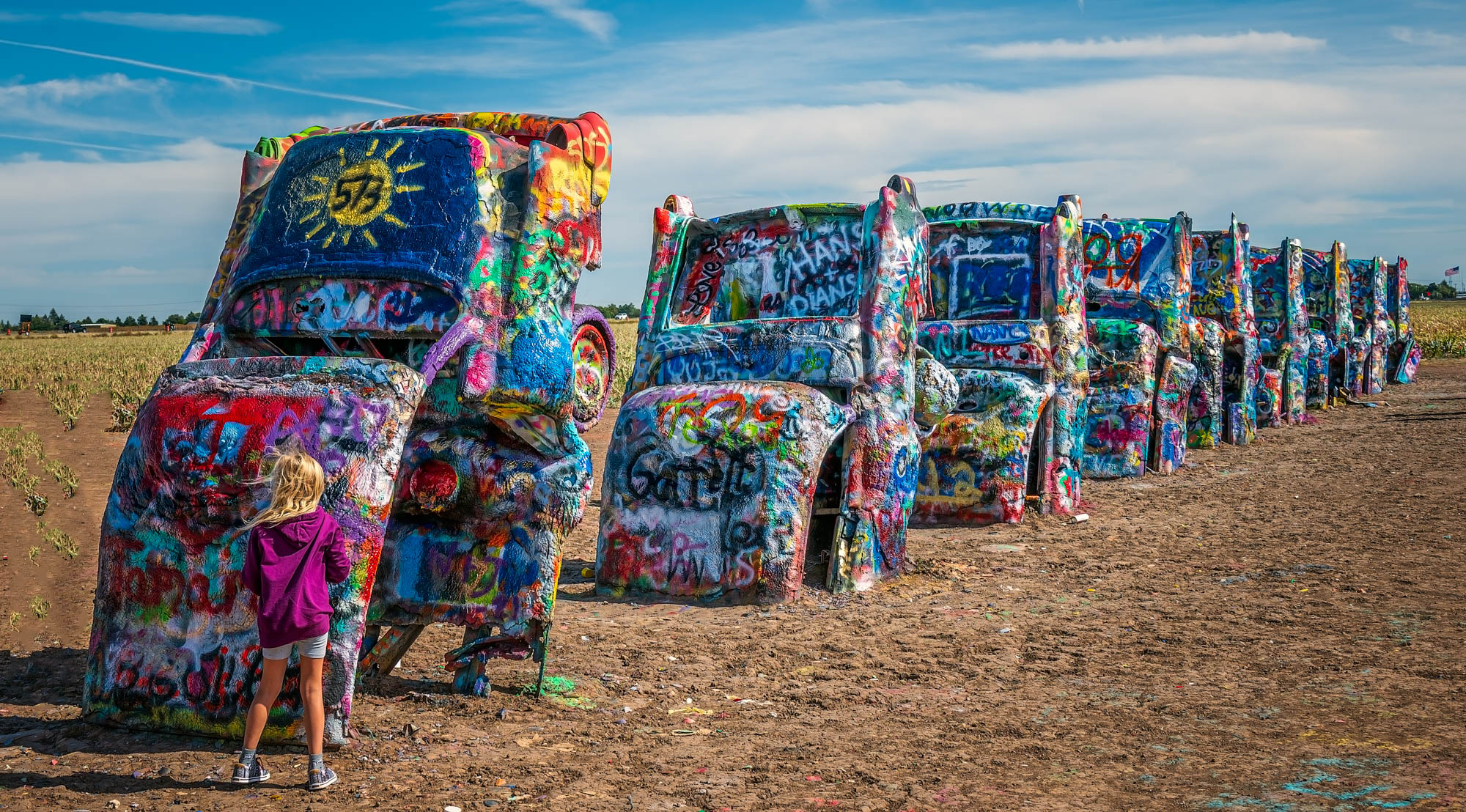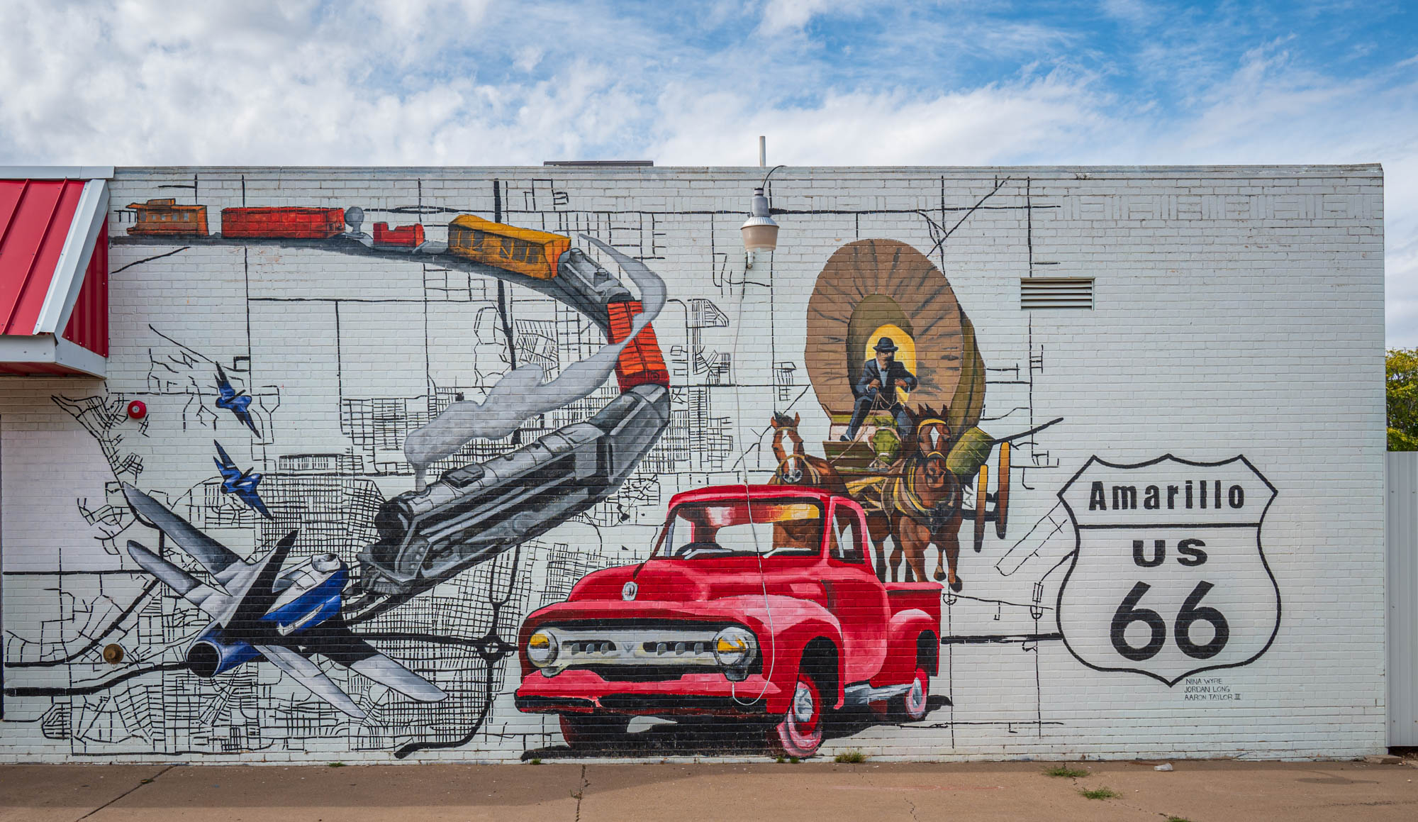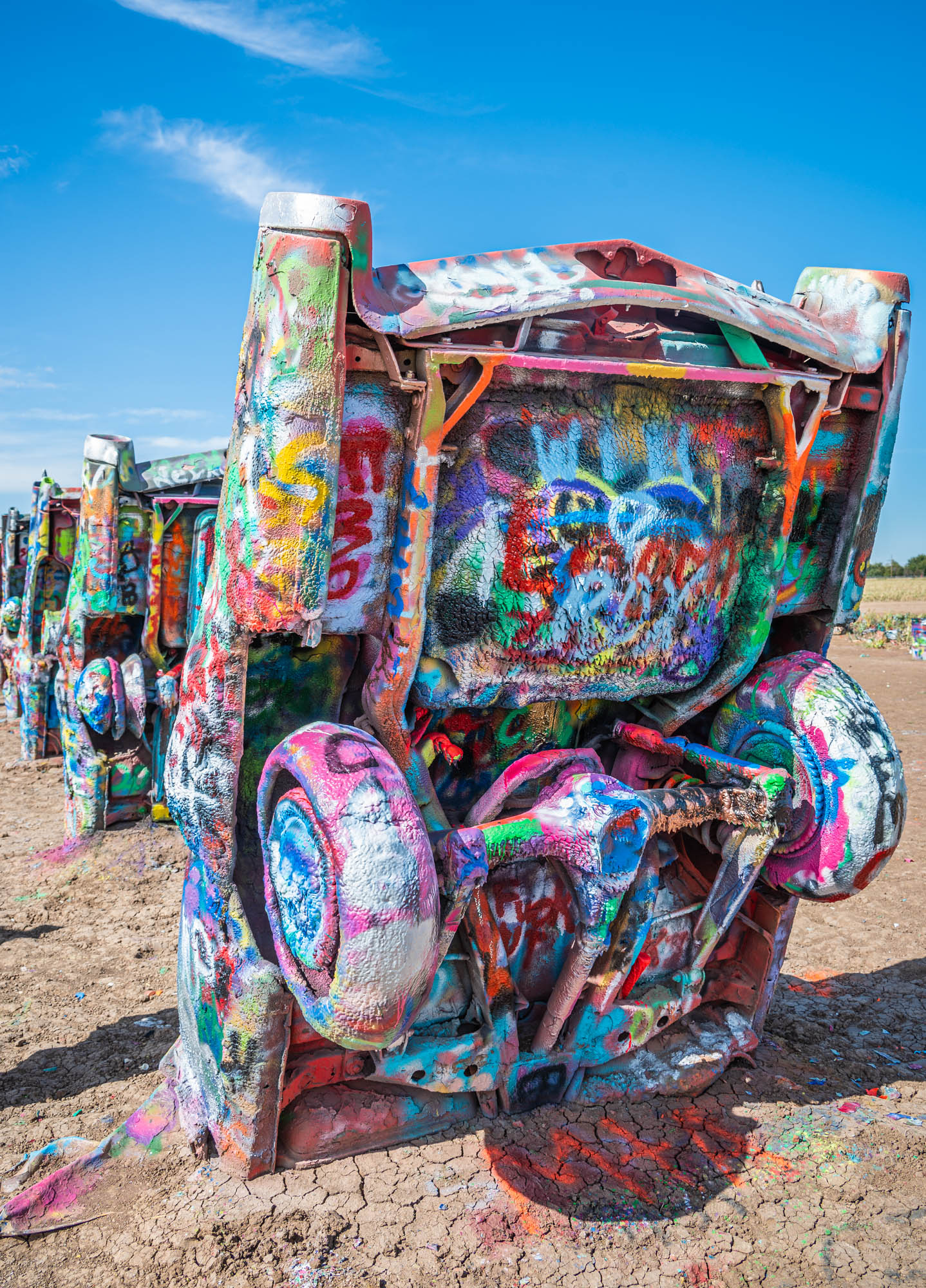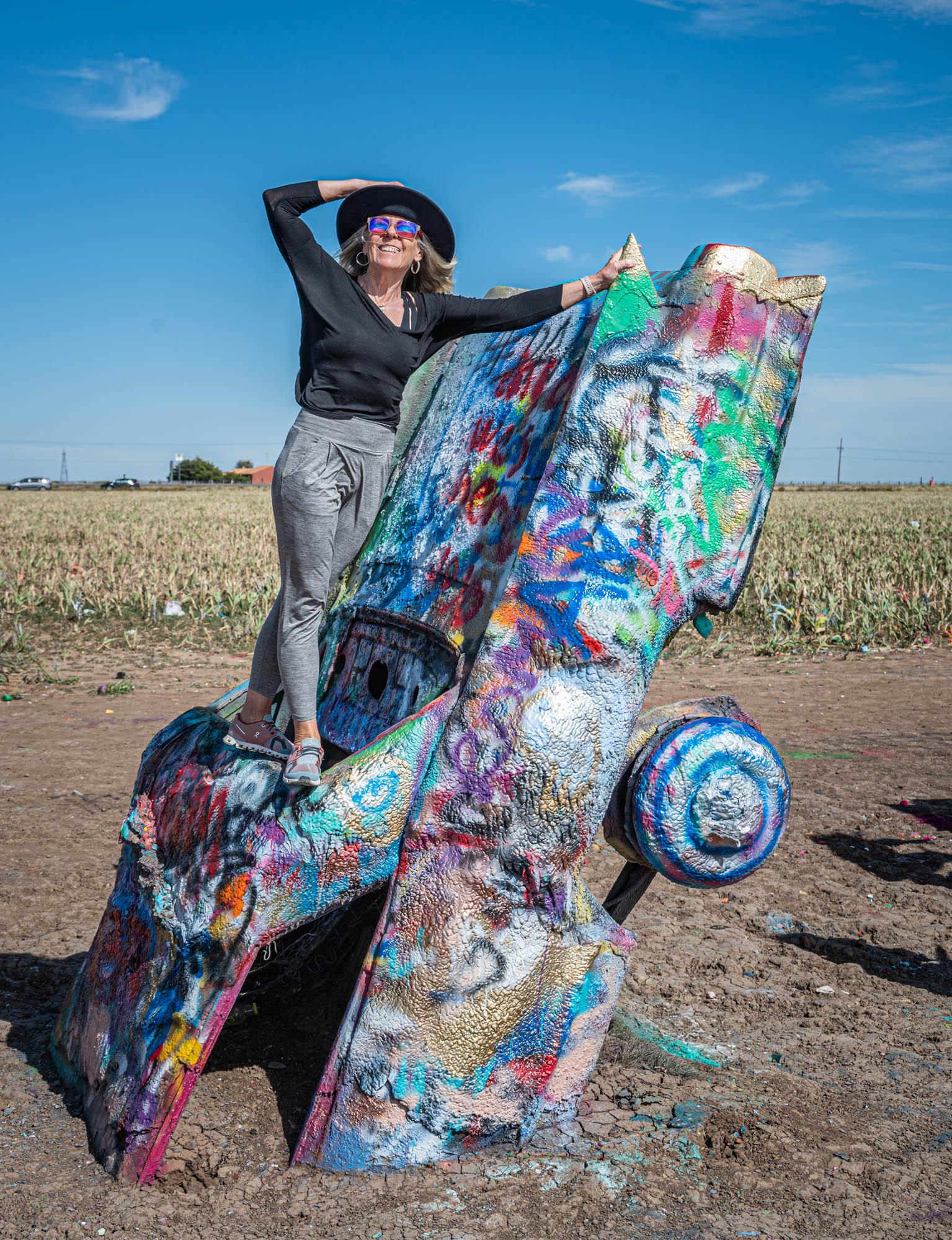 Leaving Iowa we drove along the famous highway Route 66 and stopped in Amarillo, Texas, the center of the Texas Panhandle, for 2 days, stayed at the Oasis RV Resort & Cottages. Our first stop was to experience Cadillac Ranch just down the road from the Park. The billionaire Stanley Marsh 3 wanted a piece of public art that would baffle the locals. The hippies came up with a tribute to the evolution of the Cadillac tail fin. Thus, Cadillac Ranch was invented and built by a group of art-hippies in 1974. Ten brand new Caddies were driven onto Stanley Marsh 3’s field, then half buried, nose-down in the dirt, complete with engines. They were supposedly buried at the same angle as the Great Pyramid of Giza. Then we drove into Amarillo to the US Route 66-Sixth Street Historic District, it is 13 blocks long, We found a fabulous place for lunch here at Braceros Mexican Grill and Bar with huge portions, we needed doggie bags to-go. Then a must visit to Bill’s Backyard Classics, there are vehicles that will take you back in time. Bill Pratt, the owner, collected over 100 cars in only 2 years, all kinds of makes and models that span a period from the 1920’s to 2012, every car is still drivable and in mint condition. It was fun walking through history experiencing so many different classics. Click on thumbnail to view