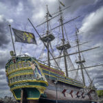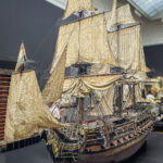 Inside the museum, exhibits vividly trace the Netherlands’ long and complex relationship with maritime life—from early exploration and navigation to naval warfare, global commerce, and the realities of daily life aboard ship. Detailed maps, intricate ship models, navigational instruments, and interactive displays bring to life the skills and risks faced by sailors who connected Europe with Asia, Africa, and the Americas. Moored just outside the museum is a full-scale replica of an 18th-century East Indiaman, which visitors can board to experience the cramped quarters, towering masts, and sheer scale of vessels that once carried cargo, crews, and ambition across the world’s oceans. Together, the exhibits and setting offer a vivid sense of how deeply the sea shaped Amsterdam’s rise as a global power. Click on thumbnail to view images