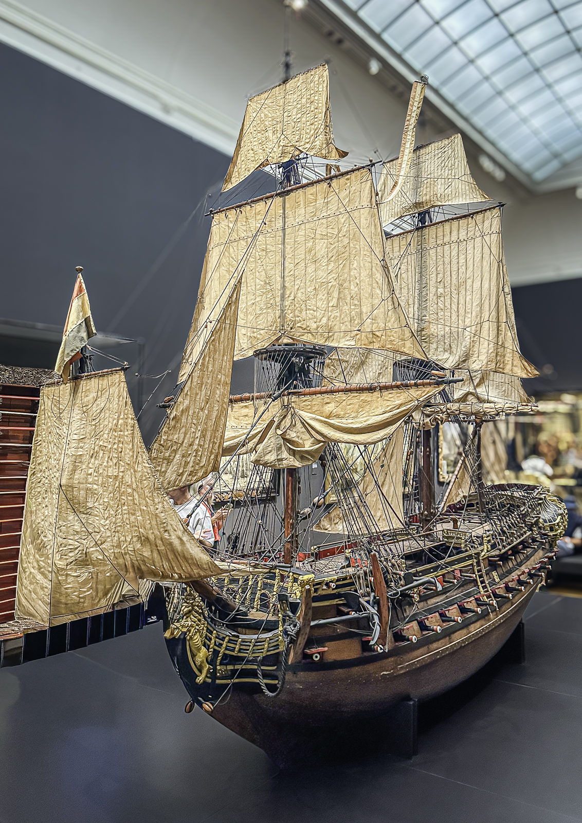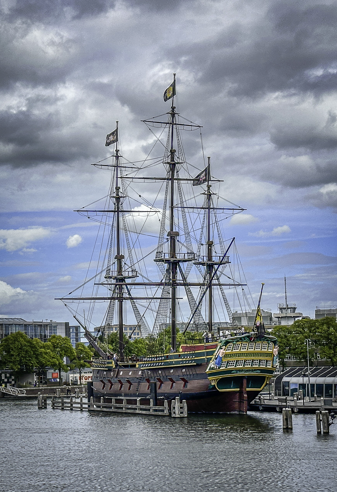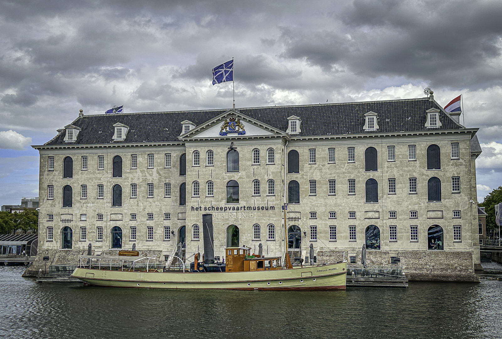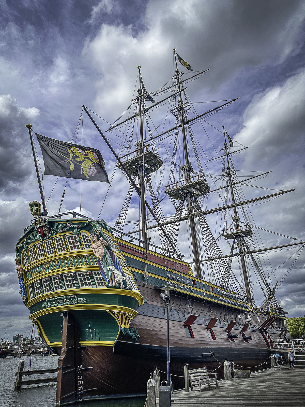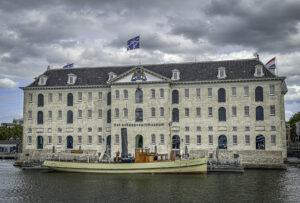 Inside the museum, exhibits vividly trace the Netherlands’ long and complex relationship with maritime life—from early exploration and navigation to naval warfare, global commerce, and the realities of daily life aboard ship. Detailed maps, intricate ship models, navigational instruments, and interactive displays bring to life the skills and risks faced by sailors who connected Europe with Asia, Africa, and the Americas. Moored just outside the museum is a full-scale replica of an 18th-century East Indiaman, which visitors can board to experience the cramped quarters, towering masts, and sheer scale of vessels that once carried cargo, crews, and ambition across the world’s oceans. Together, the exhibits and setting offer a vivid sense of how deeply the sea shaped Amsterdam’s rise as a global power. Click on thumbnail to view images