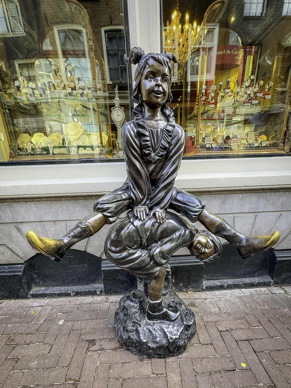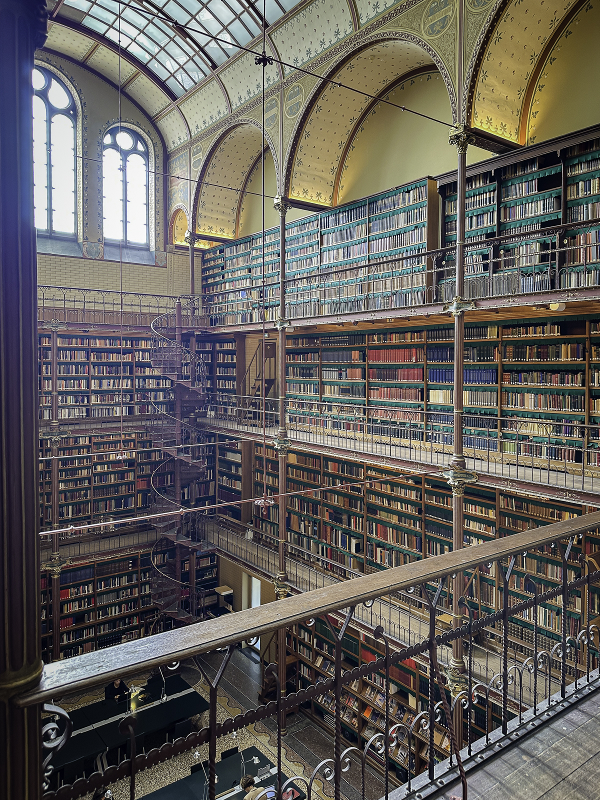 a showcase of Dutch art and history. Touring its galleries was a highlight of the trip. We marveled at masterpieces by Rembrandt, Vincent van Gogh, Johannes Vermeer, Frans Hals, and Jan Steen, each offering a window into the richness of Dutch Golden Age art and beyond. Watching the ongoing restoration of Rembrandt’s The Night Watch was especially fascinating—seeing conservators at work on one of the world’s most famous paintings brought the museum’s living scholarship to life. Other memorable exhibits included the exquisitely detailed miniature dollhouses, once symbols of wealth and craftsmanship, and the atmospheric Cuypers Library, whose soaring shelves and quiet grandeur felt like stepping into another era.