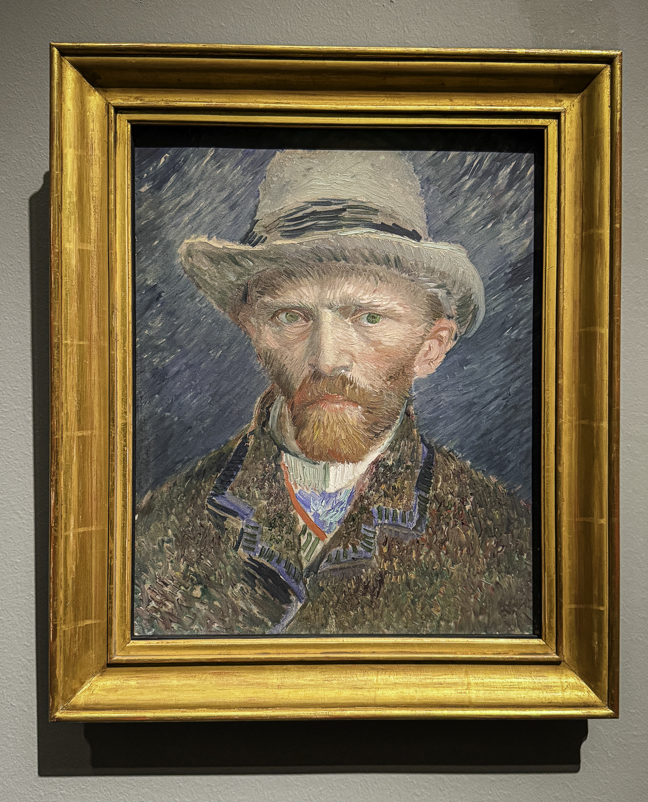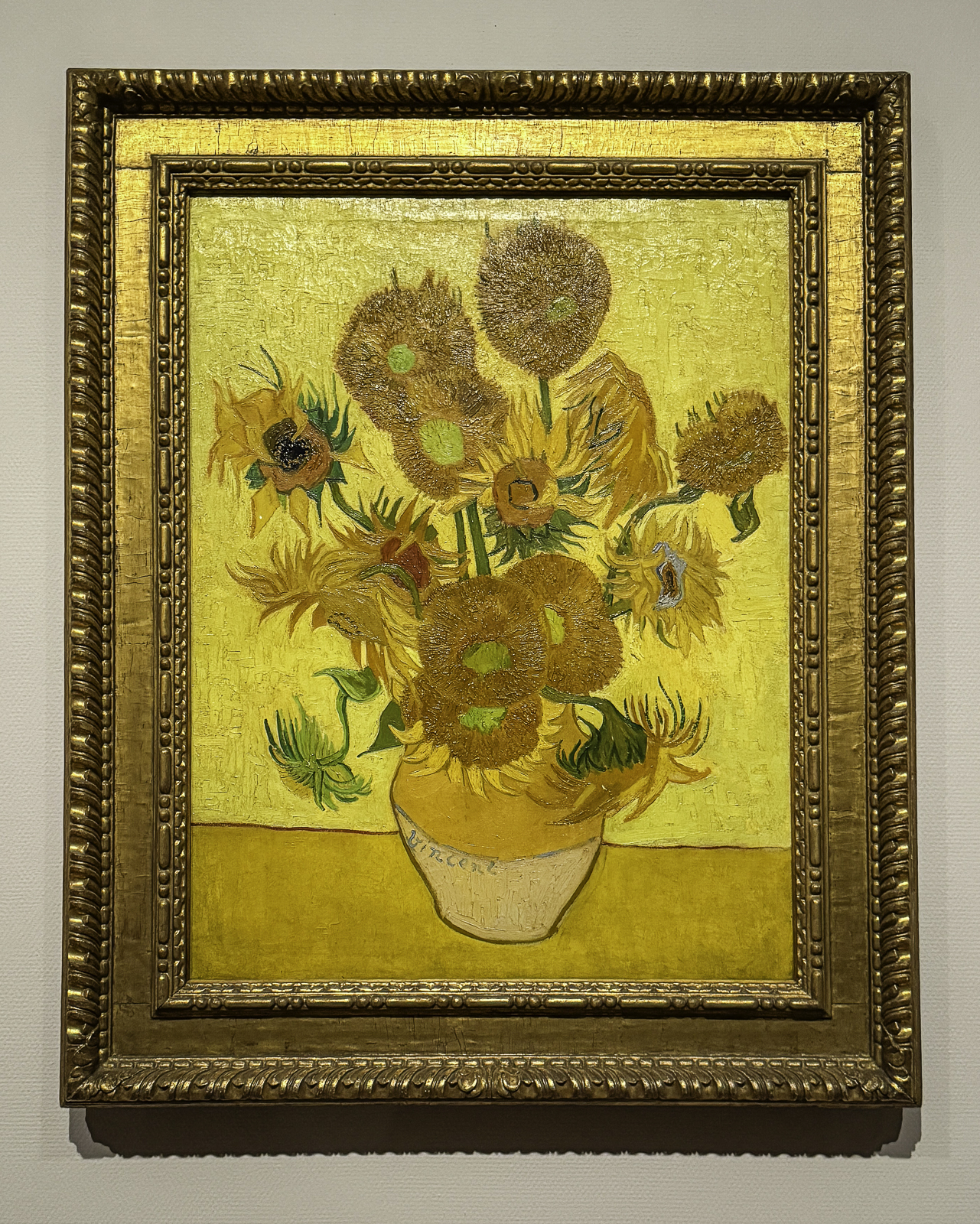 The galleries trace his development from the early, dark-toned works created in the Netherlands—scenes of peasants and laborers influenced by realism—to the explosion of color and expressive brushwork of his later years in Arles, Saint-Rémy, and Auvers-sur-Oise. Seeing masterpieces such as Sunflowers, The Bedroom, and his many self-portraits up close was deeply moving, revealing not only his evolving technique but also his intense emotional world.