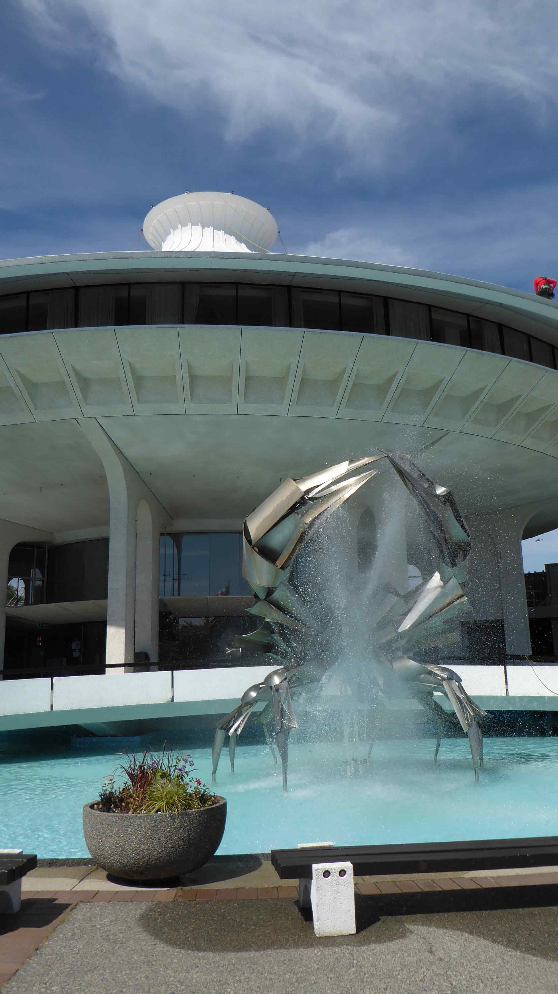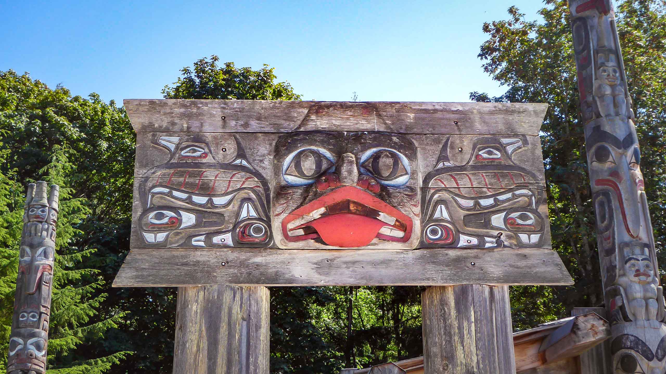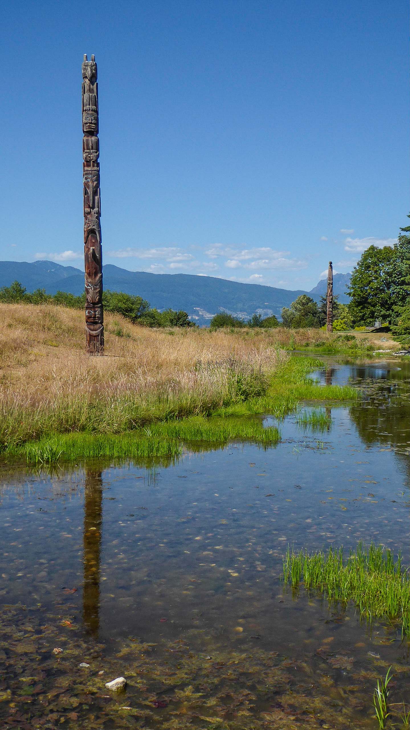 Then we spent a great day with Bob’s brother, Ted and Marg, and his sister, Linda at the Museum of Anthropology at UBC, founded in 1947, it is renowned for its displays of world arts and culture. It has a number of large sculptures, totem poles, and cultural artifacts. Although MOA’s focus is on the First Nations of the Northwest Coast. The most iconic object in the Museum is the yellow cedar sculpture The Raven and the First Men by Bill Reid, which was depicted on the Canadian $20 bill from 2004 to 2012. The Museum’s Great Hall contains many fragments of totem poles, my favorite area, from Haida and other First Nation villages along BC’s coast. The Haida houses outside the Museum, where we had a guided tour, were also built under the direction of Bill Reid. The new building designed by Arthur Erickson in 1976, was inspired by the post-and-beam architecture of the NW Coast First Nations people. This Museum is a must see when visiting Vancouver, and the surrounding campus of the University of BC.