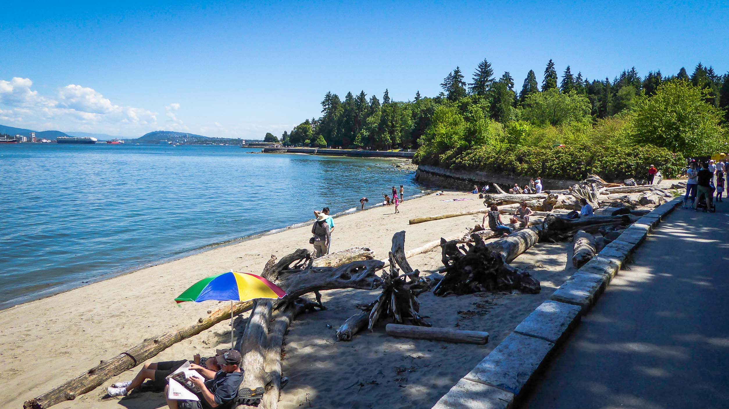 One of our first outing was to go to Stanley Park, our most favorite place in the city, and to walk the 5.5 mile, near century-old Vancouver Seawall. Construction of the Seawall and walkway around the entire Park began in 1917 to 1971. The original wall was constructed under the direction of James “Jimmy” Cunningham, a master stonemason who spent 32 years on the project until his death in 1963, long before the wall was complete. We have been coming to this wonderful Park since the 1960’s and still marvel at the beauty of this 1,001 acre setting in downtown Vancouver, surrounded by the waters of Vancouver Harbor and English Bay. It was Vancouver’s first park in 1886, named after the 6th Governor General, Lord Stanley, and was officially opened on Sept 27, 1888. On June 18, 2014, Stanley Park was named “top park in the entire world” by Trip Advisor, and I definitely agree.