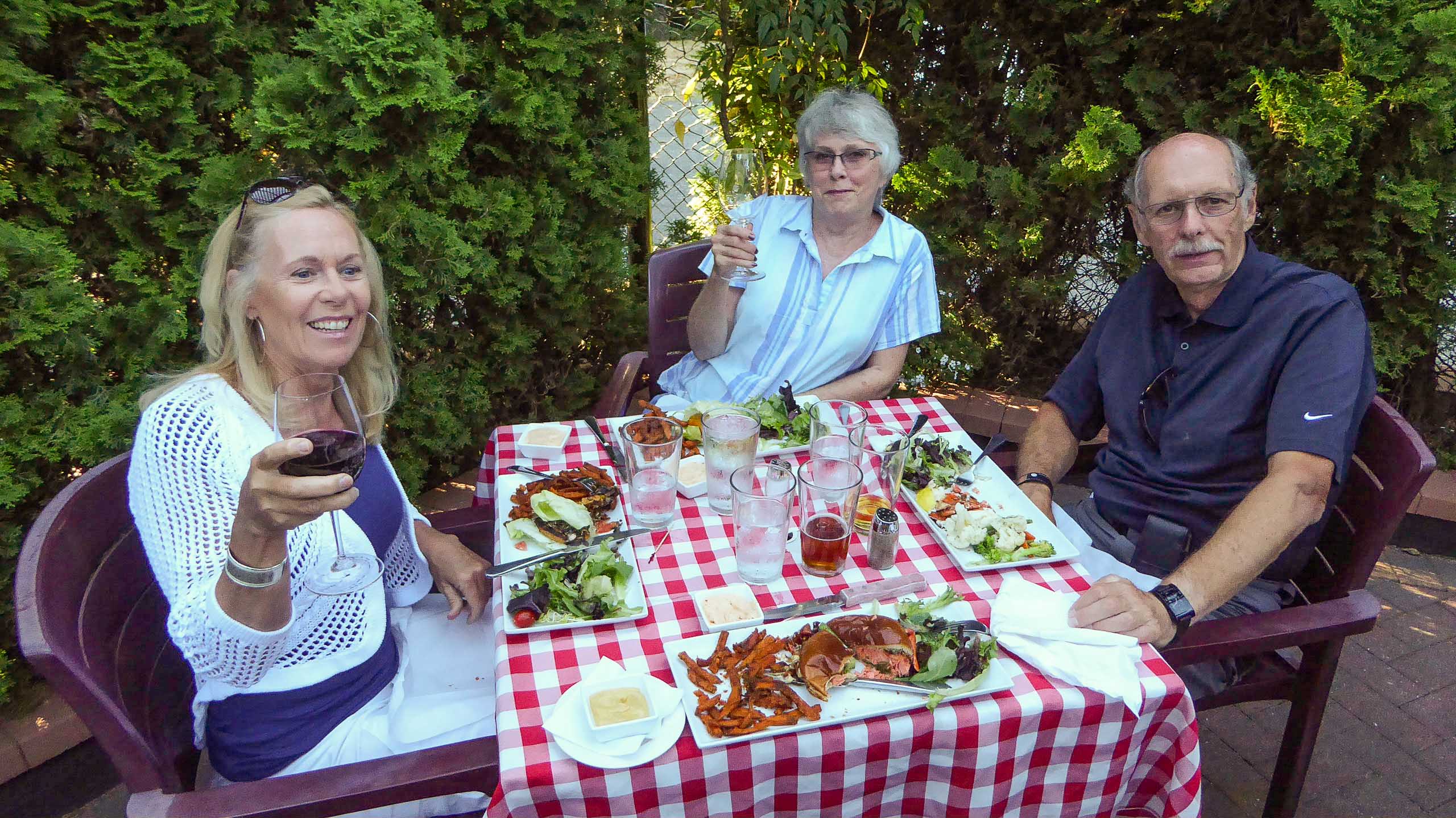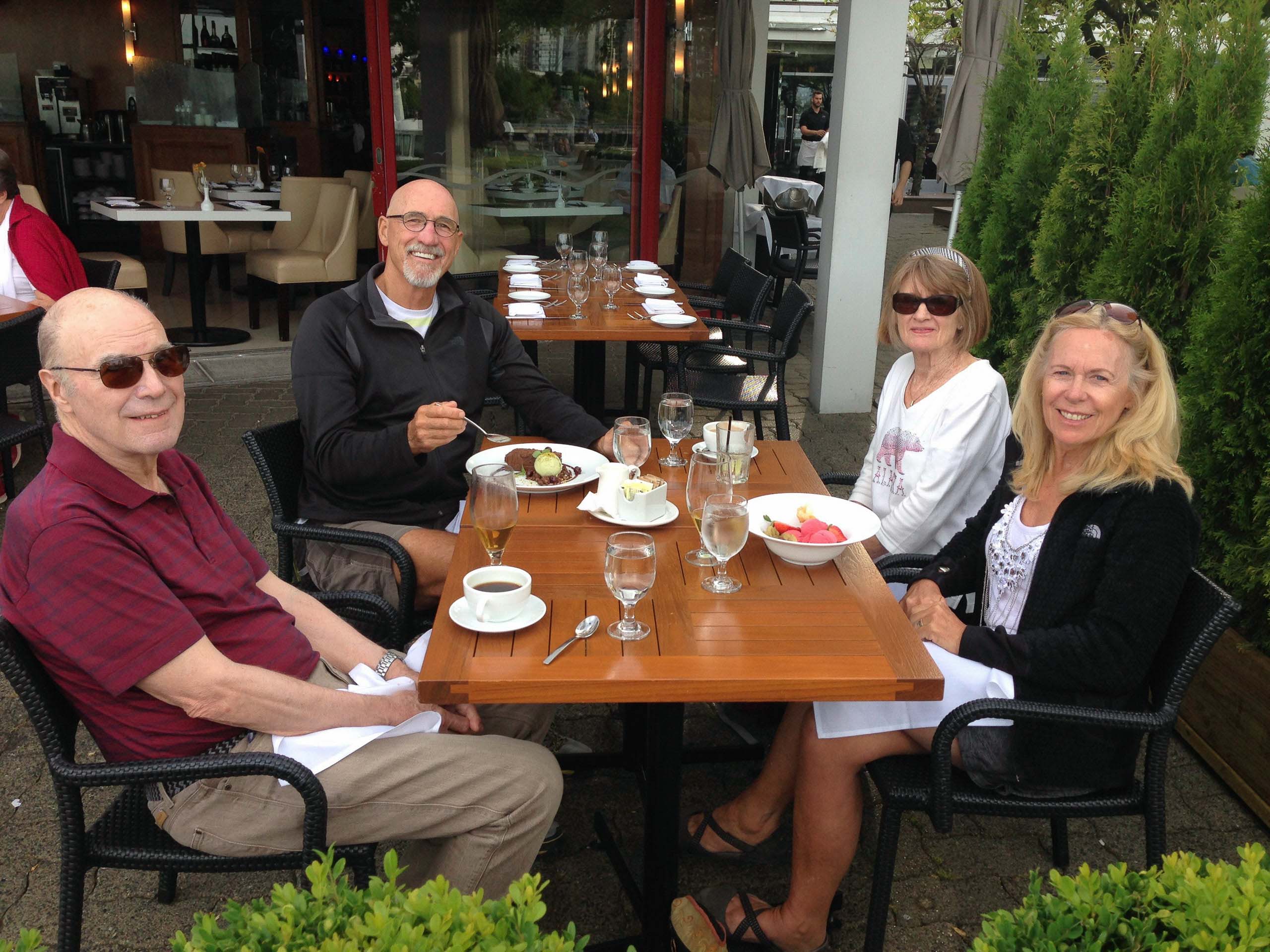 We also had a fun-filled evening with my brother, John and Lisa, at their apartment in downtown Vancouver. We helped them celebrate their 45th wedding anniversary, with many of the people who were in attendance at their wedding in Lund, Sweden, including myself. Another day we did a walking tour of the Kitsilano area where we lived just after we were married. We toped the day off with a great visit and dinner with Alex and karen our friends from UBC. Another place we visited was Harrison Hot Springs for a day and a hike along the Lake. We had a nice lunch in the Brewery and visited the famous Harrison Hotel.