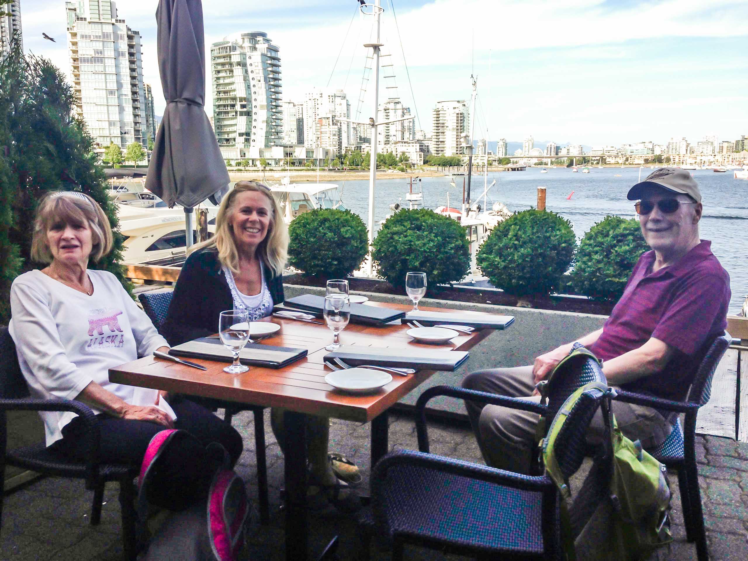 On June 8th we finally arrived in Canada and we are settled in at the very comfortable Eagle Wind RV Park in Aldergrove, for about six weeks, to visit with family and friends as well as the beautiful city of Vancouver. One of the must see sites in Vancouver is Granville Island and we had a couple of delicious dinners there with family. I would do all my shopping here for food if I lived downtown, however it is very expensive to shop and live in Vancouver. So most people move away from the city where they can afford to buy a nice house. One of the outside cities is Surrey where our friends Paul and Linda Sutherland live and they had us over for a reunion dinner with Pete and Heather Paget, and Ralph and Dawn White. Great food, drinks and laughs were enjoyed by all until 2AM. I think they thought they were all back in high school together and could stay up and party all night! NOT!!!!