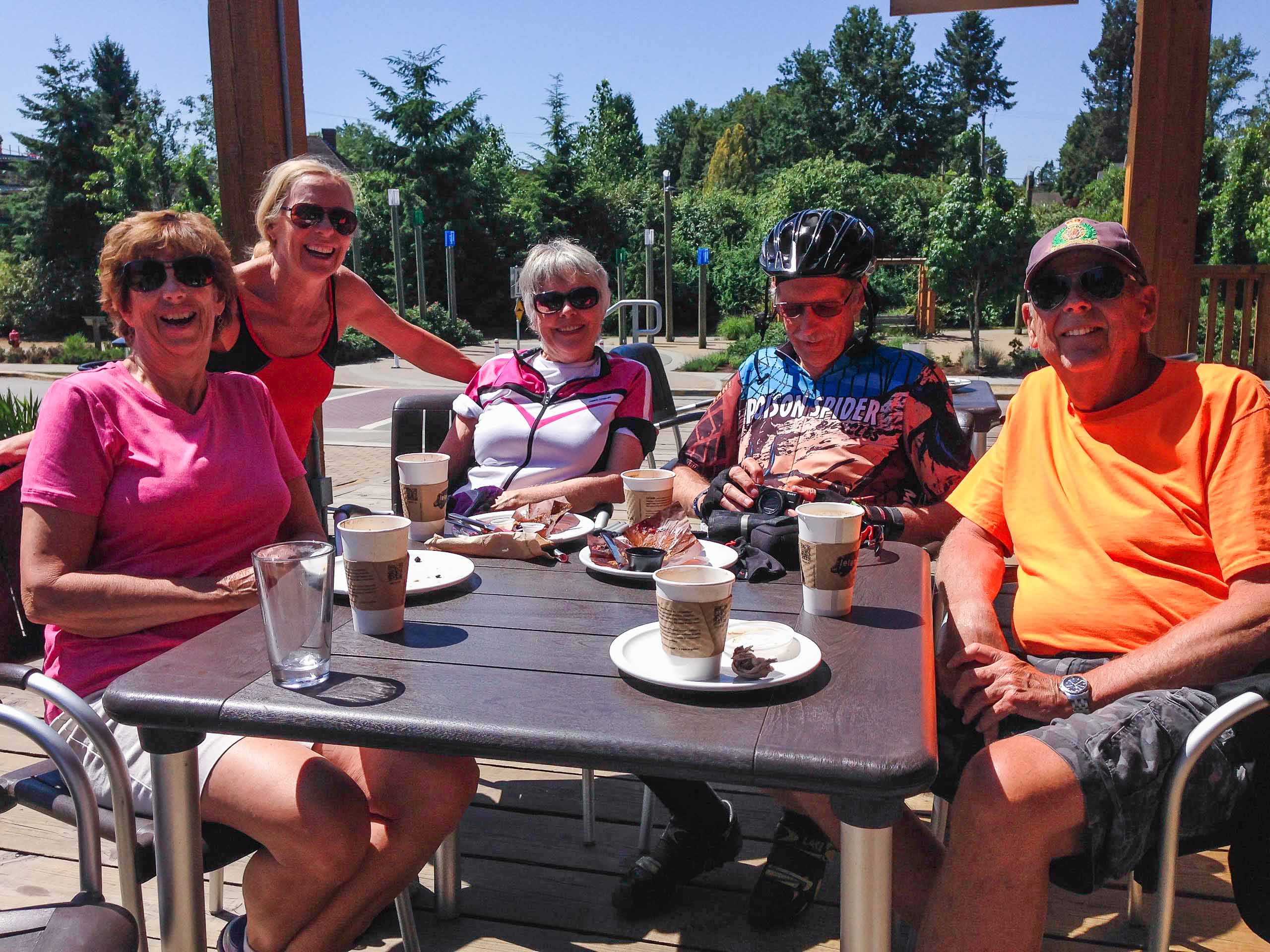 We had a memorable day with Ralph White and his cycling friends on a 100 km bike ride across the border into the States. Not quite like the ride we took with Paul and Linda, Ralph and Dawn in Derby Park to Fort Langley, along the Fraser River, where we stopped for coffee and a break. Loved Fort Langley a small village community with a population of 3,400, and home of the Fort Langley National Historic Site, built in 1827. It is a former fur trade post of the Hudson’s Bay Company, and has become a thriving tourist center, as many of the villages old buildings have been restored. A visit to the Krause Berry Farm and the delicious waffles were the highlight of the ride.
