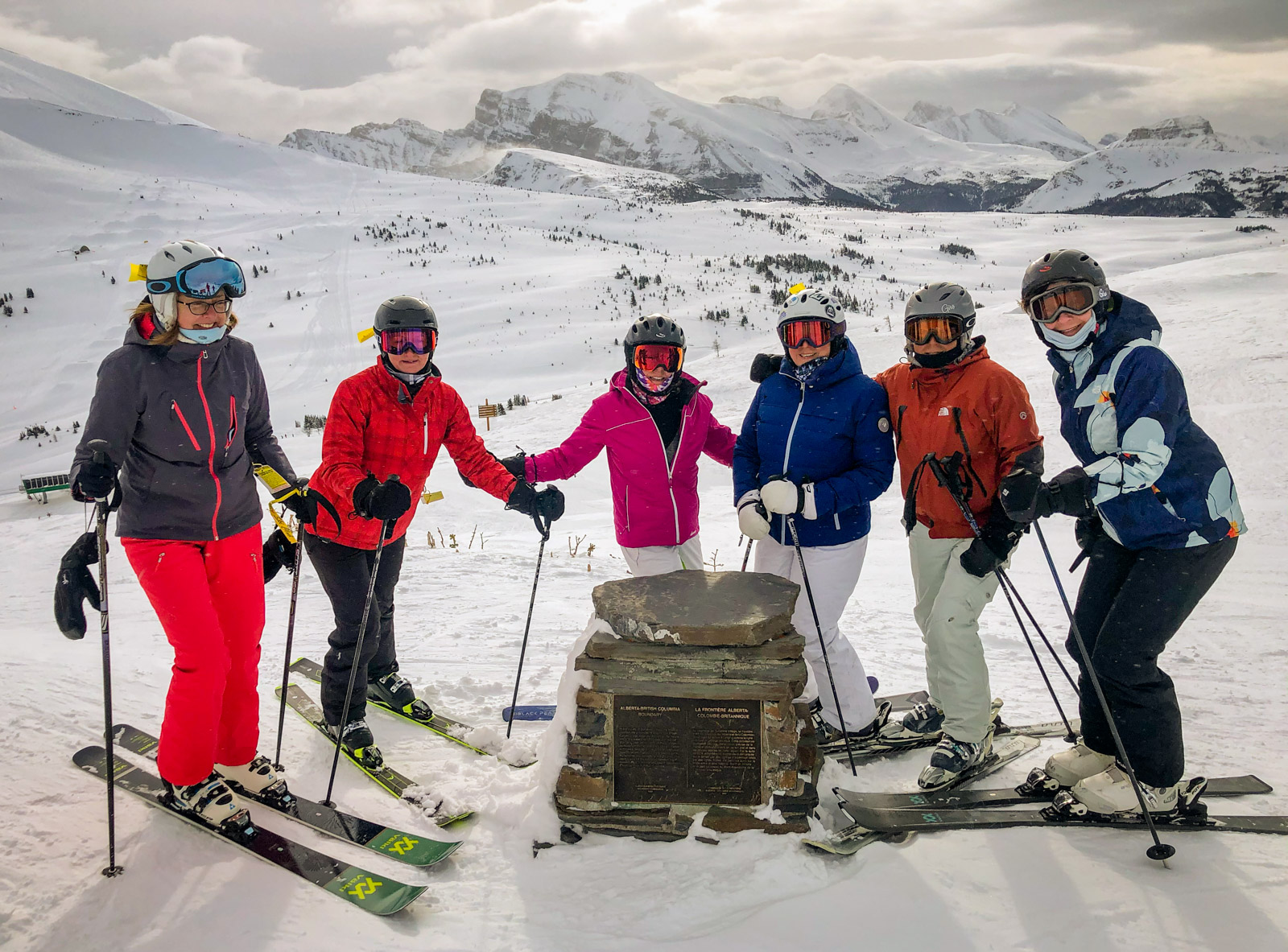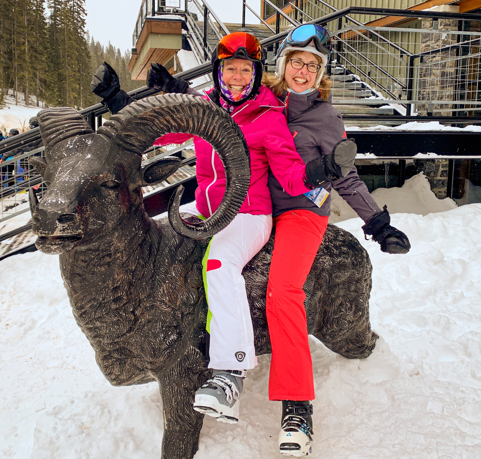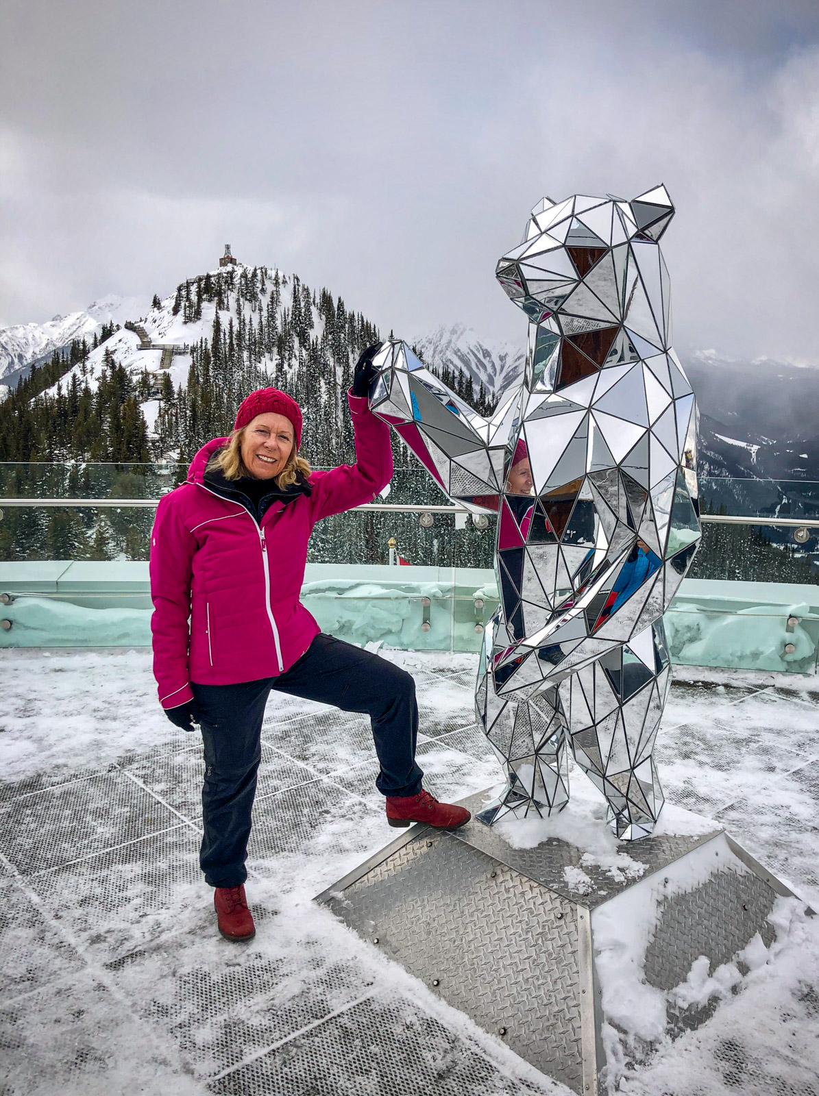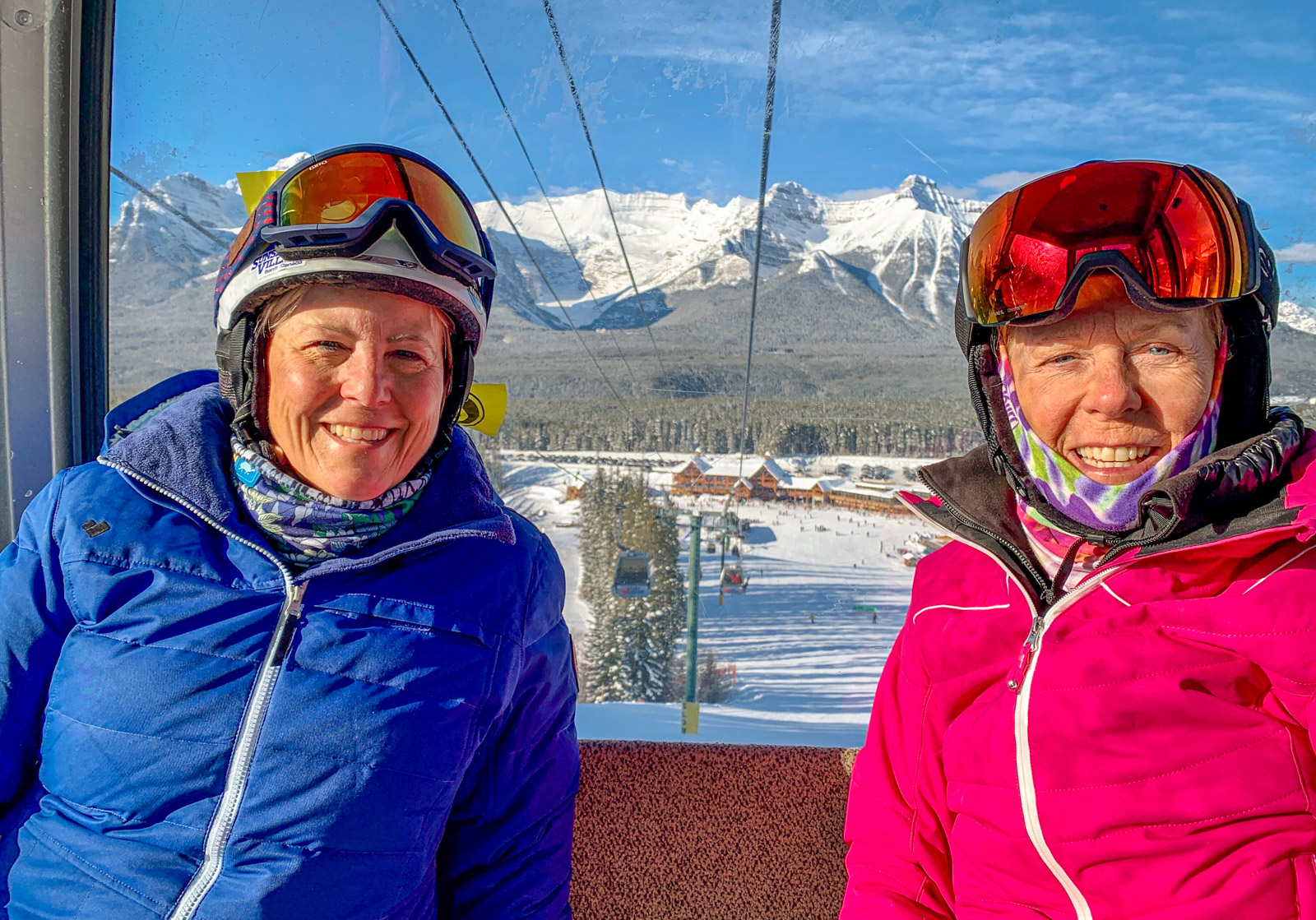 The final day of skiing we went to Mt Norquay, where the first ski runs date back as far as 1926, with the opening of the lodge in 1929. Rope tows were installed in 1942, and the mountain was the second in Canada to install a chairlift in 1948. We wanted to ski all three of the world-class resorts: Banff Sunshine, Lake Louise Ski Resort and Mt Norquay, known as SkiBig3, so we could get a badge and a beer in Bannf. It was a really cold day and some of the girls were too cold and went inside, but Sylvia and I braved the cold and had some fantastic runs together, without any crowds because of the weather. Click on thumbnail to view images