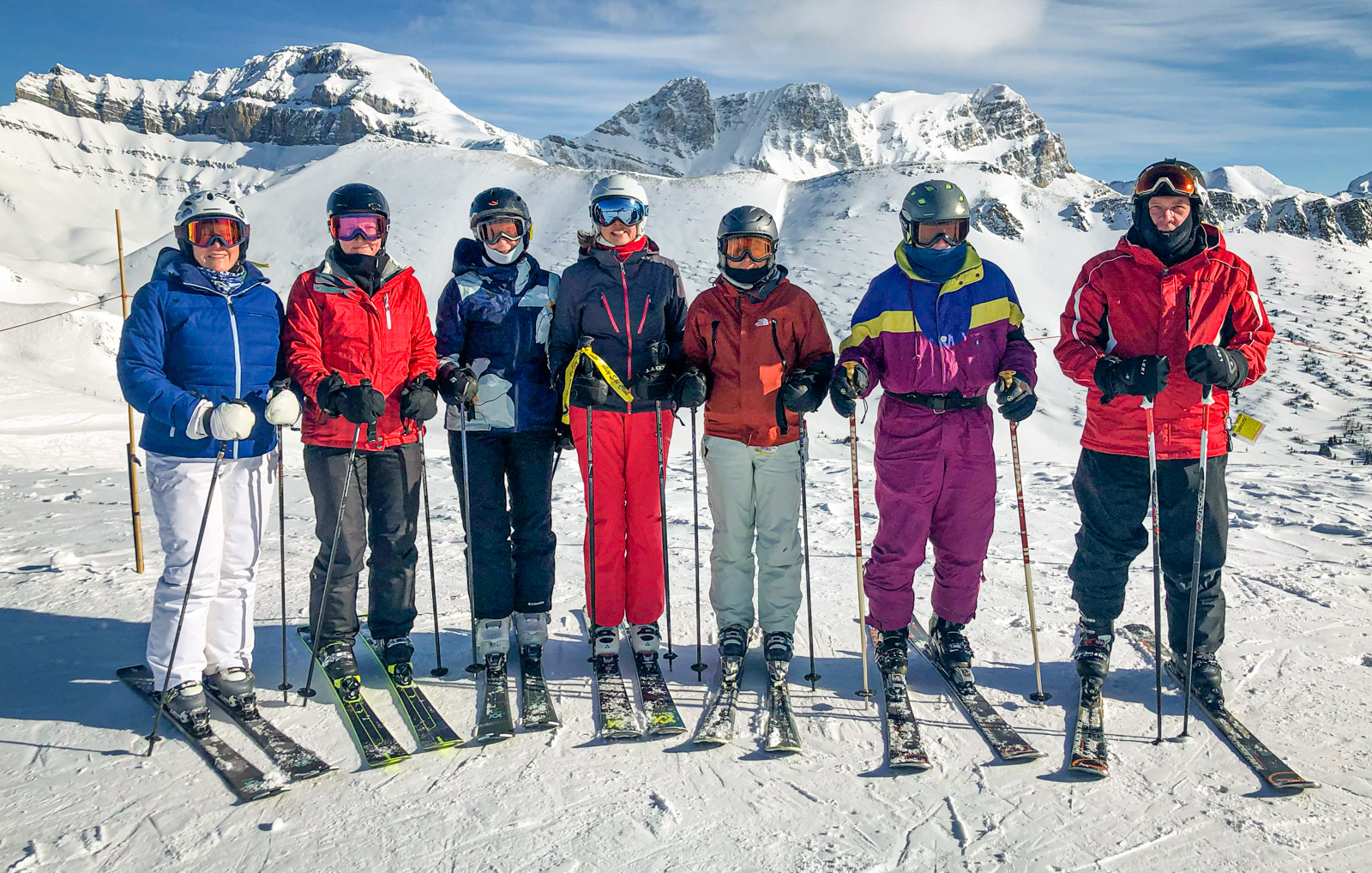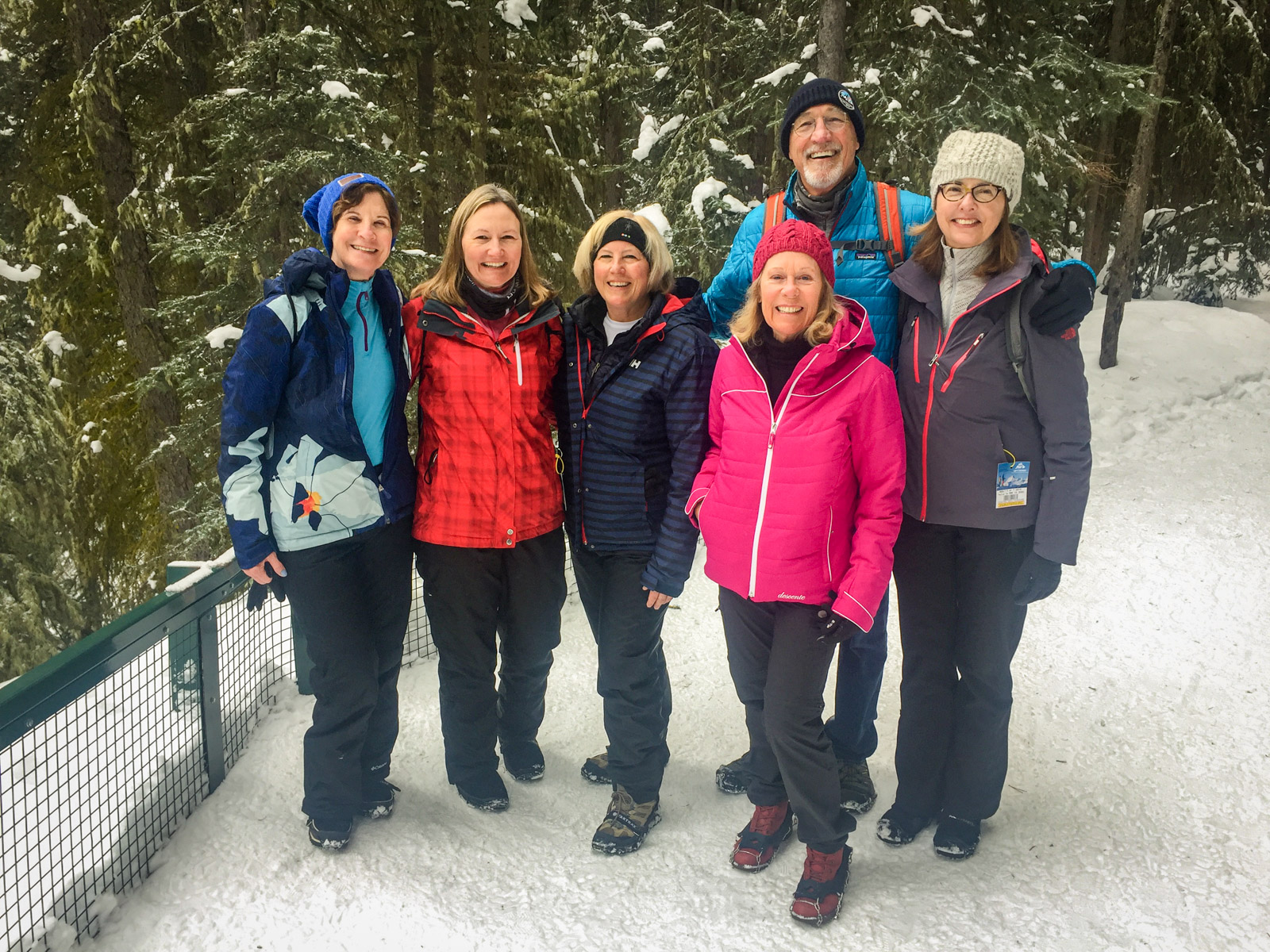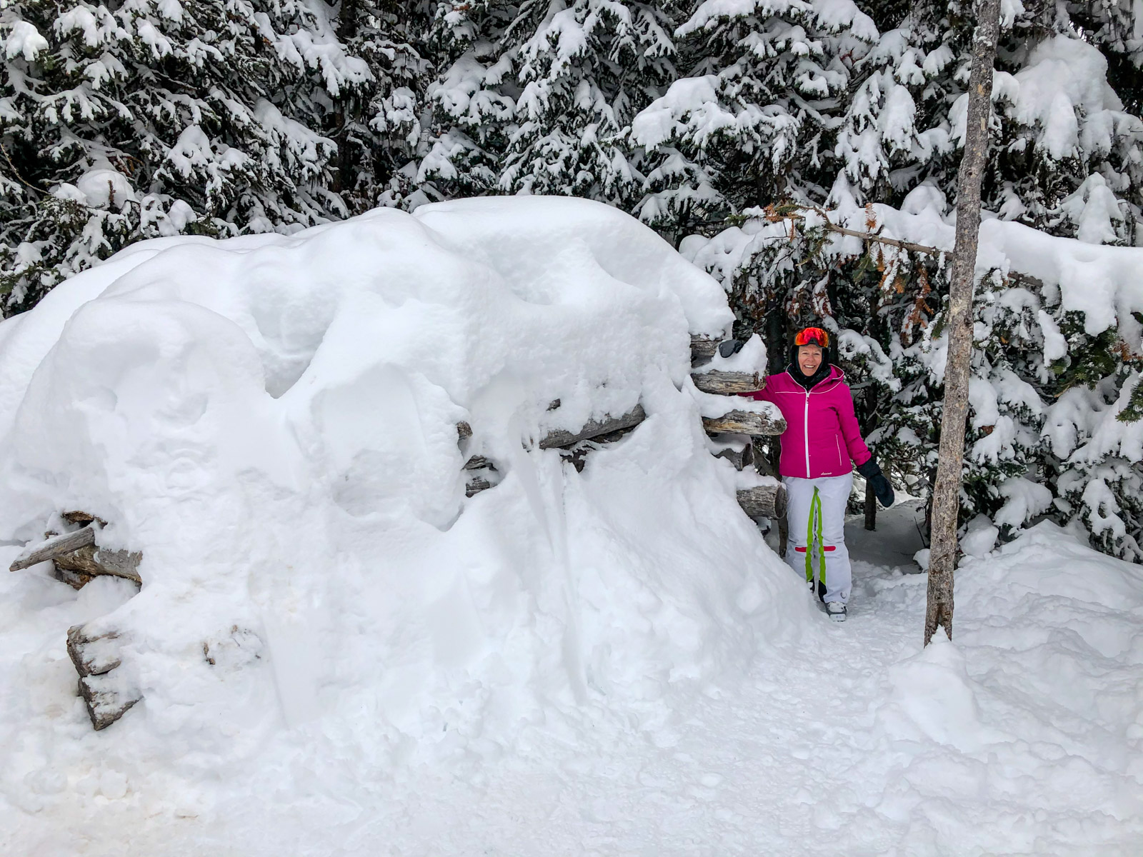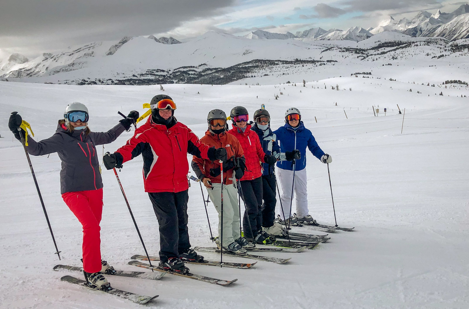 The final day of skiing we went to Mt Norquay, where the first ski runs date back as far as 1926, with the opening of the lodge in 1929. Rope tows were installed in 1942, and the mountain was the second in Canada to install a chairlift in 1948. We wanted to ski all three of the world-class resorts: Banff Sunshine, Lake Louise Ski Resort and Mt Norquay, known as SkiBig3, so we could get a badge and a beer in Bannf. It was a really cold day and some of the girls were too cold and went inside, but Sylvia and I braved the cold and had some fantastic runs together, without any crowds because of the weather. Click on thumbnail to view images
