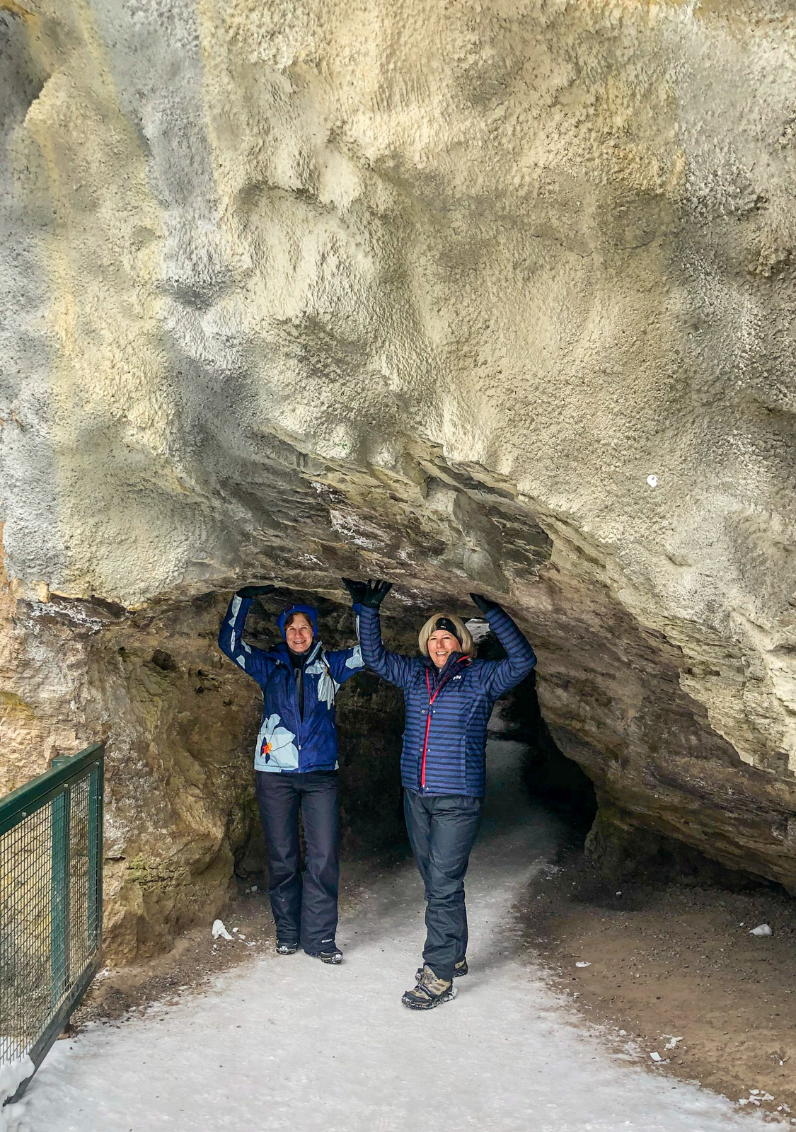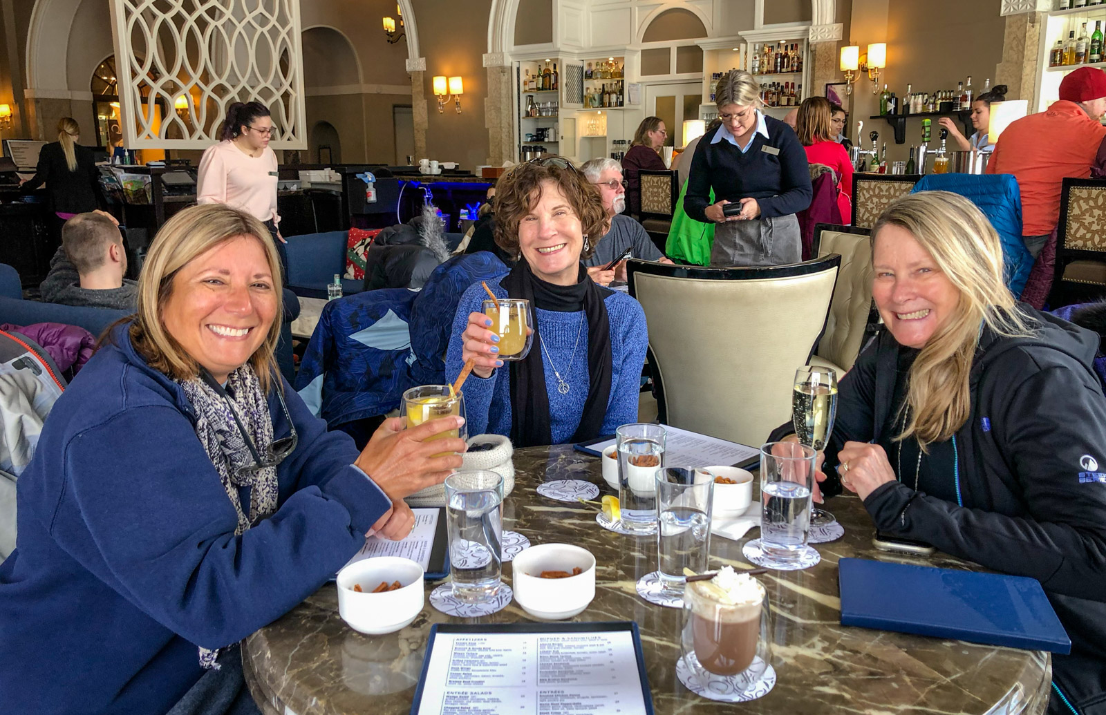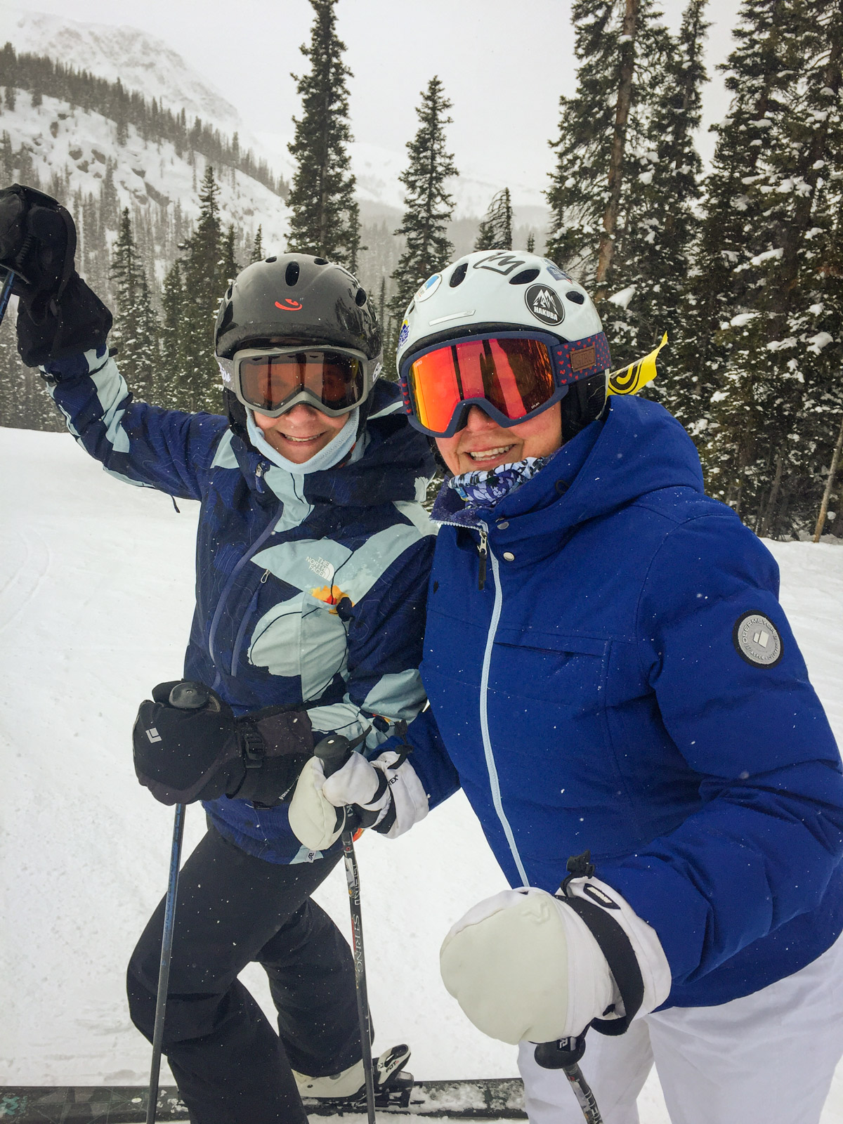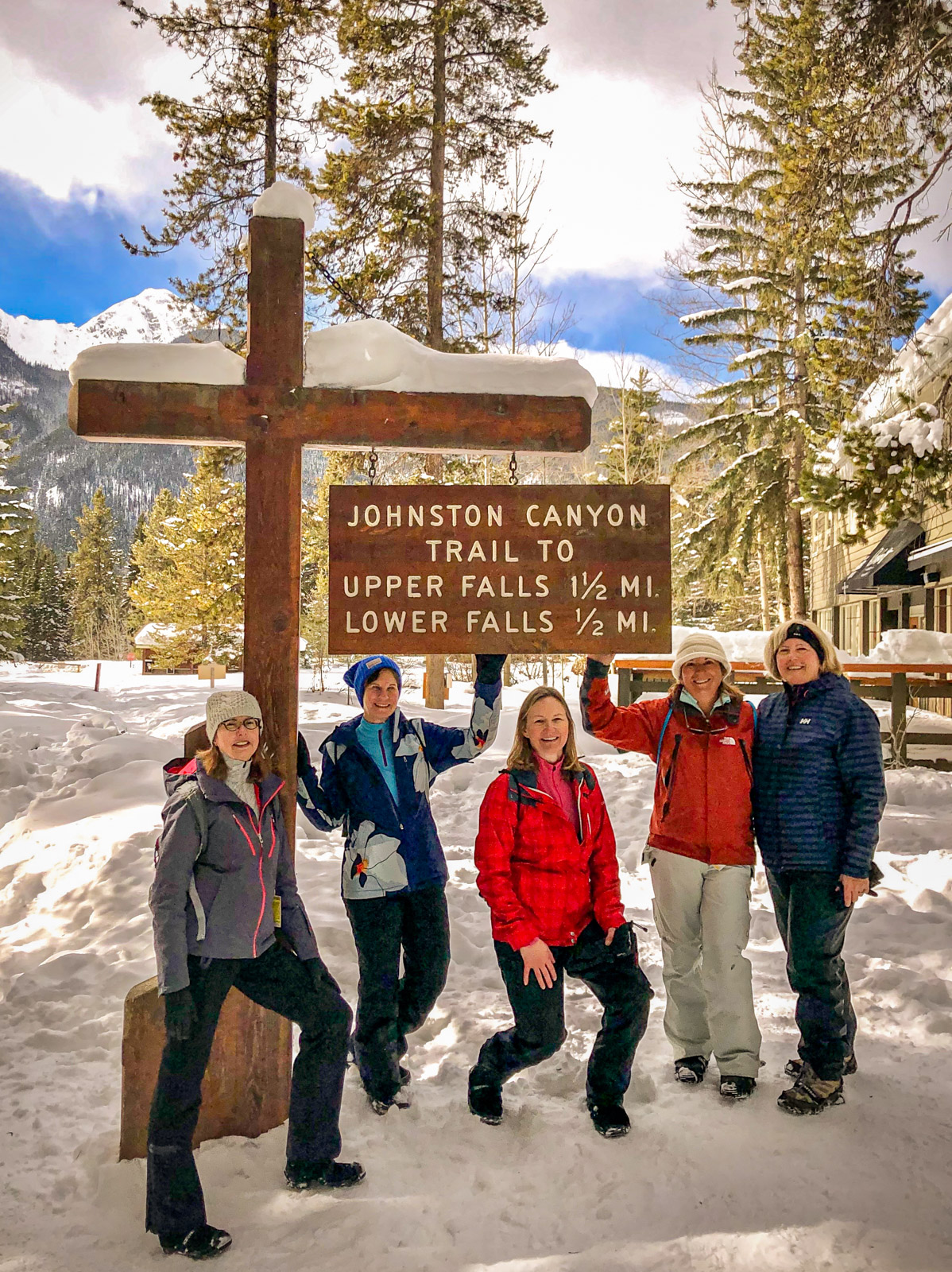 The final day of skiing we went to Mt Norquay, where the first ski runs date back as far as 1926, with the opening of the lodge in 1929. Rope tows were installed in 1942, and the mountain was the second in Canada to install a chairlift in 1948. We wanted to ski all three of the world-class resorts: Banff Sunshine, Lake Louise Ski Resort and Mt Norquay, known as SkiBig3, so we could get a badge and a beer in Bannf. It was a really cold day and some of the girls were too cold and went inside, but Sylvia and I braved the cold and had some fantastic runs together, without any crowds because of the weather. Click on thumbnail to view images