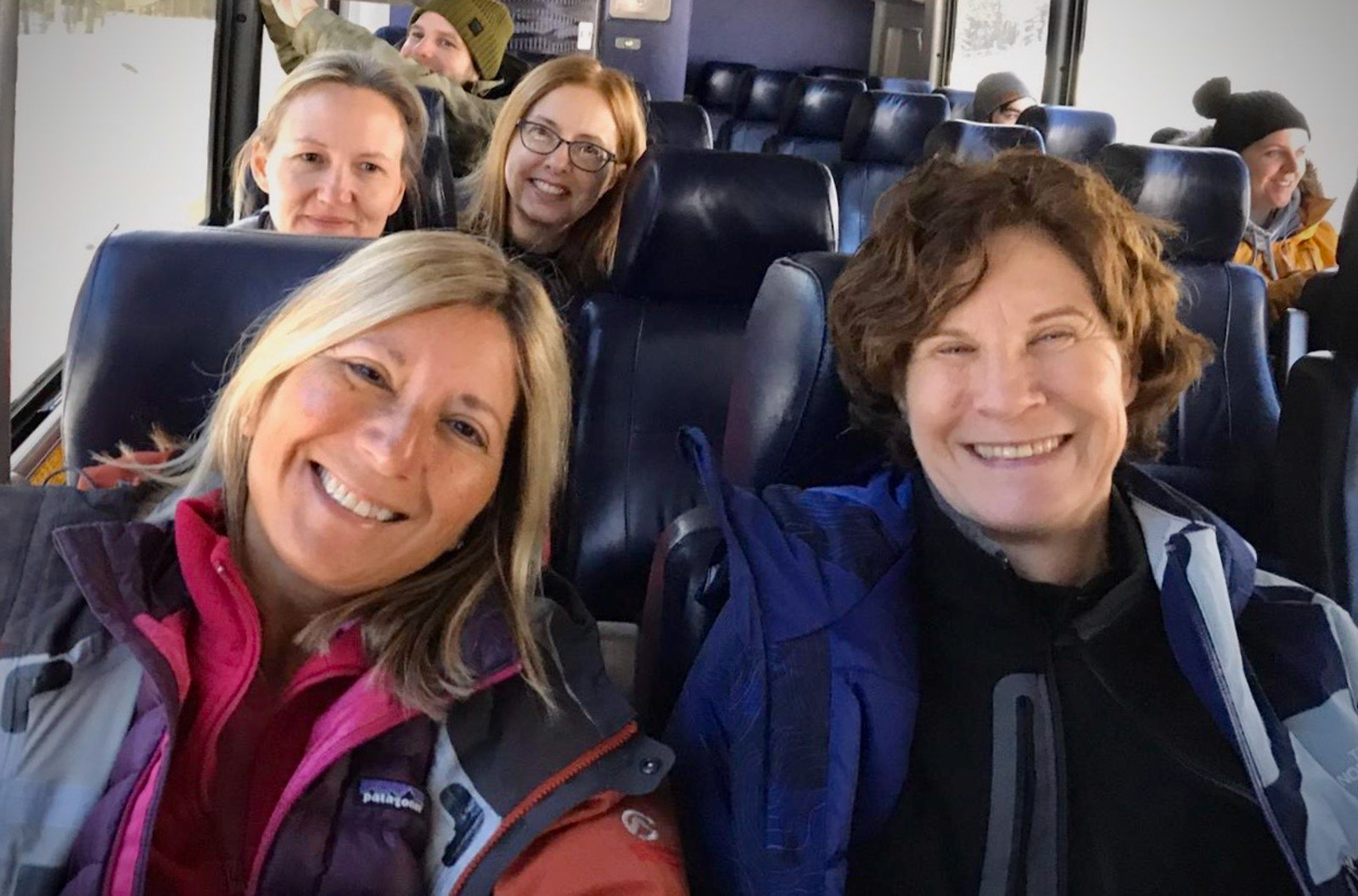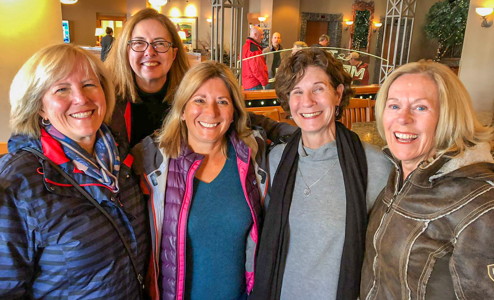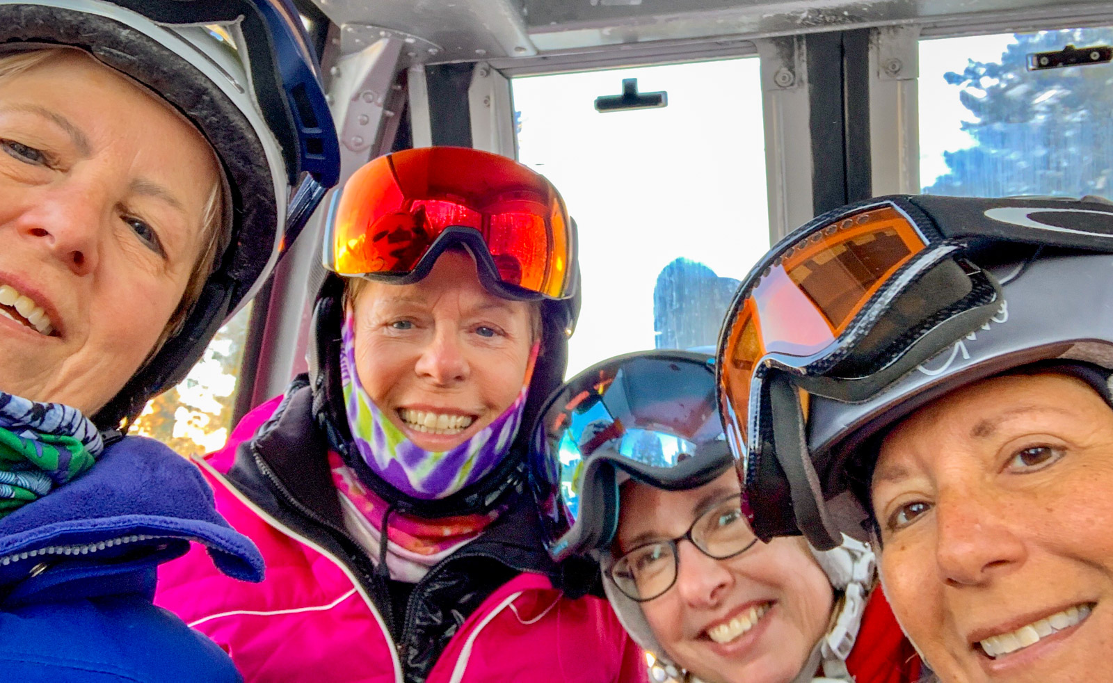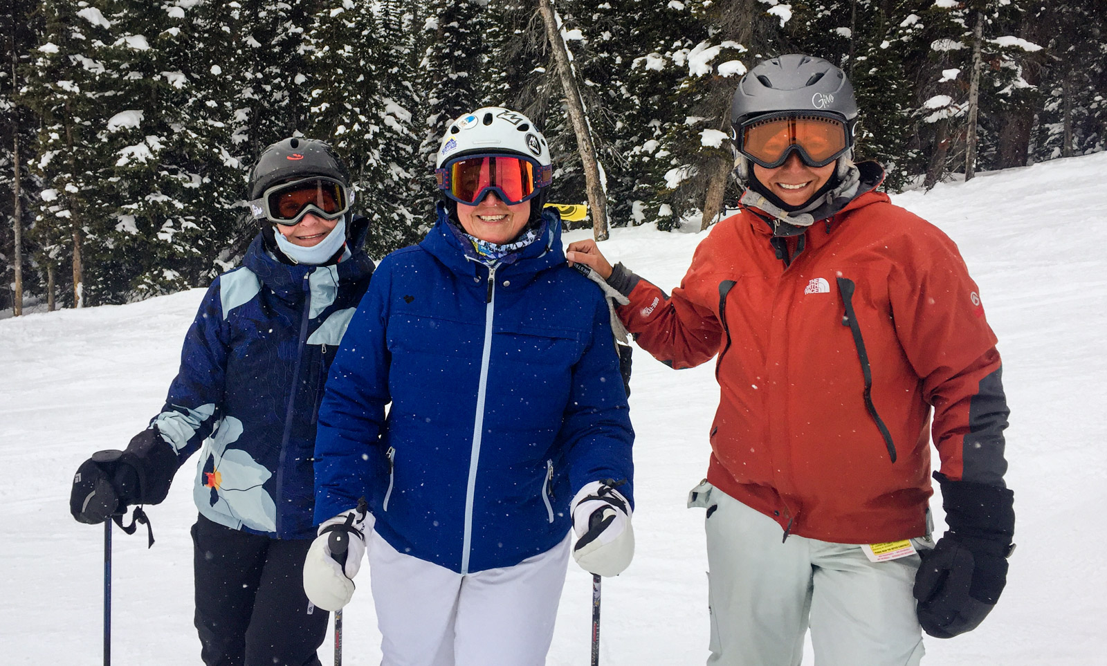 The final day of skiing we went to Mt Norquay, where the first ski runs date back as far as 1926, with the opening of the lodge in 1929. Rope tows were installed in 1942, and the mountain was the second in Canada to install a chairlift in 1948. We wanted to ski all three of the world-class resorts: Banff Sunshine, Lake Louise Ski Resort and Mt Norquay, known as SkiBig3, so we could get a badge and a beer in Bannf. It was a really cold day and some of the girls were too cold and went inside, but Sylvia and I braved the cold and had some fantastic runs together, without any crowds because of the weather. Click on thumbnail to view images