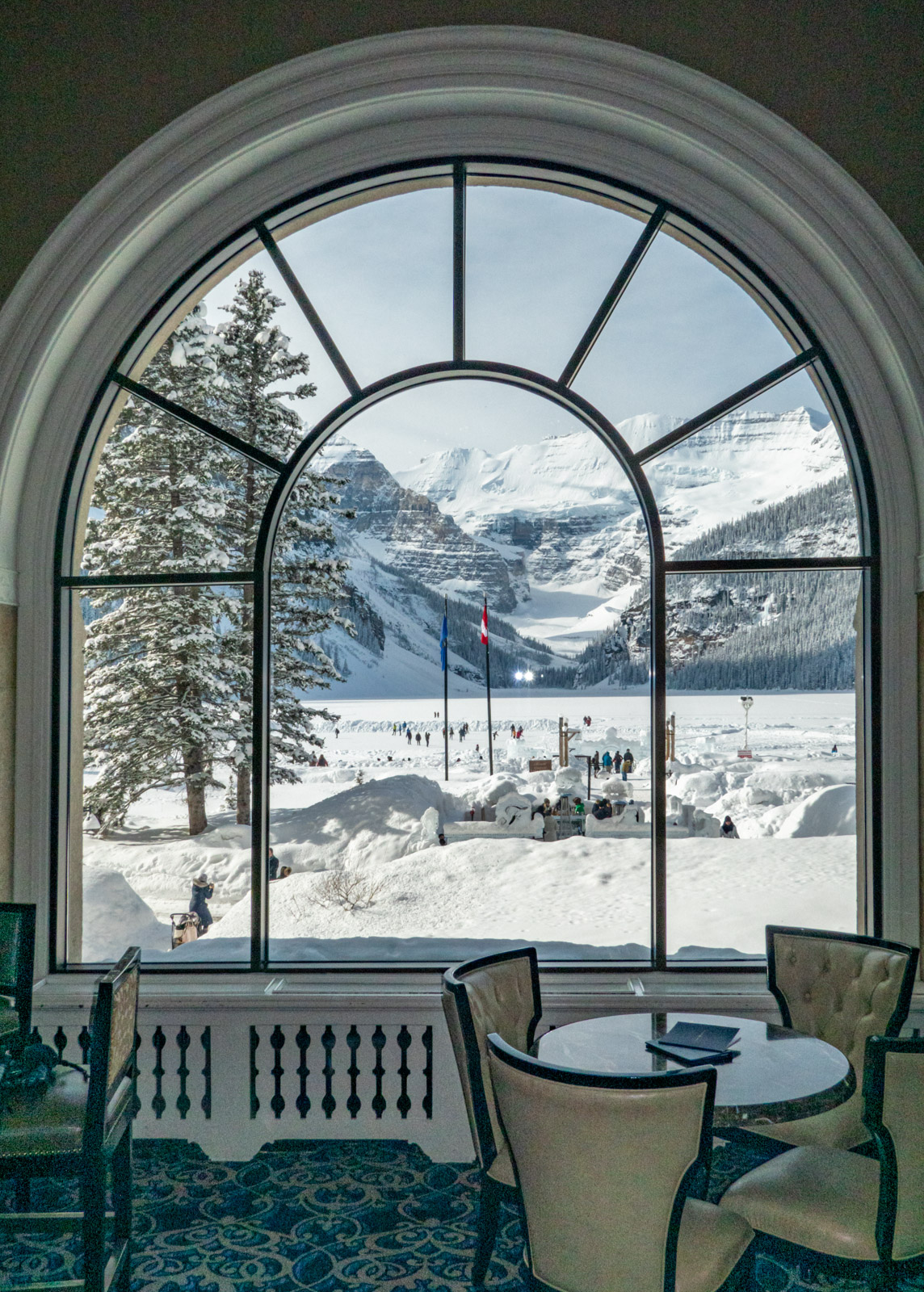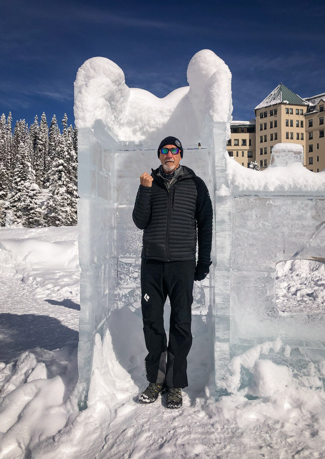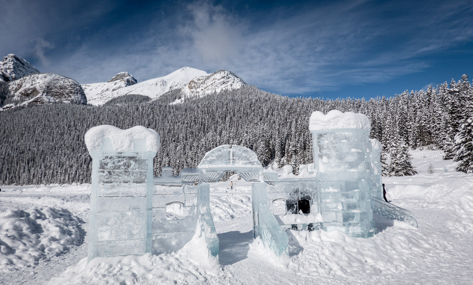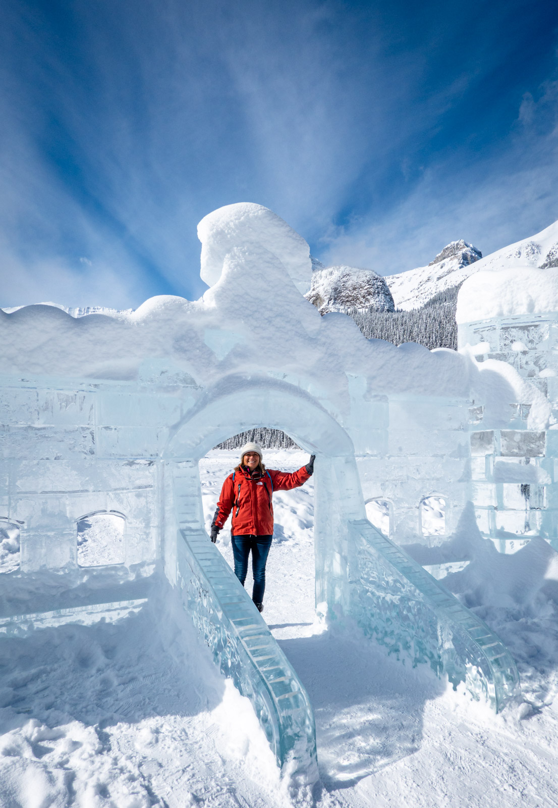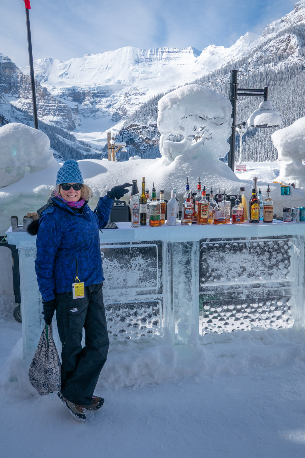 On our day off from skiing we went to visit the iconic Fairmont Chateau Lake Louise to explore and have lunch. The Hotel was originally built at the turn of the 20th century by the Canadian Pacific Railway, built to function only in summer, the hotel was winterized in 1982; and now offers skiing/snowboarding, ice skating, sleigh rides around the lake, ice sculpture contests and snowshoe excursions. There were fantastic ice sculptures so big we could walk through them. Click on thumbnail to view images