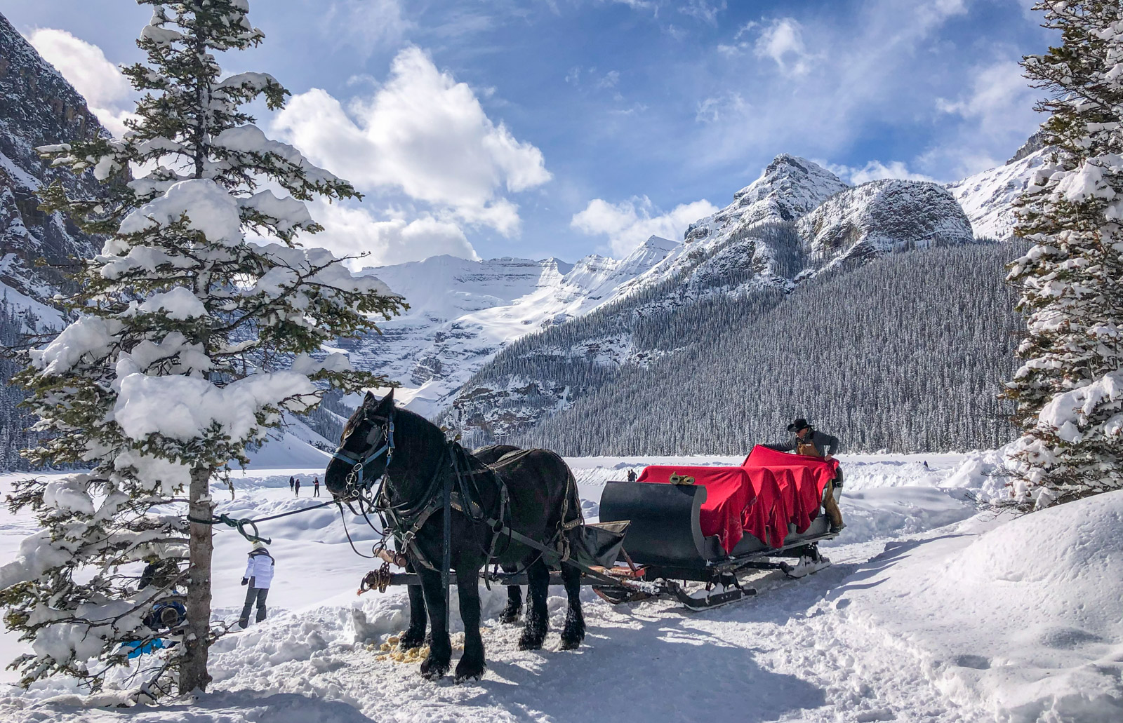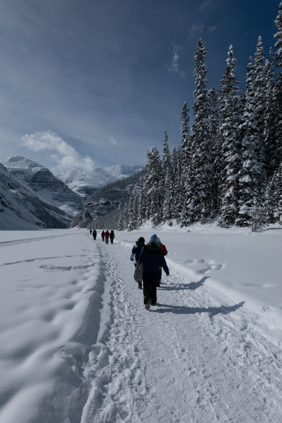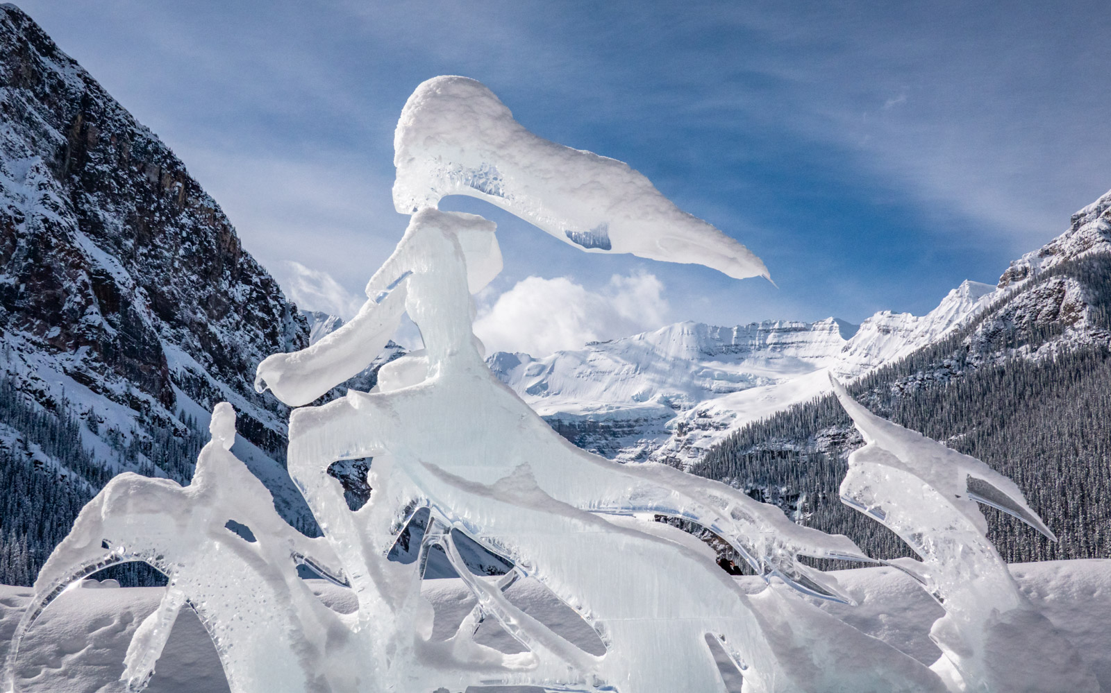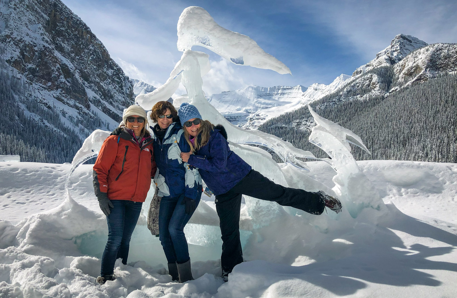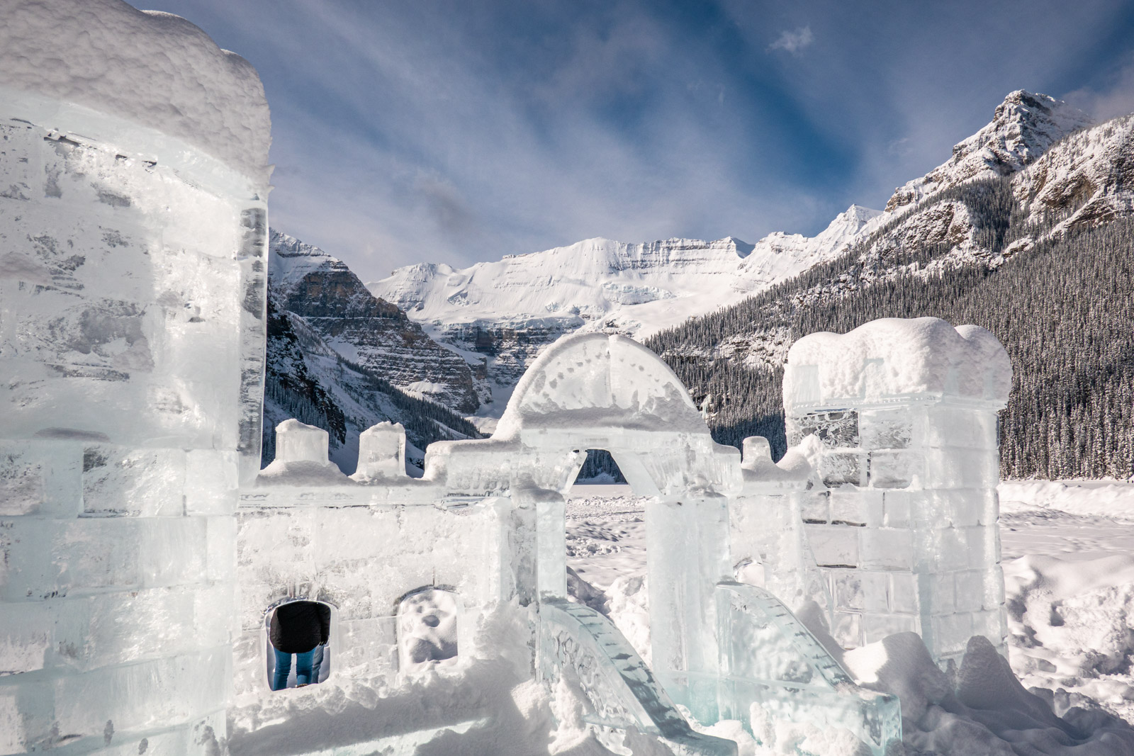 On our day off from skiing we went to visit the iconic Fairmont Chateau Lake Louise to explore and have lunch. The Hotel was originally built at the turn of the 20th century by the Canadian Pacific Railway, built to function only in summer, the hotel was winterized in 1982; and now offers skiing/snowboarding, ice skating, sleigh rides around the lake, ice sculpture contests and snowshoe excursions. There were fantastic ice sculptures so big we could walk through them. Click on thumbnail to view images