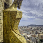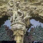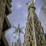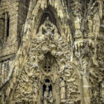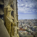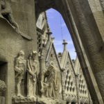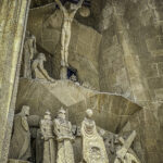 The church features three monumental façades, each expressing a central chapter of the Christian story. The Nativity Façade, completed largely during Gaudí’s lifetime, bursts with life, botanical motifs, and joyful detail. The Passion Façade, designed to appear severe and angular, conveys the drama and suffering of Christ’s final days. The future Glory Façade, still in progress, will be the grandest of all, representing the path to salvation.