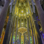 Inside, the basilica’s soaring columns branch like trees, supporting vaults shaped by geometric forms found in nature. Light pours through expansive stained-glass windows designed by artist Joan Vila-Grau, bathing the interior in shifting colors that change with the time of day. When complete, the Sagrada Família will feature 18 towers, including the central Jesus Tower, which will make it the tallest church in the world.