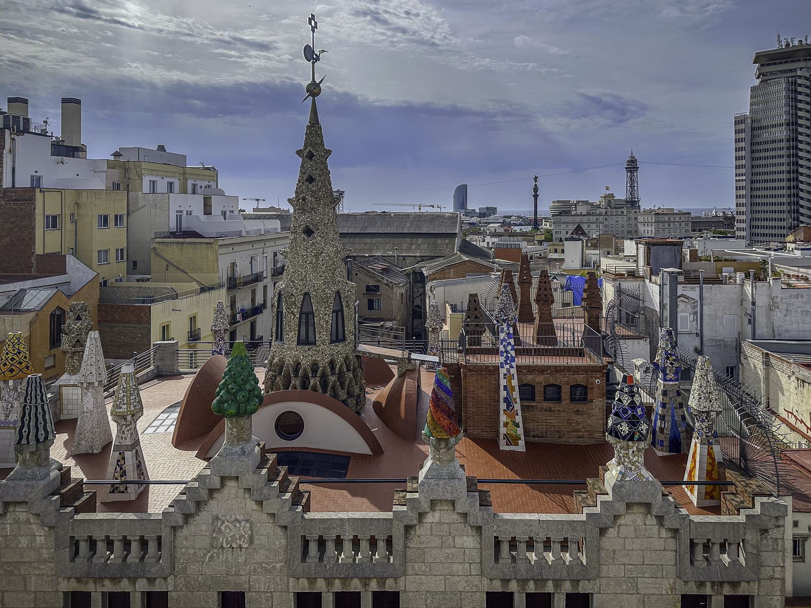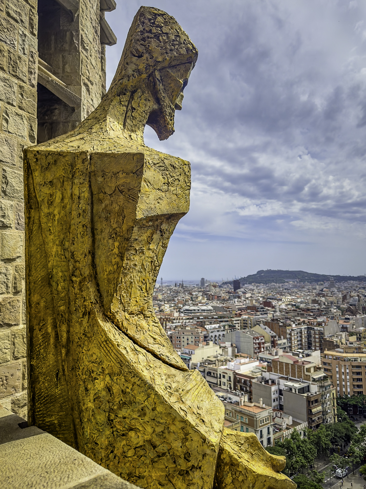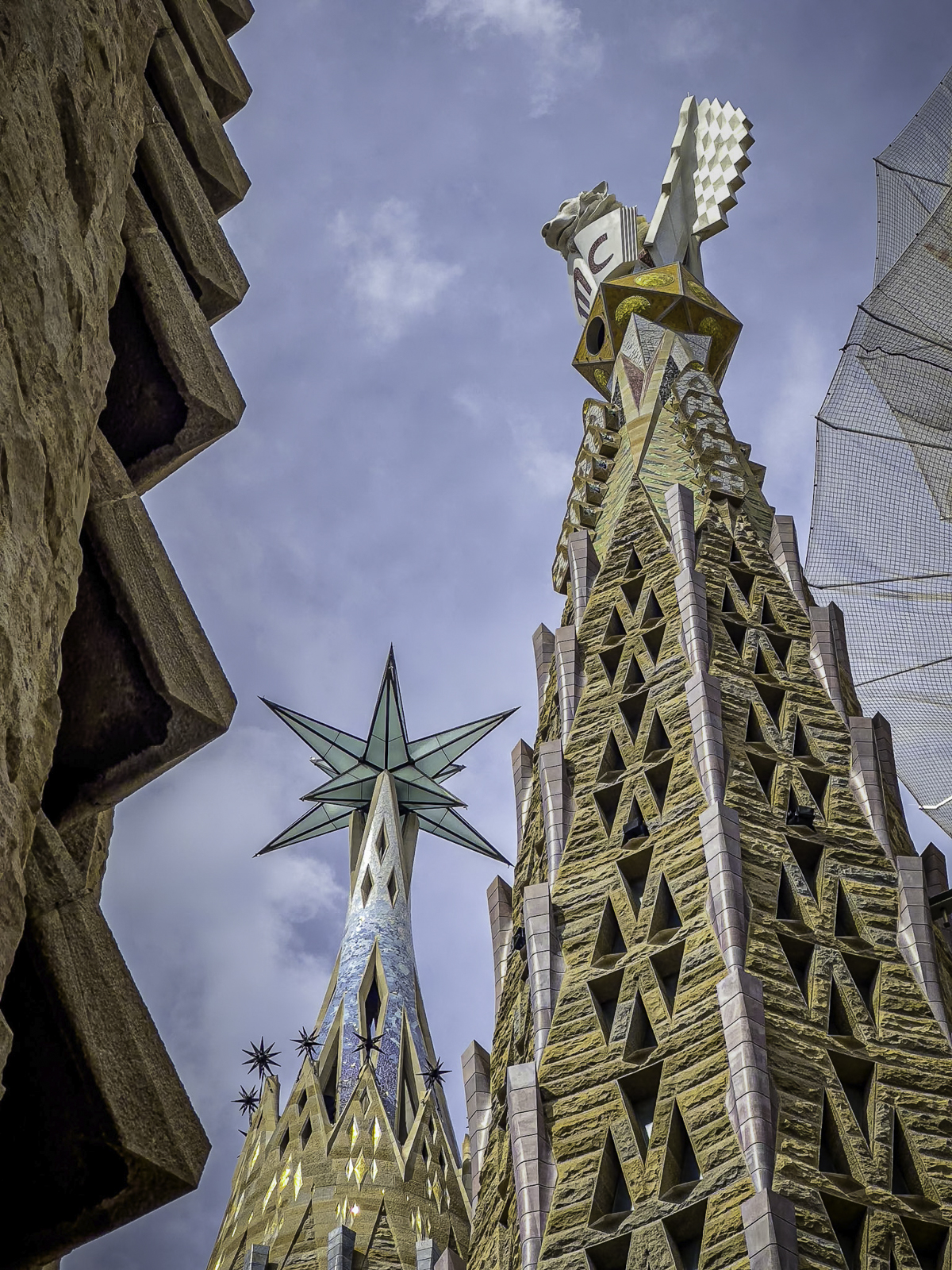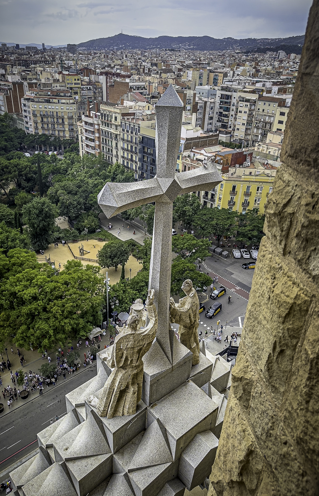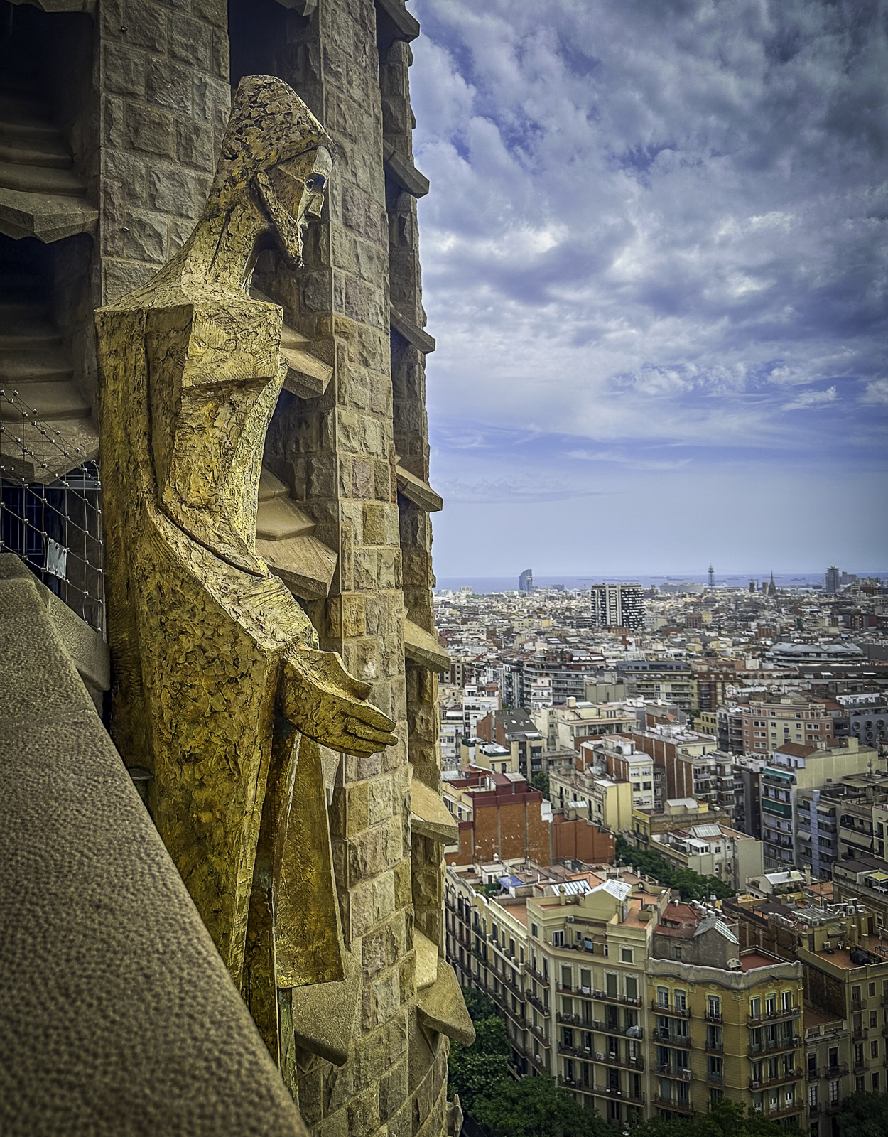 As part of our tour, we climbed one of the Sagrada Família’s towers, an experience that offered an entirely new perspective on both Gaudí’s vision and the city itself. The narrow stairways and sculpted passageways led us upward until we stepped out onto viewing platforms high above Barcelona. From here, the panorama was breathtaking—stretching from the colorful mosaics of Park Güell to the distant shimmer of the Mediterranean Sea.