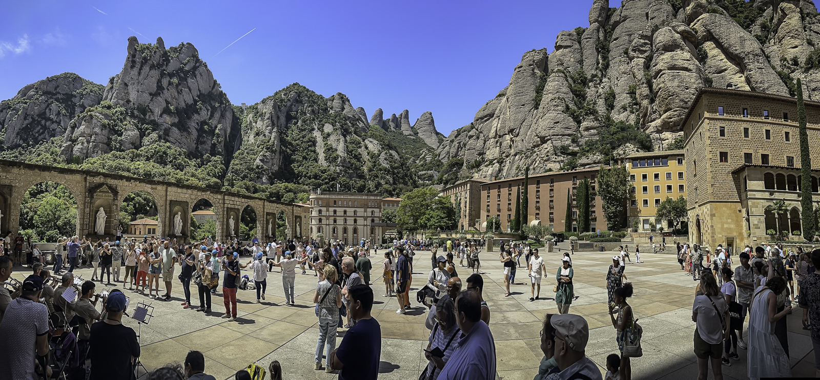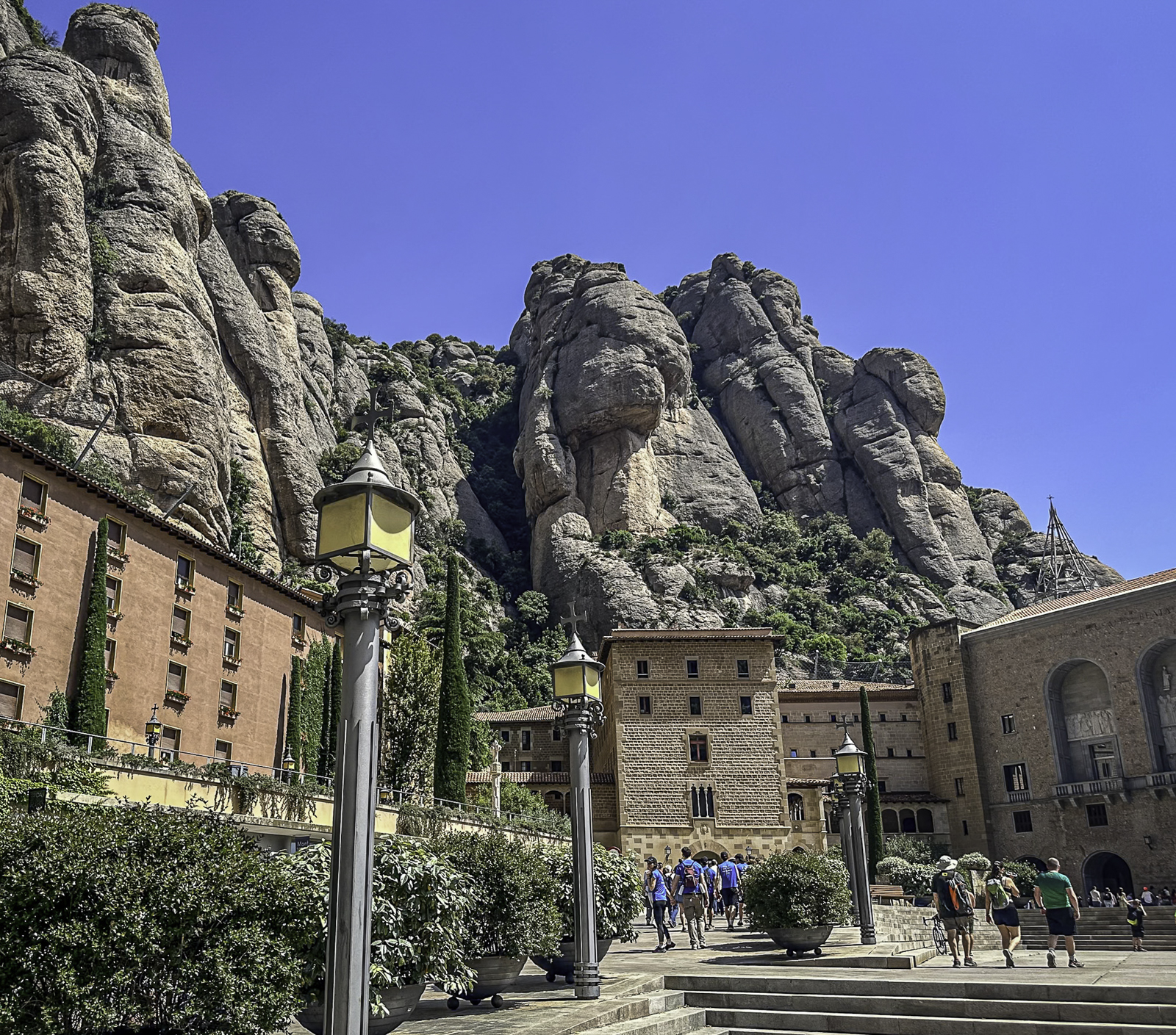 The next morning, we set out on a bus tour to one of Catalonia’s most sacred pilgrimage sites: the Santa Cueva de Montserrat. Nestled high in the serrated mountains west of Barcelona, this holy cave is traditionally believed to be the place where shepherds discovered the revered Black Madonna—La Moreneta—around the year