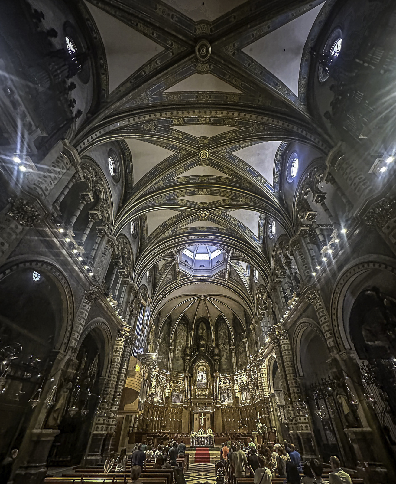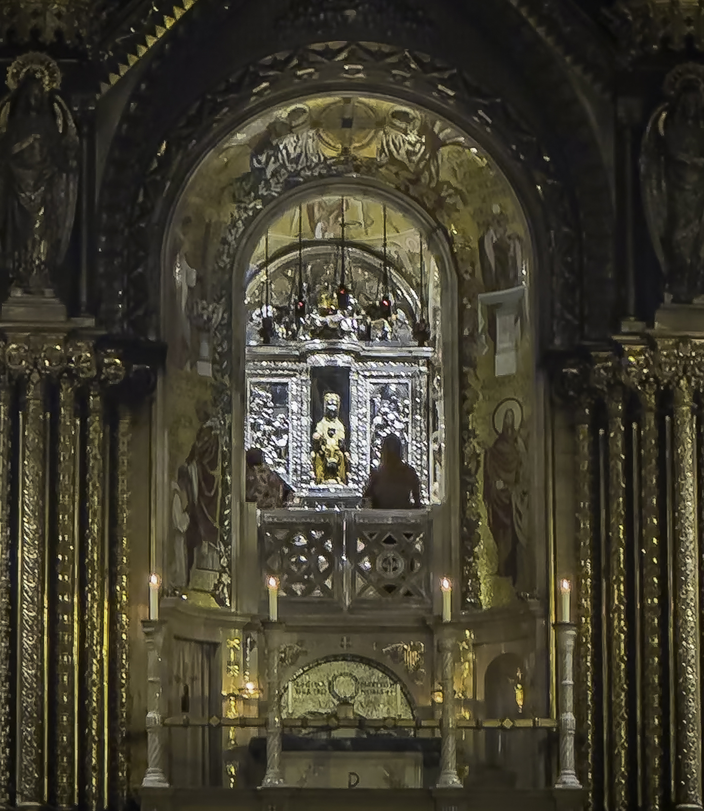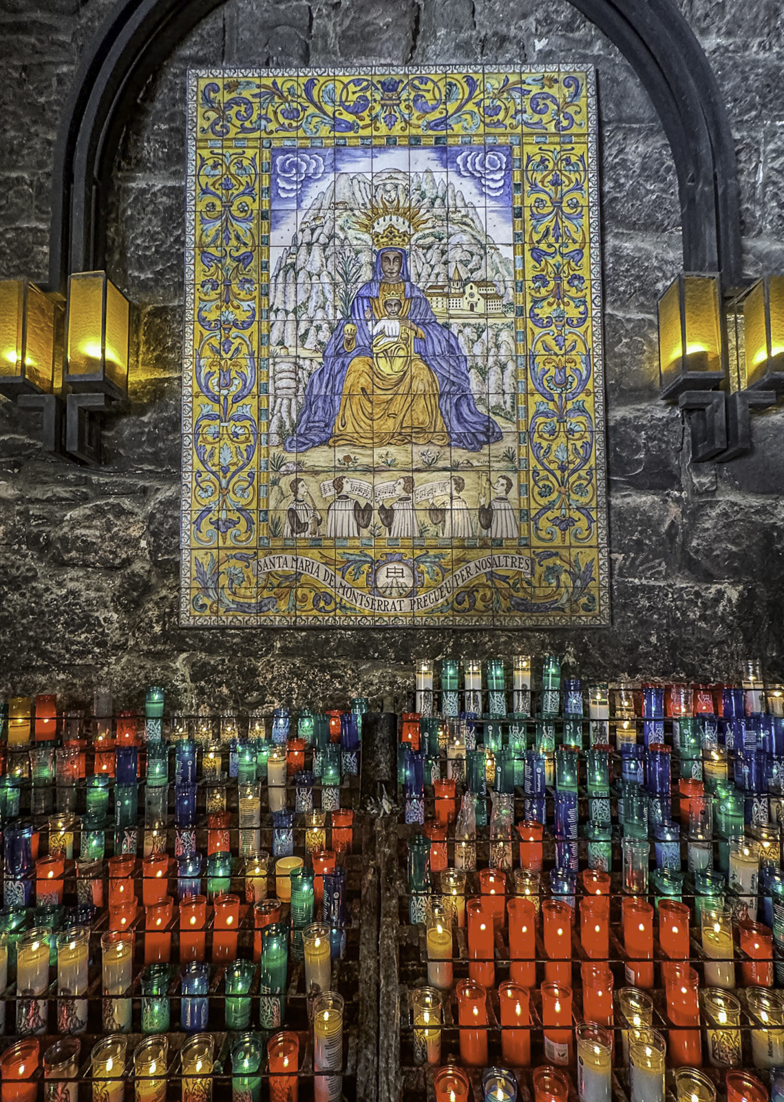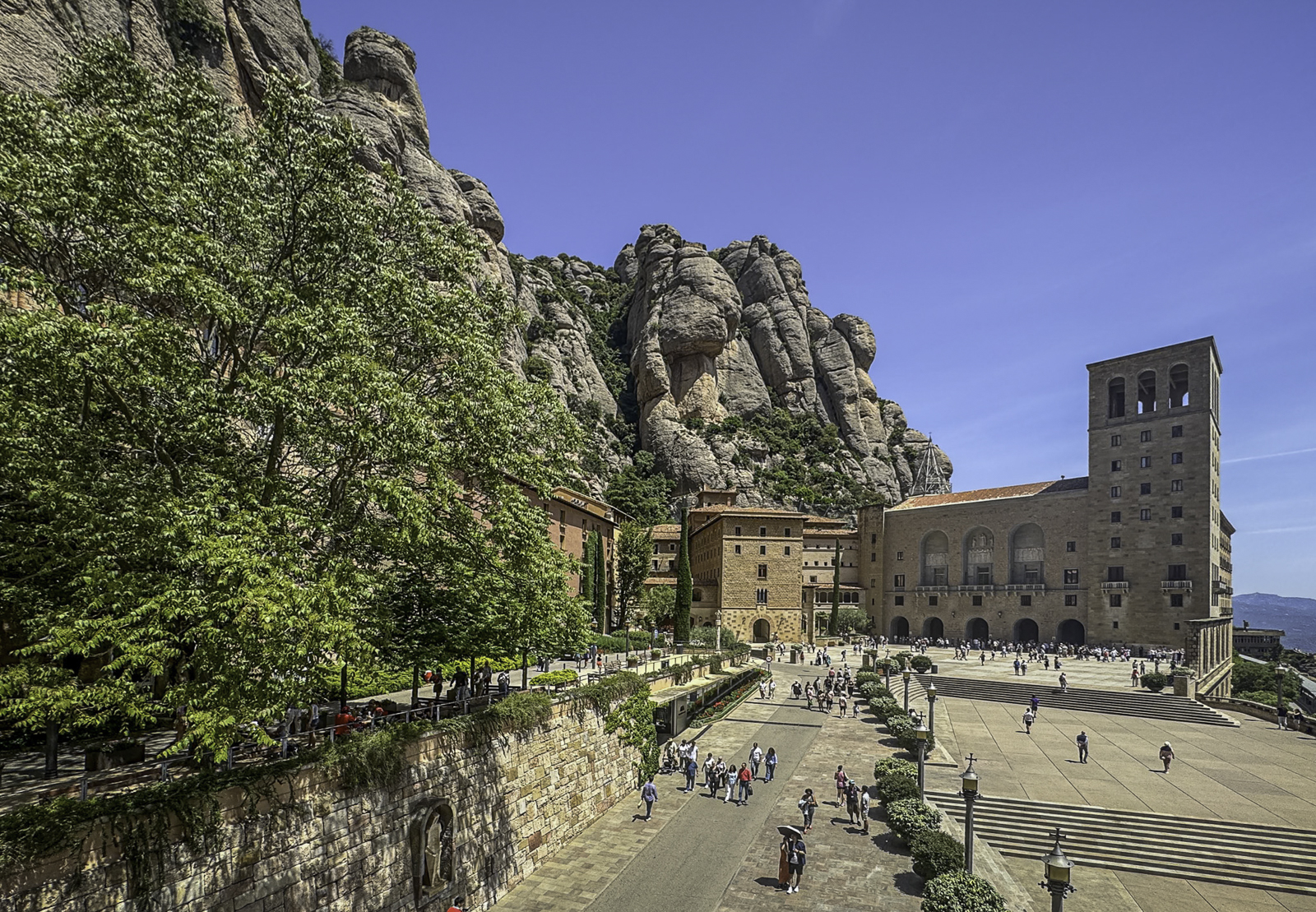 The Holy Cave is reached by a winding mountain path carved into dramatic cliffs that overlook deep valleys and rugged peaks. Along the route stand chapels and sculpted monuments depicting the mysteries of the rosary, many created by Catalan artists of the 19th and early 20th centuries. The small chapel built into the cave itself marks the sacred spot of the Madonna’s discovery and preserves centuries of devotional tradition.