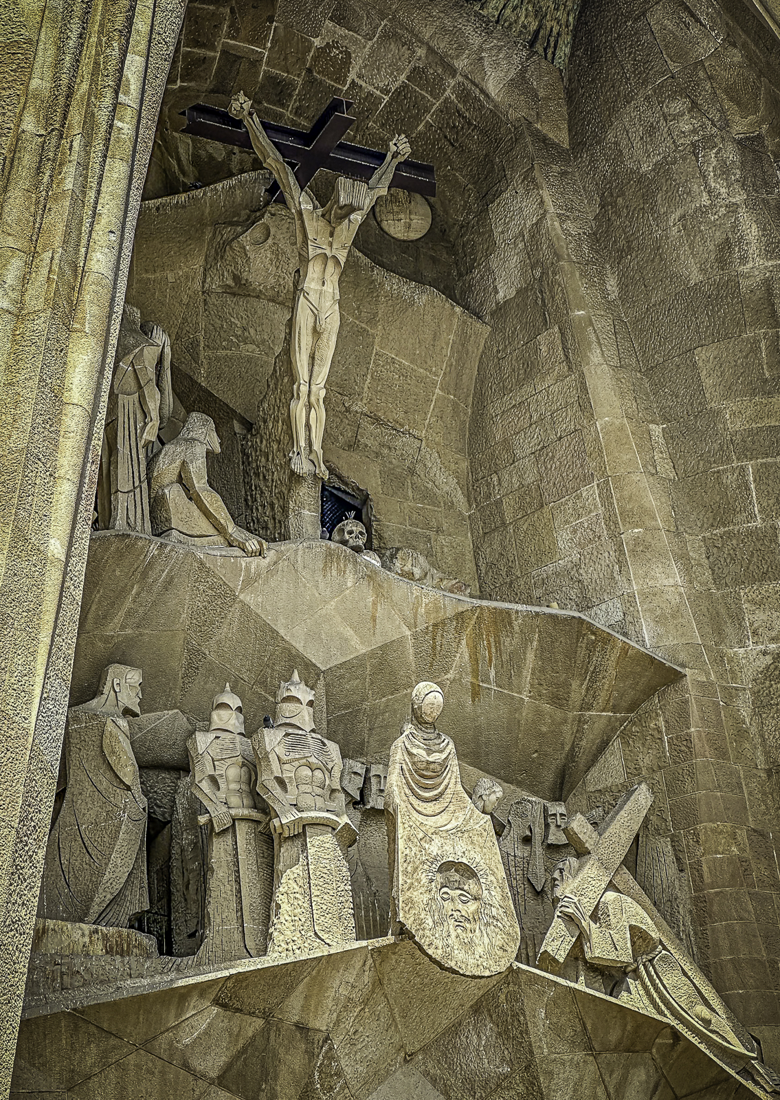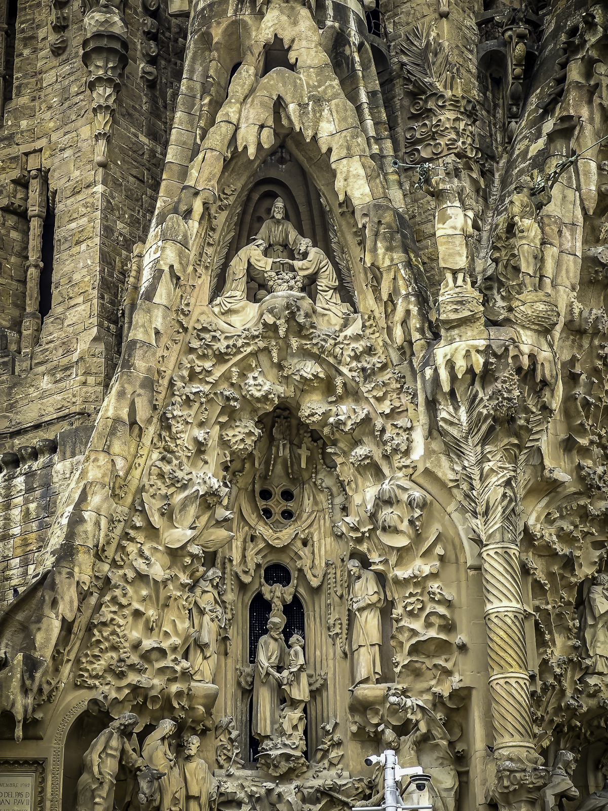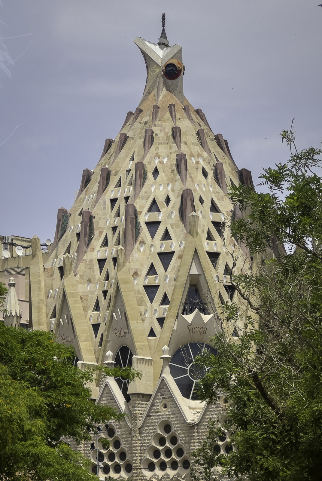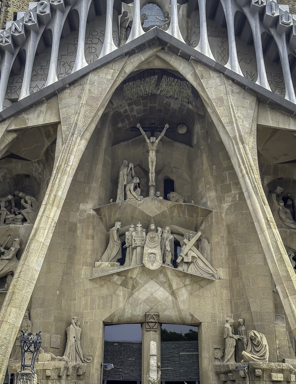 The church features three monumental façades, each expressing a central chapter of the Christian story. The Nativity Façade, completed largely during Gaudí’s lifetime, bursts with life, botanical motifs, and joyful detail. The Passion Façade, designed to appear severe and angular, conveys the drama and suffering of Christ’s final days. The future Glory Façade, still in progress, will be the grandest of all, representing the path to salvation.