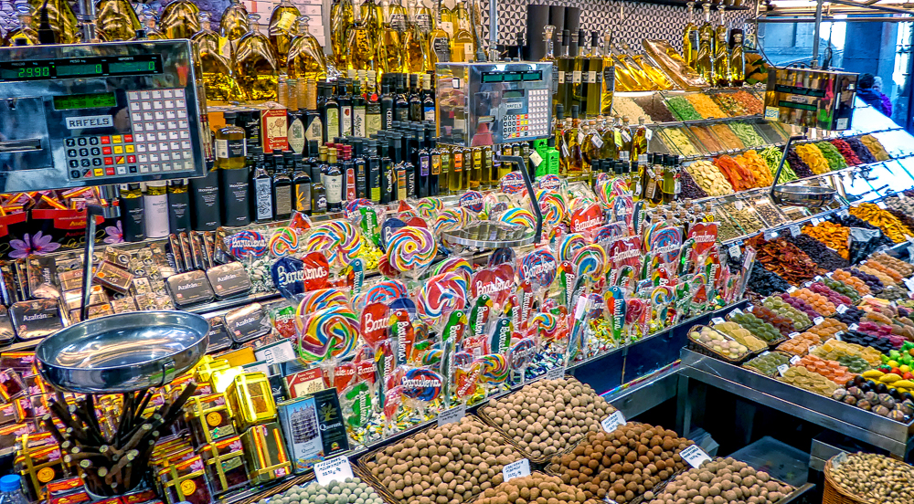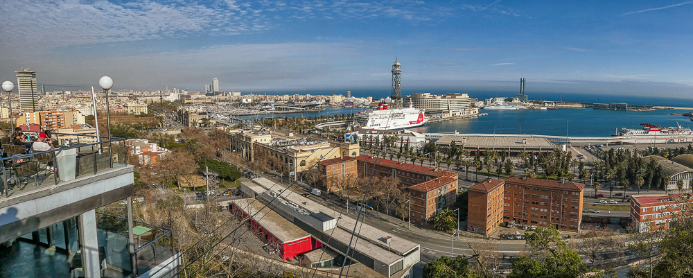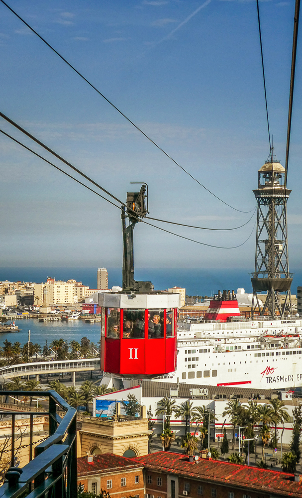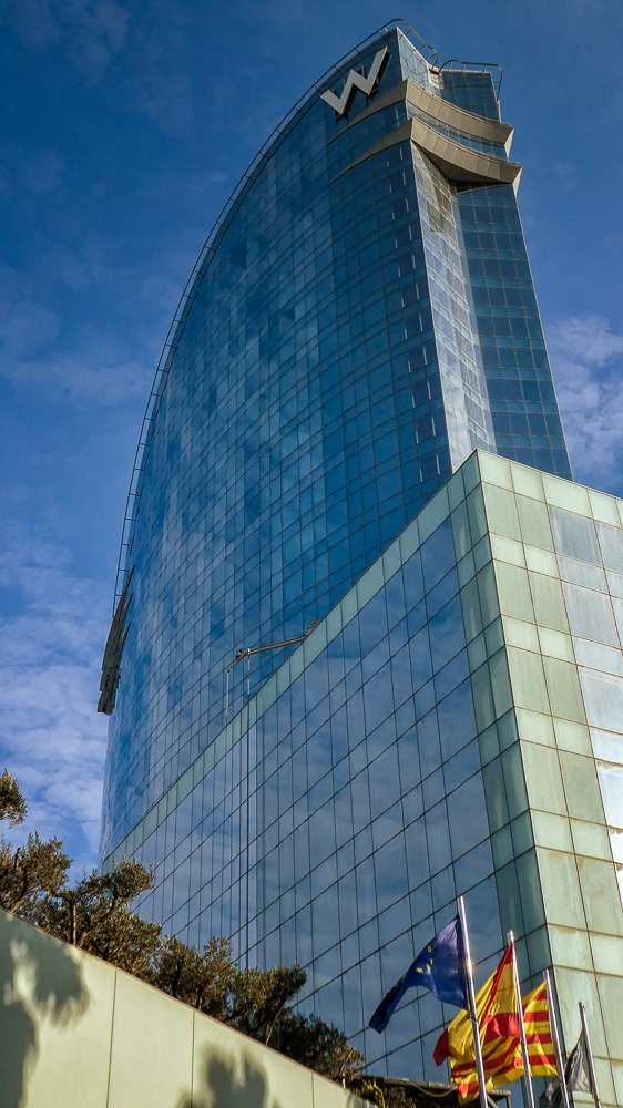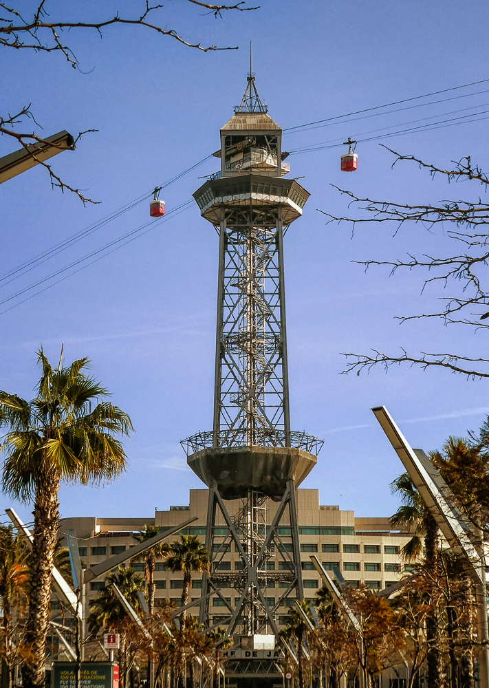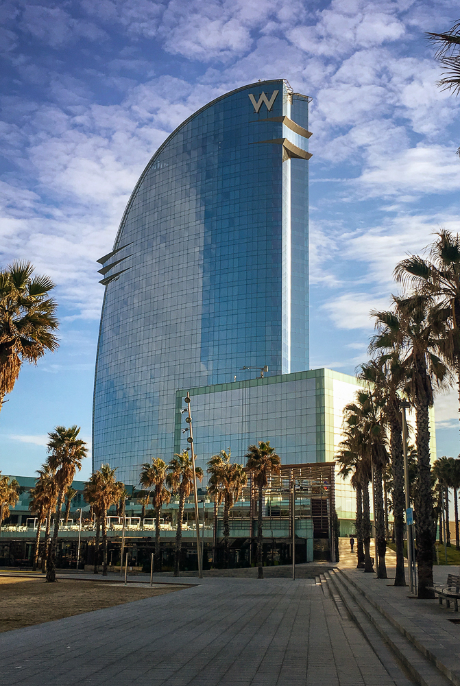 Today we walked down La Rambla again and stopped at the market, La Boqueria. The Mercat de Sant Josep de la Boqueria is a large public market, and one of the city’s foremost tourist landmarks, because of the entrance from La Rambla. The market officially opened in 1840 housing mainly fishmongers and butchers. Today there are lots of fruits and vegetables for sale as well as candied fruit. From the market we we went back up the hill to the Parc Montjuic to get the Montjuic Cable Car down to the harbor. We had expansive views of Barcelona, an opportunity to admire the city from a bird’s-eye perspective. We walked along the beautiful sandy beach and stopped at the W Barcelona Hotel with panoramic views over the Mediterranean.