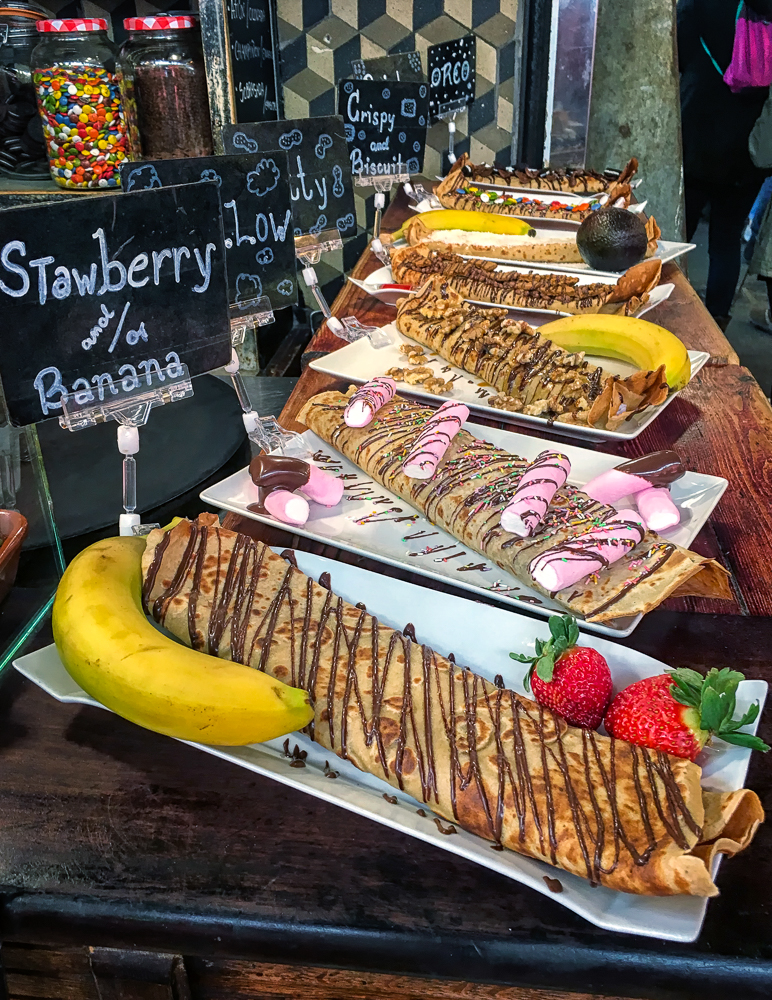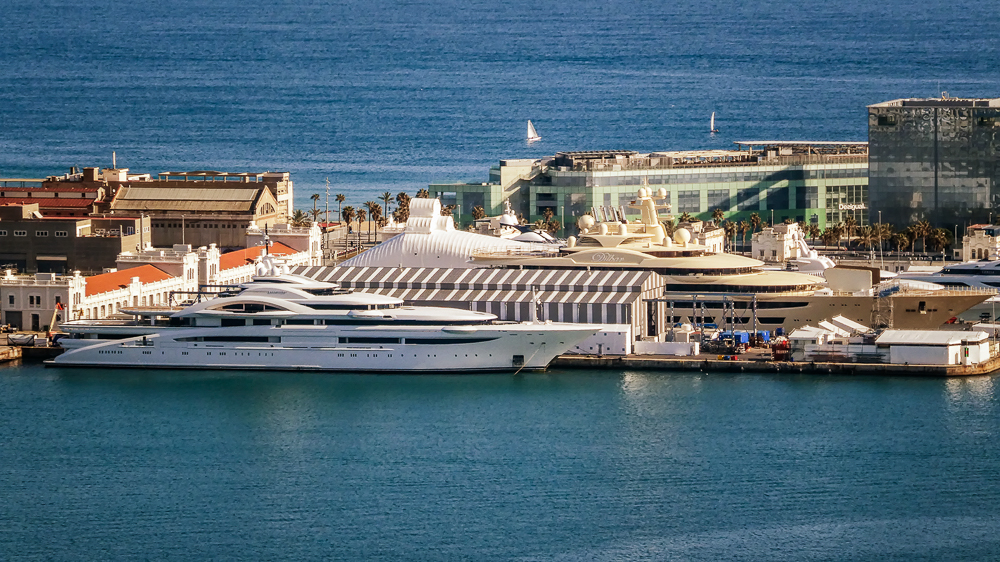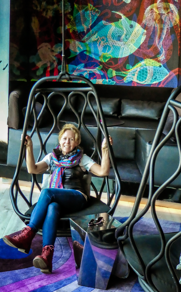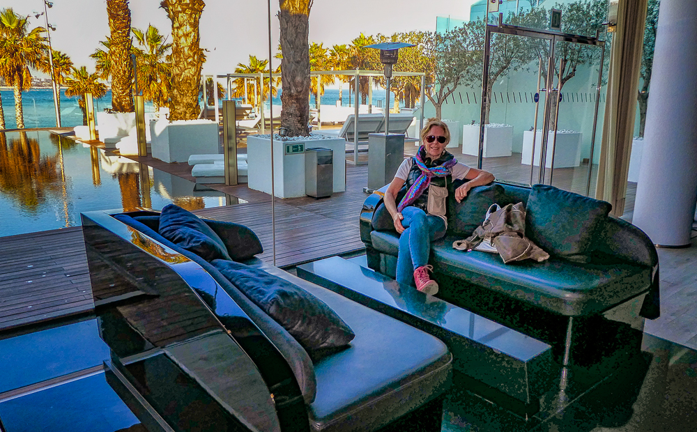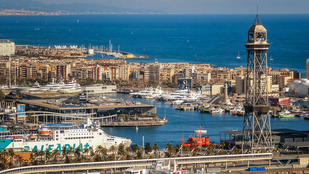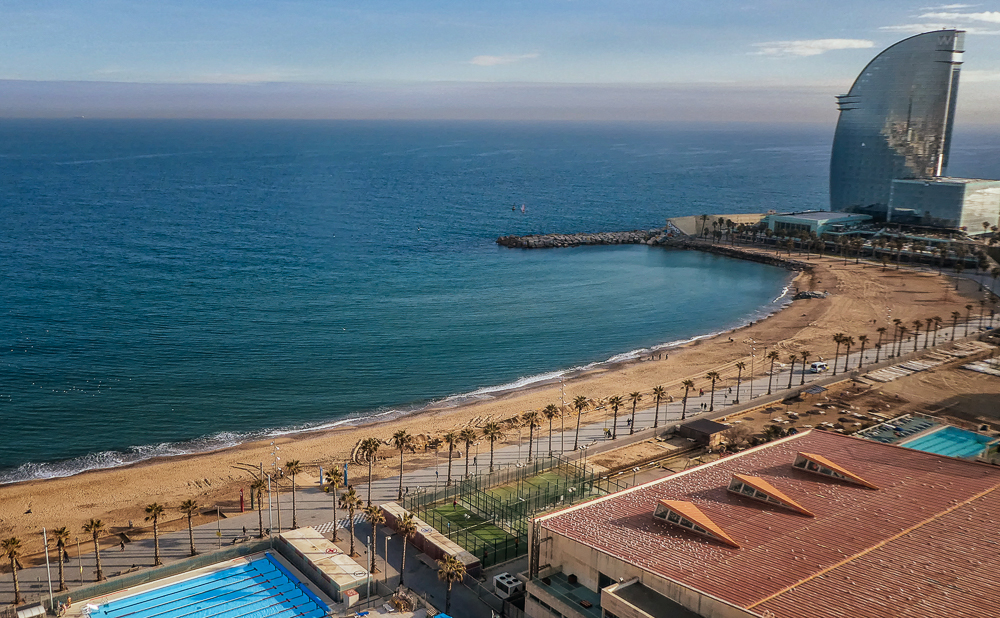 Today we walked down La Rambla again and stopped at the market, La Boqueria. The Mercat de Sant Josep de la Boqueria is a large public market, and one of the city’s foremost tourist landmarks, because of the entrance from La Rambla. The market officially opened in 1840 housing mainly fishmongers and butchers. Today there are lots of fruits and vegetables for sale as well as candied fruit. From the market we we went back up the hill to the Parc Montjuic to get the Montjuic Cable Car down to the harbor. We had expansive views of Barcelona, an opportunity to admire the city from a bird’s-eye perspective. We walked along the beautiful sandy beach and stopped at the W Barcelona Hotel with panoramic views over the Mediterranean.