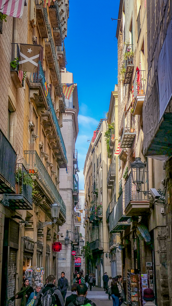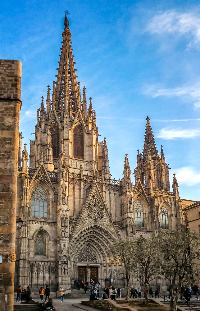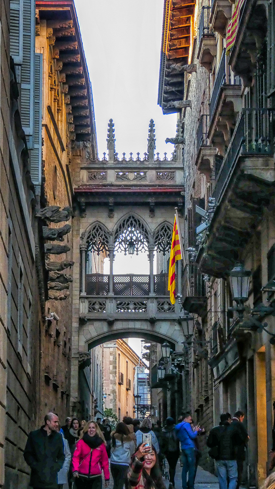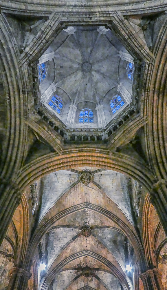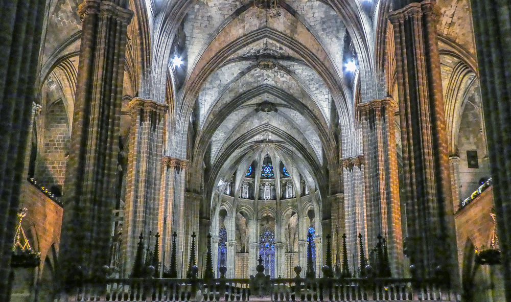 Today we walked the streets of Barcelona, enjoying the beautiful old architecture of the Gothic Quarter. We stopped at the Cathedral of Santa Eulalia, or Barcelona Cathedral, constructed from the 13th to the 15th centuries, it is the Gothic cathedral and seat of the Archbishop of Barcelona. The roof is notable for its gargoyles, featuring a wide range of animals. Inside the cathedral the high altar is raised allowing a clear view into the crypt. The cathedral is dedicated to Eulalia of Barcelona, who suffered martyrdom during the Roman times in the city.