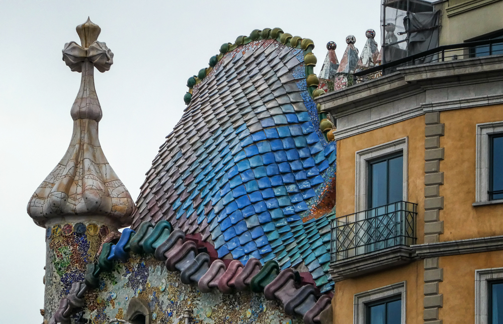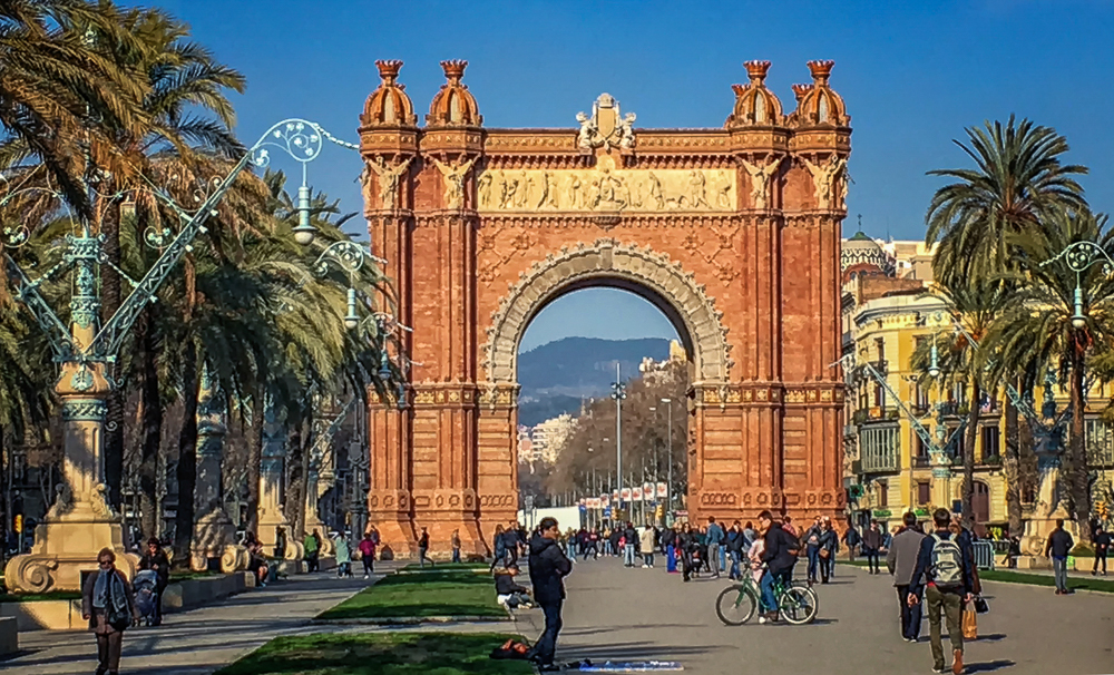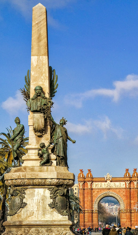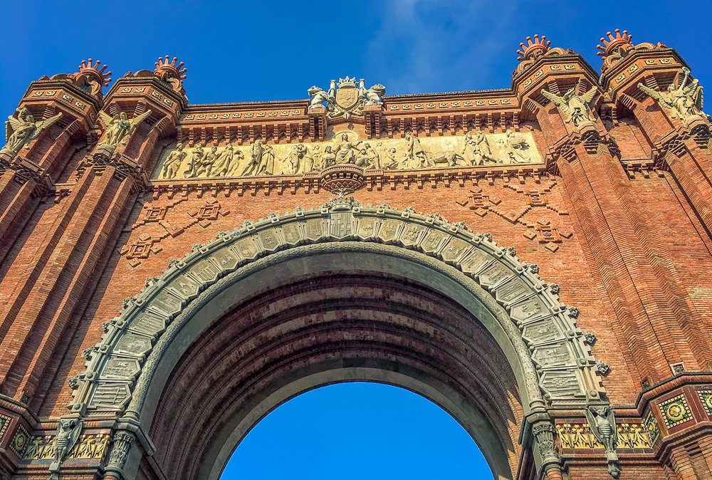 Today we walked the charming Gothic Quarter of Barcelona, narrow medieval streets filled with trendy bars, clubs and Catalan restaurants. The quarter encompasses the oldest part of the city of Barcelona, and includes remains of the city’s Roman wall and several notable medieval landmarks, including the Barcelona Cathedral. Artisans selling leather and jewelry line the streets, while flower stalls and street-food vendors line the busy avenue La Rambla. We passed the Torre Glories, formerly known as Torre Agbar, a symbol of Barcelona, it is a 38-story skyscraper/tower, which marks the gateway to the new technological district of Barcelona. It opened in June 2005, and was owned by the multinational group Agbar, which has its corporate headquarters in the building. By 2017 it was purchased by Merlin Properties real estate group and was renamed as Torre Glories after the name of the adjacent square. Finally we saw the beautiful Arc de Triomf,(91ft by 41ft), built by Josep Vilaseca, as the main gate for the 1888 Barcelona World Fair. The arch is built in reddish brickwork in the Neo-Mudejar style. The front frieze contains the stone sculpture “Barcelona rep les nacions” meaning “Barcelona welcomes the nations”.