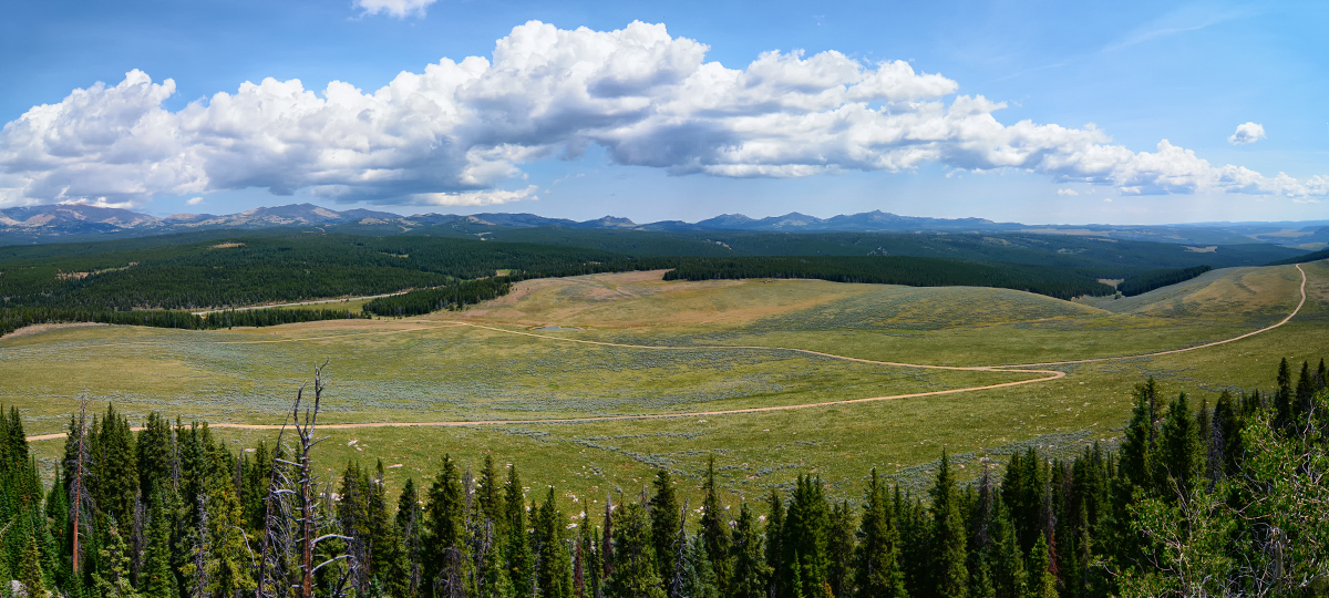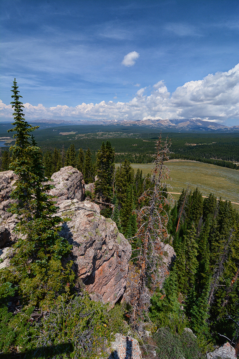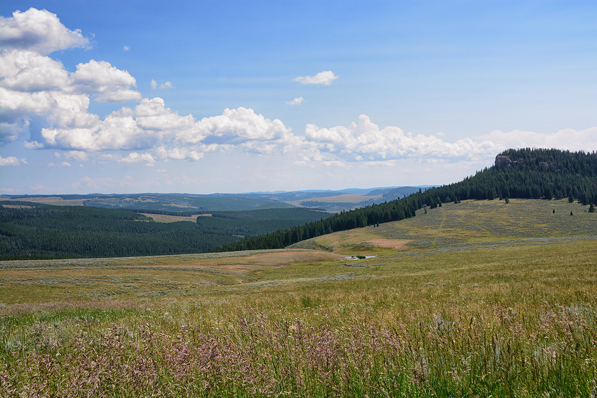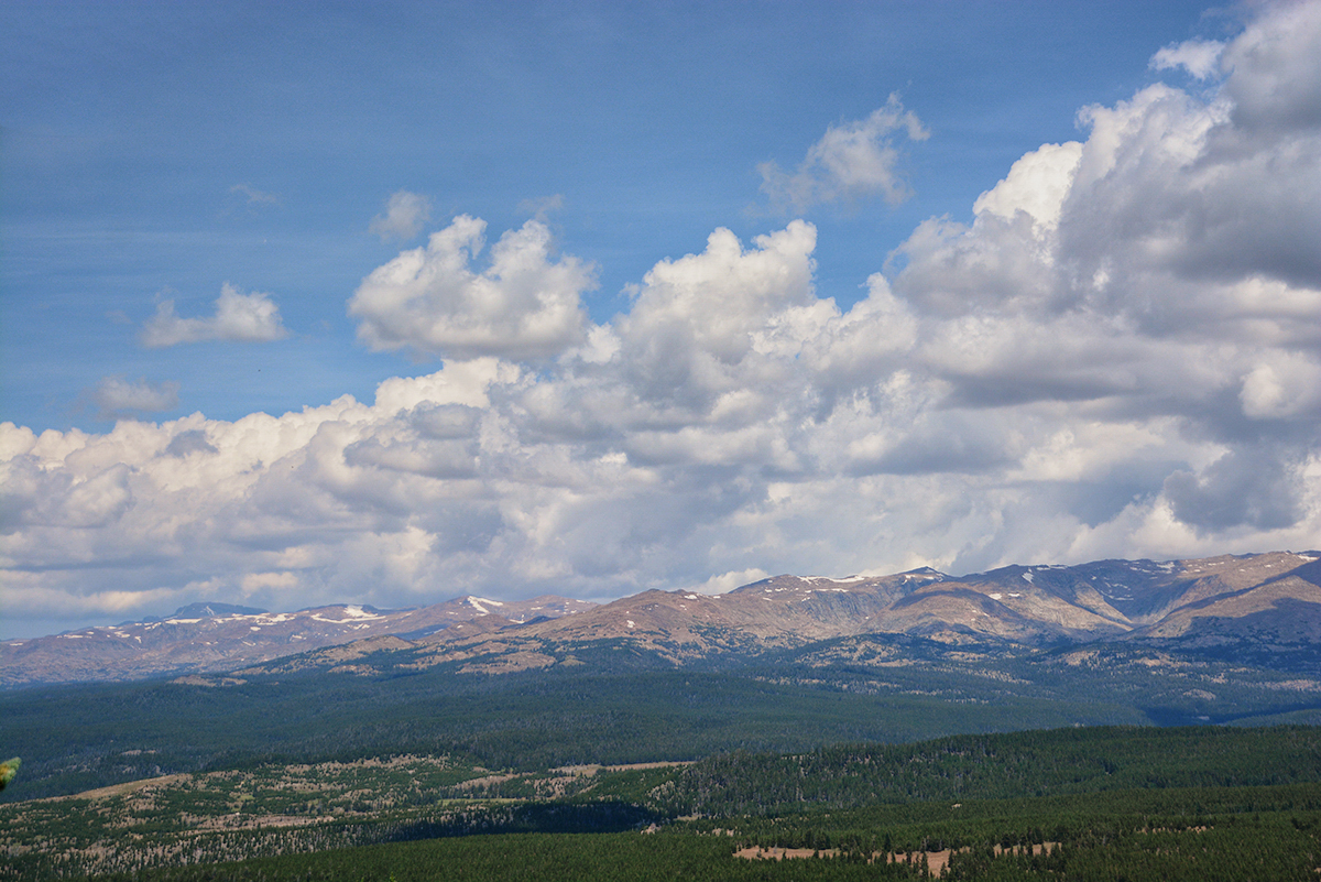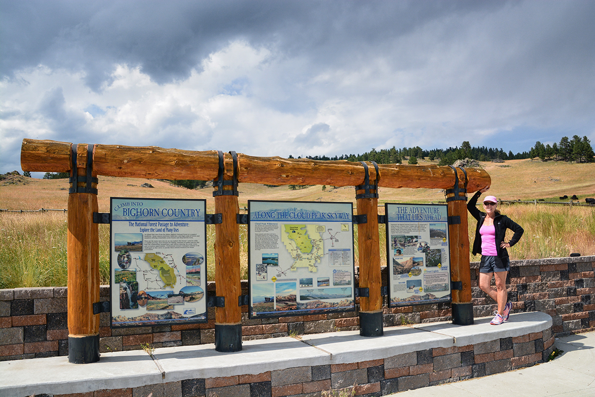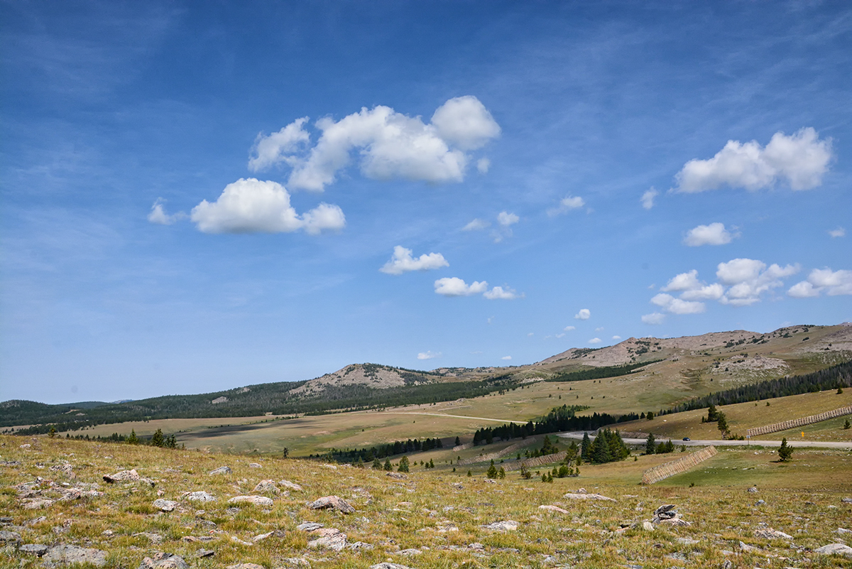 The next day, Aug 2nd, it was a beautiful sunny morning and we drove the 64 mile, Cloud Peak Skyway Scenic Byway from Buffalo to Ten Sleep, WY. The Byway travels through the southern section of the Bighorn National Forest and crosses over the the Powder River Pass (9,666ft). At the pass we hiked further up the hill and had great views of Cloud Peak the highest in the Big Horn Mountains at 13,167 feet.