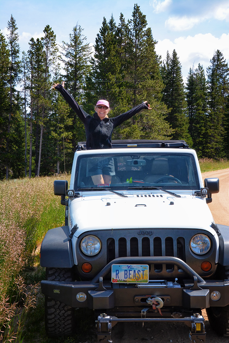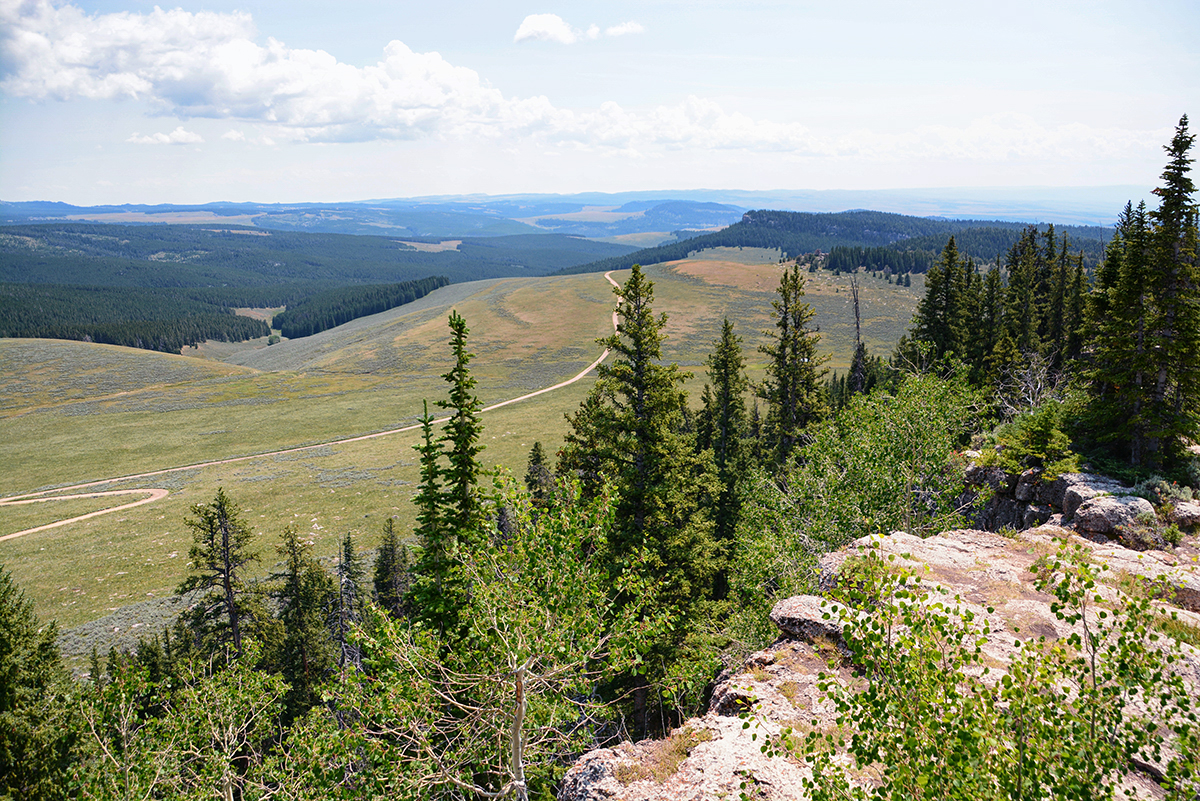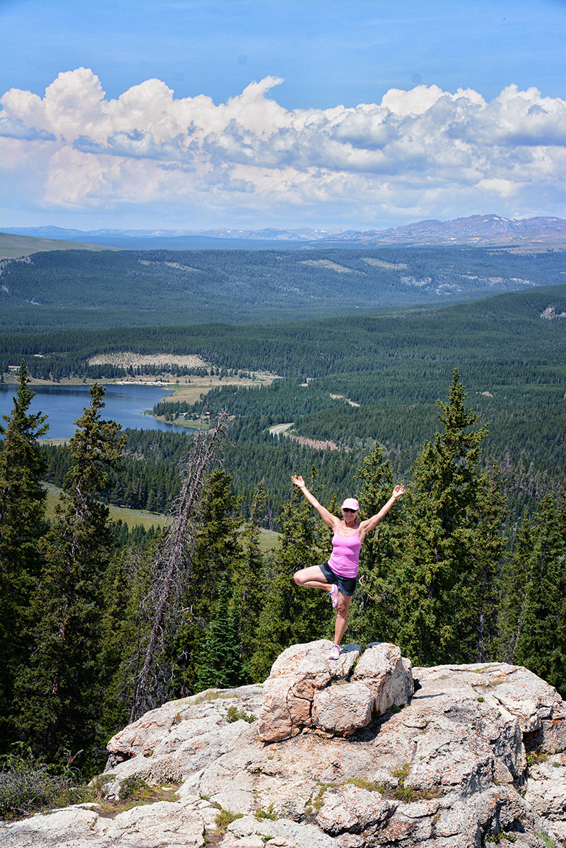 On the way back we stopped at the High Park Fire Lookout, we took the dirt road about ten minutes to the small parking lot and hiked 15 minutes up to the fire tower. This Lookout is one of the only 3 CCC built fire towers that remains in the Big Horn Mountains. In the 1920’s and 1930’s it was manned throughout the summer, there is still a bed, stove, fridge and table inside. We walked up onto the deck of the tower and the views were breath-taking, 360 degree vista looking out over the Big Horn Mountains for miles. We drove 128 miles round trip today on the Cloud Peak Skyway Scenic Byway and it was well worth the drive.