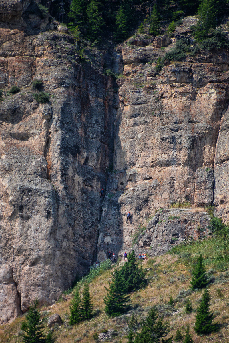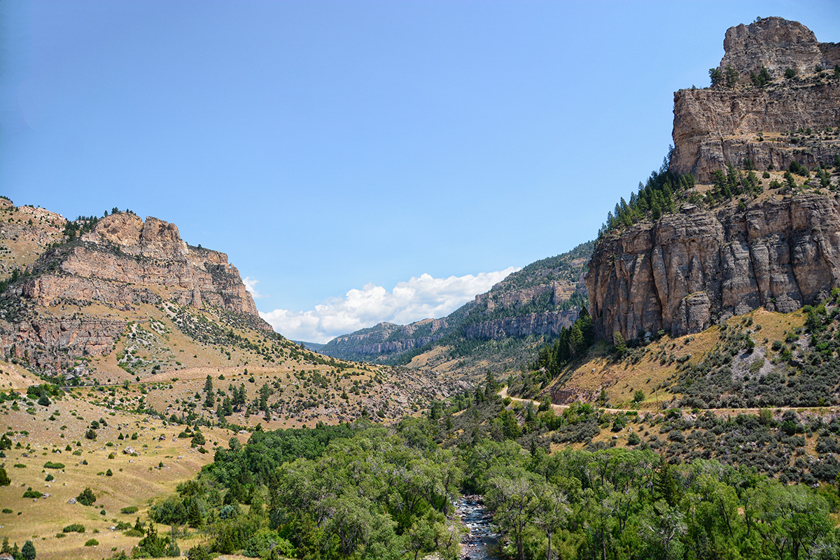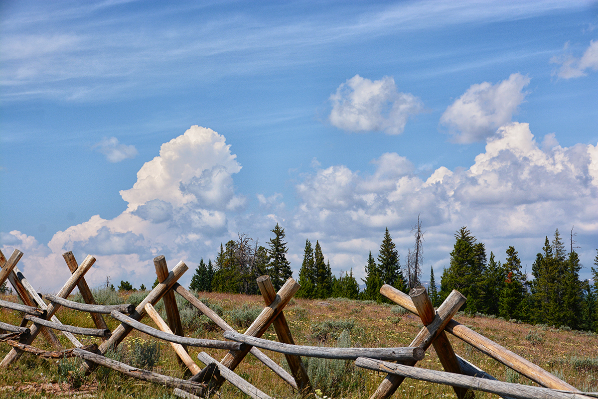 After leaving the Pass we drove off the main road to the Meadowlark Ski Lodge, a beautiful lodge located at the foot of the mountains and next to Meadowlark Lake. Then we started the descent into Ten Sleep Canyon, descending 3,000 feet in just a few minutes along several switchbacks. The canyon walls were formed millions of years ago of dolomite stone. There were large pullouts to get out of the car a view the beauty of these canyon walls and Ten Sleep Creek. Once we descended the canyon we made are way to Ten Sleep, a small western town, with a few shops and restaurants to stop and eat. The name Ten Sleep came from the Native American Indians when they would ride from Casper, WY to Bridger, WY, and Ten Sleep was half way, this it would take them ten sleeps to get there. After having a bite to eat we turned around and drove back to Buffalo. On the way back we stopped at the High Park Fire Lookout, we took the dirt road about ten minutes to the small parking lot and hiked 15 minutes up to the fire tower. This Lookout is one of the only 3 CCC built fire towers that remains in the Big Horn Mountains. In the 1920’s and 1930’s it was manned throughout the summer, there is still a bed, stove, fridge and table inside. We walked up onto the deck of the tower and the views were breath-taking, 360 degree vista looking out over the Big Horn Mountains for miles. We drove 128 miles round trip today on the Cloud Peak Skyway Scenic Byway and it was well worth the drive.