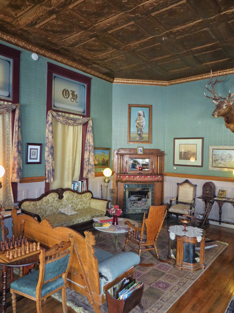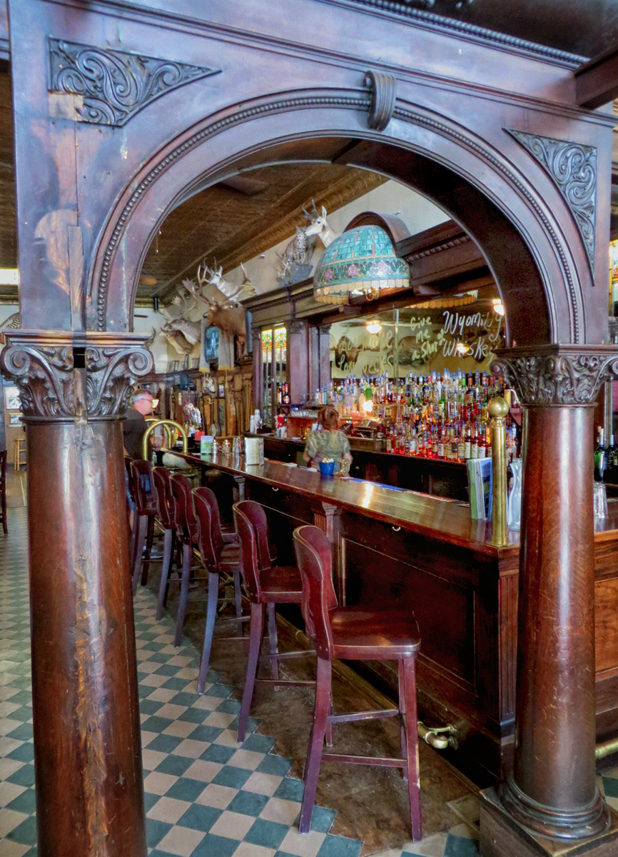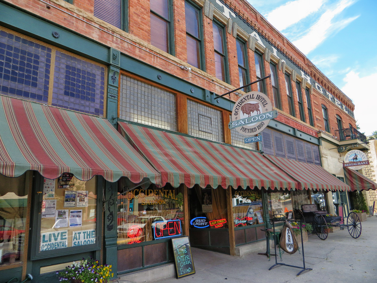Friday August 1st, we left Livingston and headed east to Buffalo, WY, where we are staying at the Indian Campground and RV Park for two nights. We arrived early so we had time to go into Buffalo and walk the Main Street. Buffalo’s Main Street has a curve in the street, most Main Street are straight, but in the very early days a merchant was not getting enough traffic so he had a friend take a bull team and change the dirt path slightly to go by his store, and that trail is today’s Main Street. The historic Occidental Hotel was first established in a tent in 1879, in 1880, the first actual building for the hotel was constructed of logs, and the building was formally called the Occidental Hotel (meaning “Western” Hotel). The brick building that we are standing in today was constructed between 1901 and 1910. It has a real old western feeling and the Saloon still looks like it did in 1880, and I was waiting for Buffalo Bill Cody, Butch Cassidy, the Sundance Kid or Calamity Jane to walk through the doors.