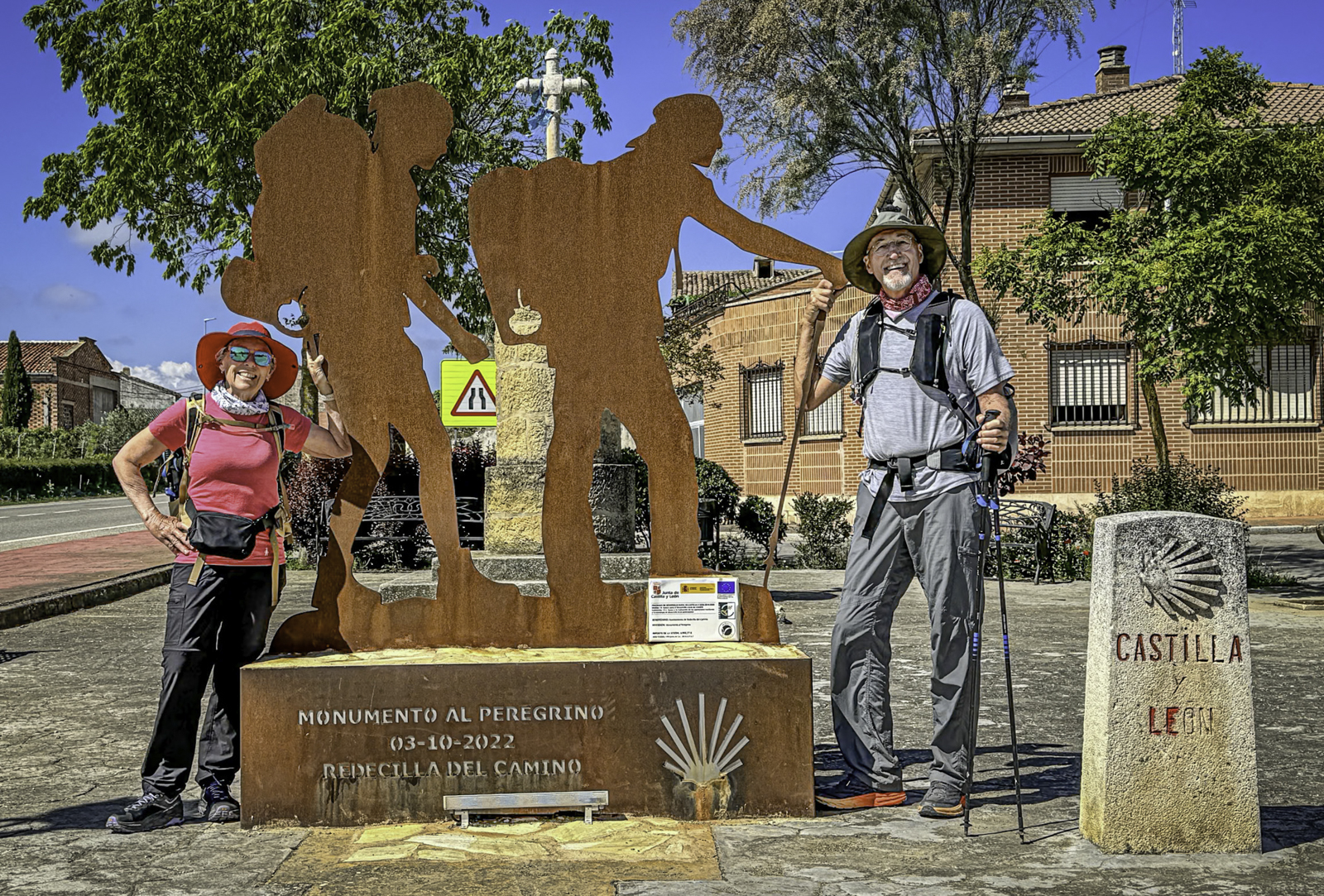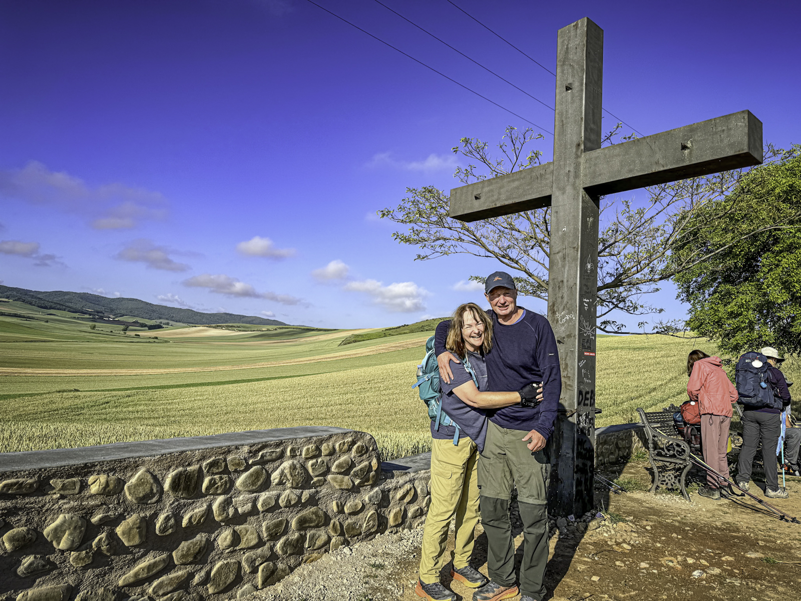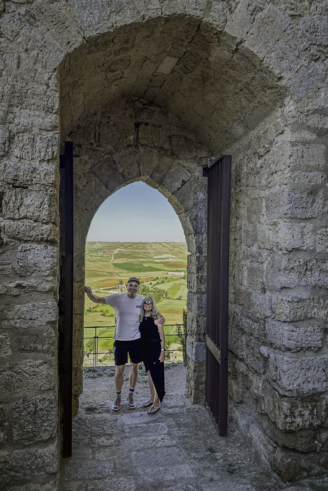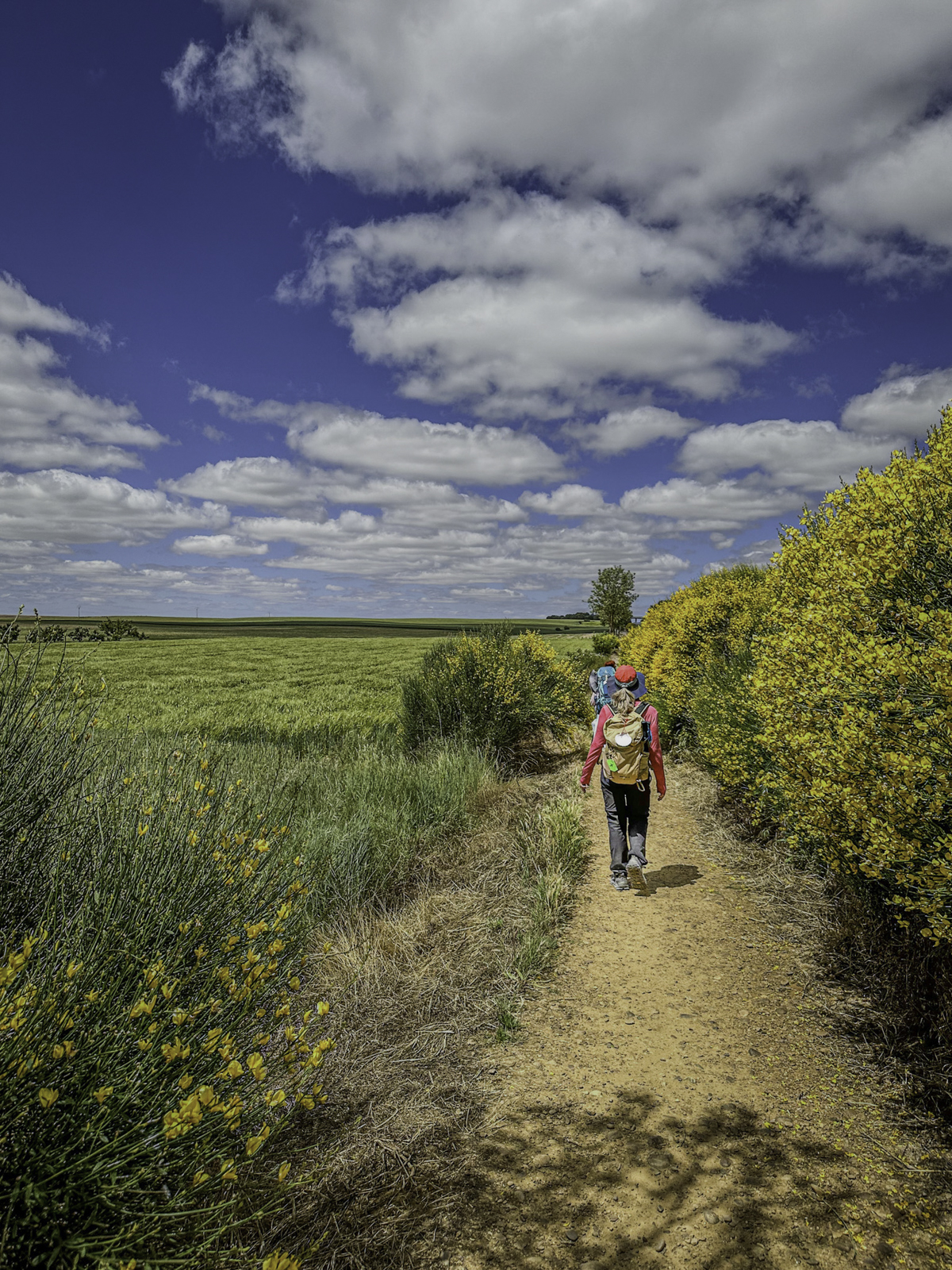 Departing the historic city of Burgos, renowned for its UNESCO-listed Gothic cathedral and rich medieval heritage, we stepped into the vast expanses of the Meseta. This high plateau, often called the “breadbasket of Spain,” is characterized by its endless wheat fields, gently rolling terrain, and expansive skies. Joining us for this leg were our son Eric and his fiancée Laura, adding a joyful and familial element to our journey.