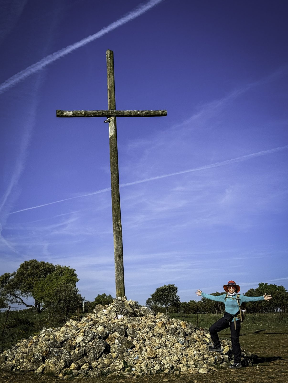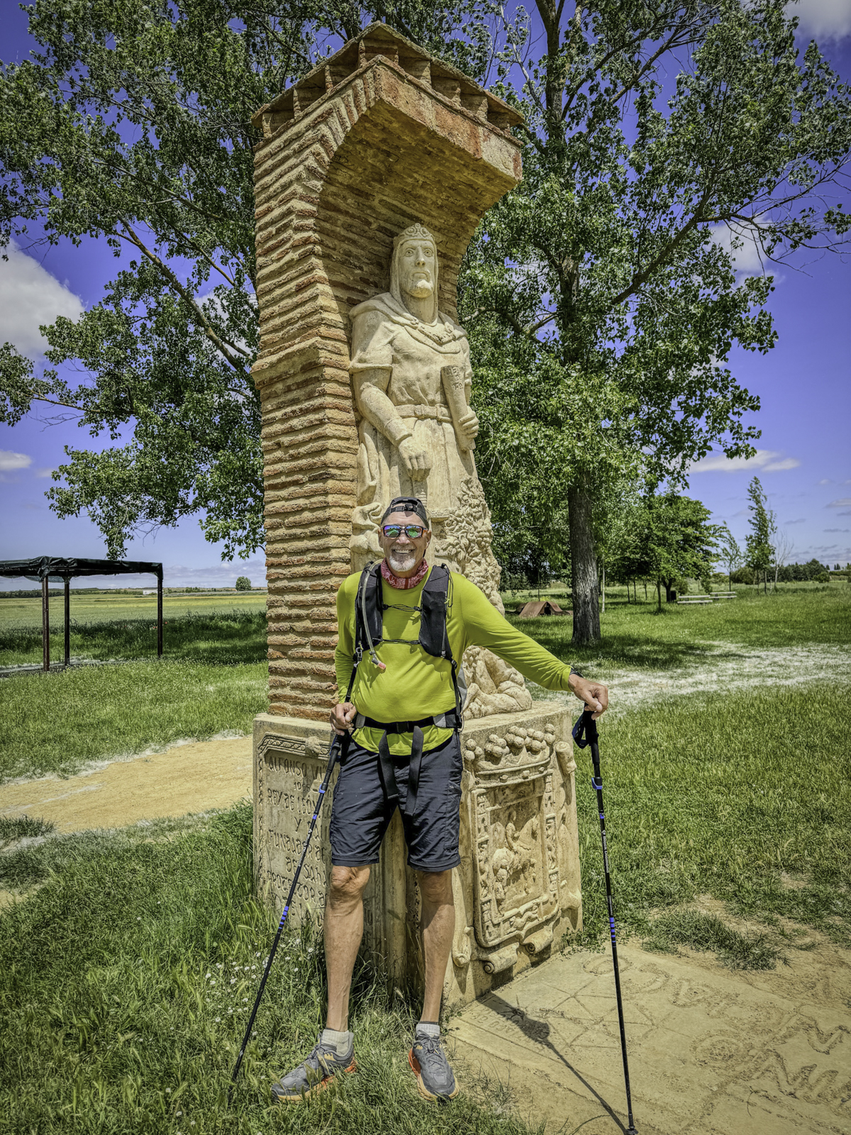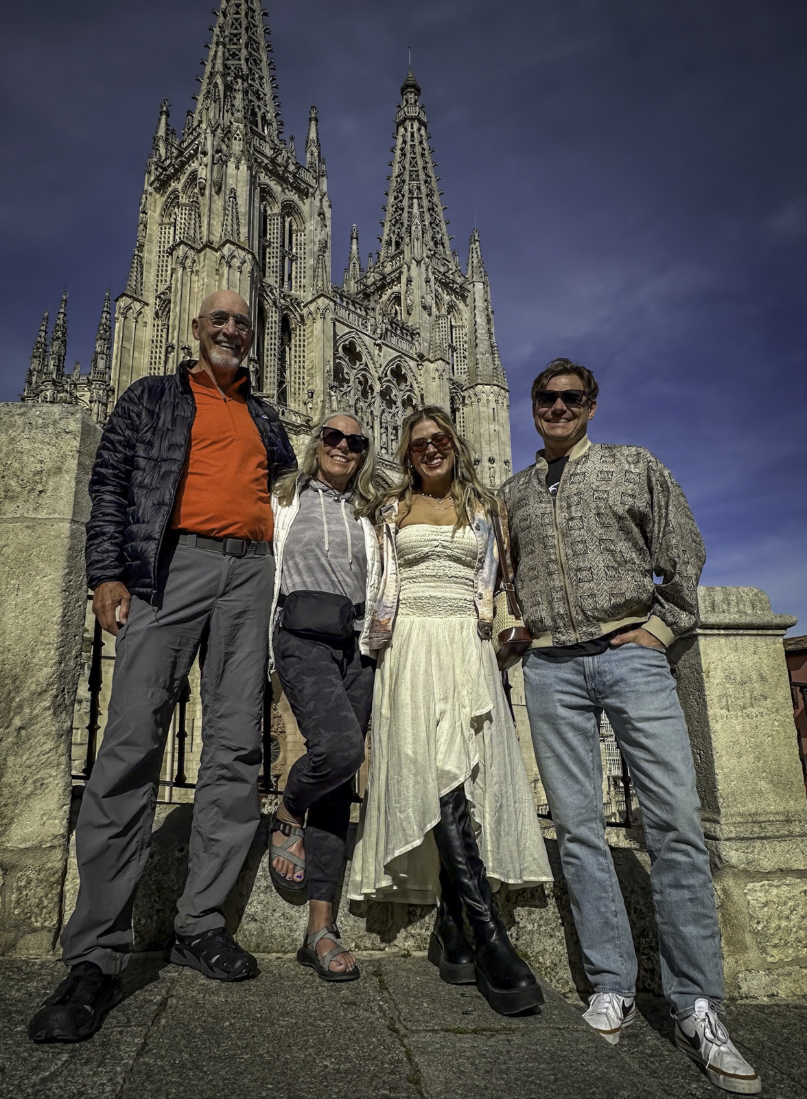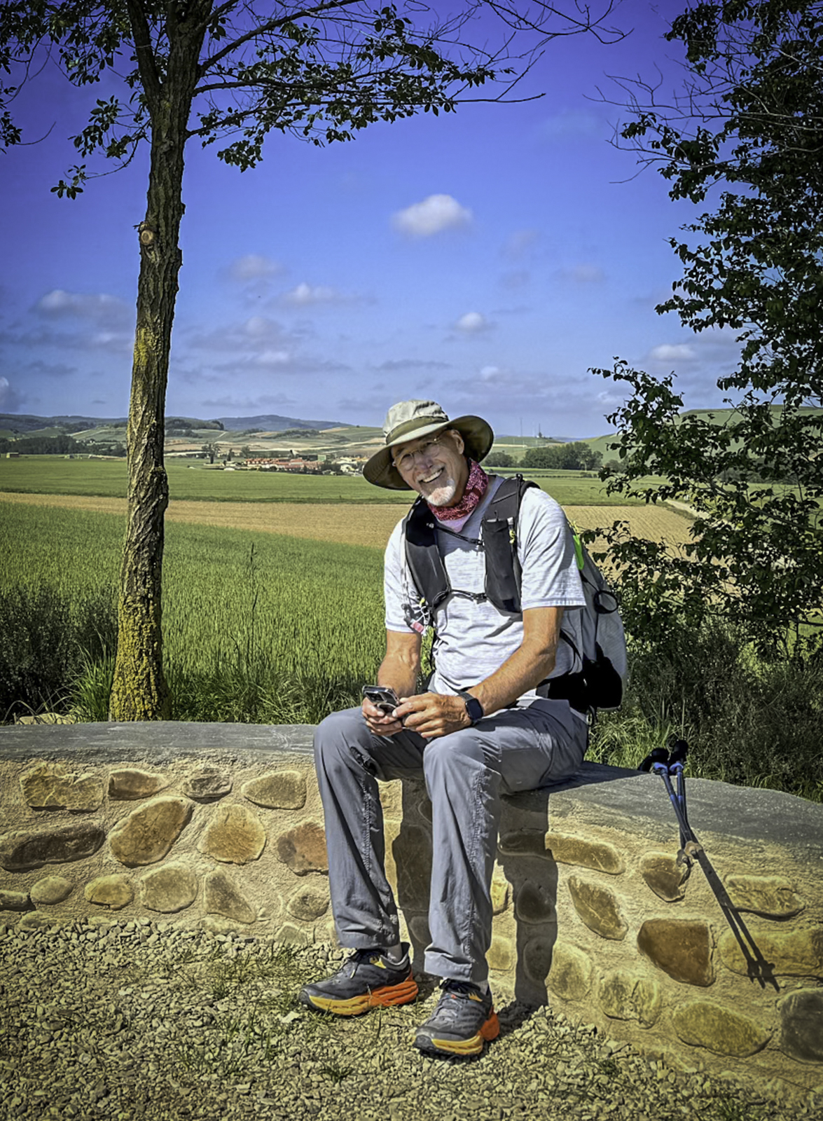 Departing the historic city of Burgos, renowned for its UNESCO-listed Gothic cathedral and rich medieval heritage, we stepped into the vast expanses of the Meseta. This high plateau, often called the “breadbasket of Spain,” is characterized by its endless wheat fields, gently rolling terrain, and expansive skies. Joining us for this leg were our son Eric and his fiancée Laura, adding a joyful and familial element to our journey.