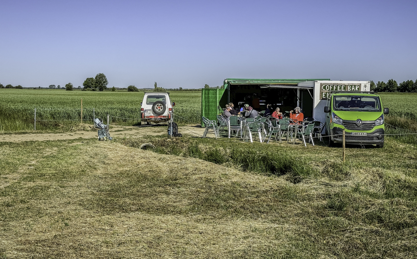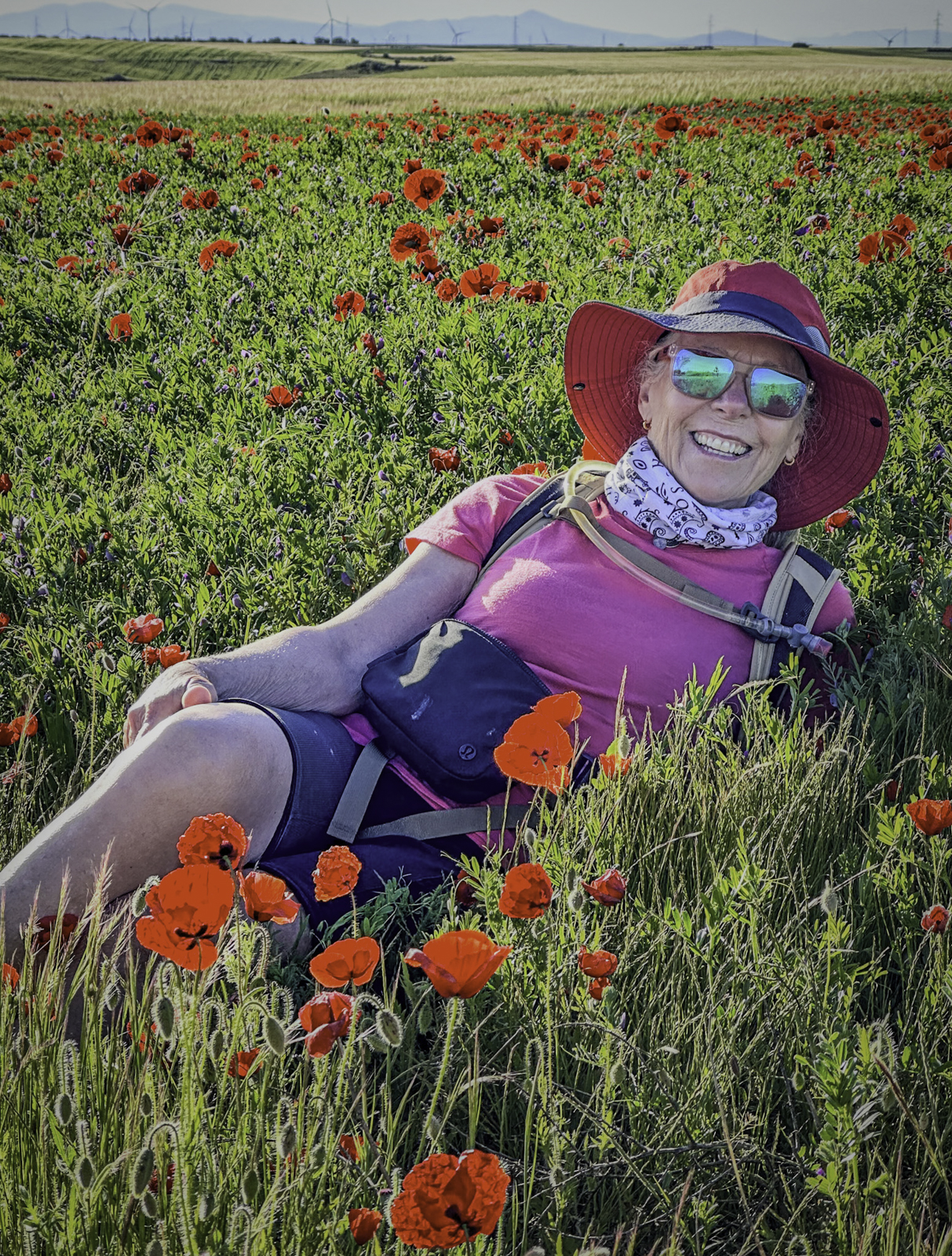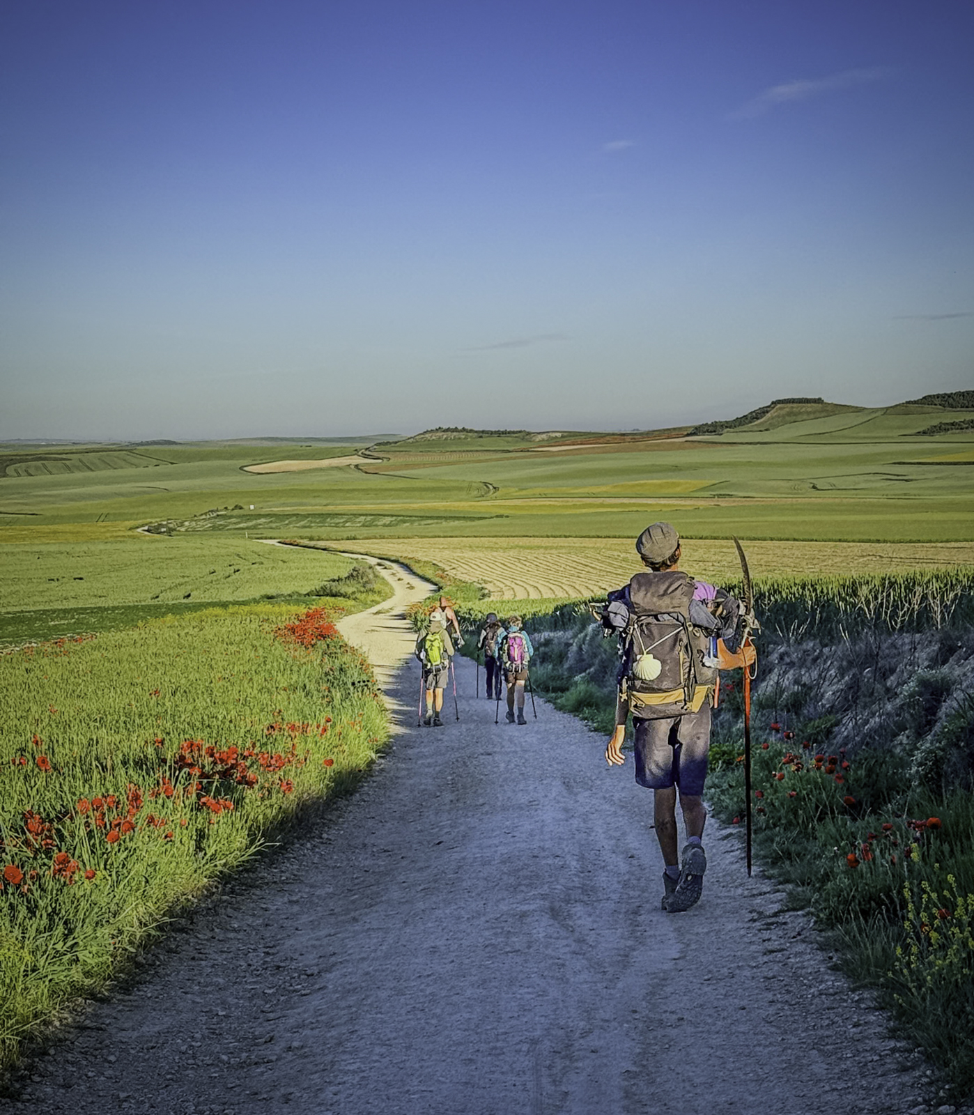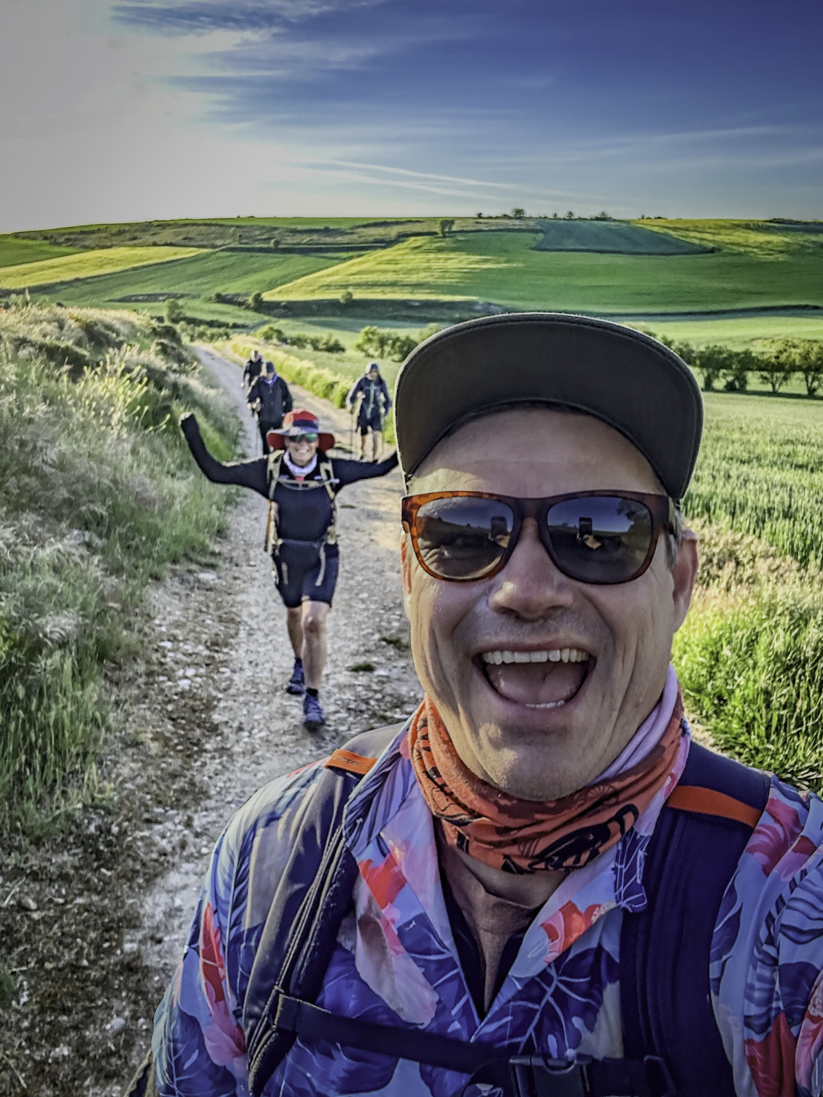 Departing the historic city of Burgos, renowned for its UNESCO-listed Gothic cathedral and rich medieval heritage, we stepped into the vast expanses of the Meseta. This high plateau, often called the “breadbasket of Spain,” is characterized by its endless wheat fields, gently rolling terrain, and expansive skies. Joining us for this leg were our son Eric and his fiancée Laura, adding a joyful and familial element to our journey.