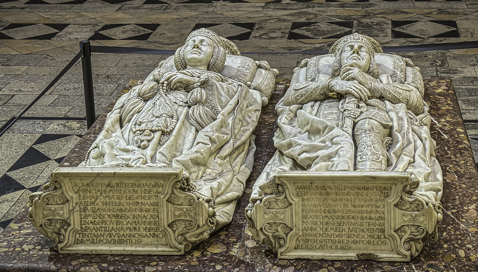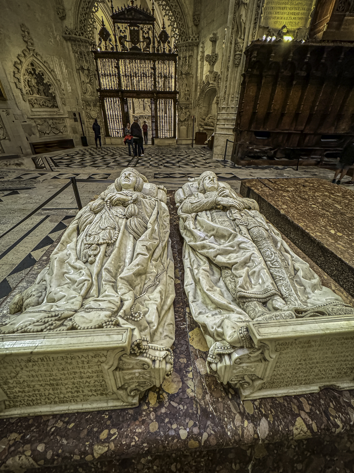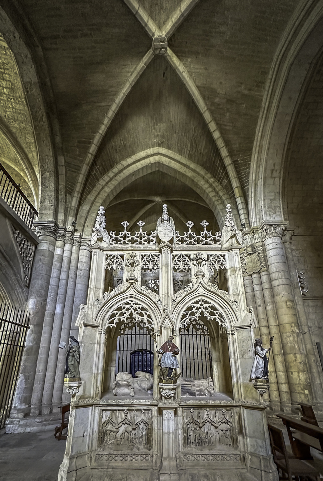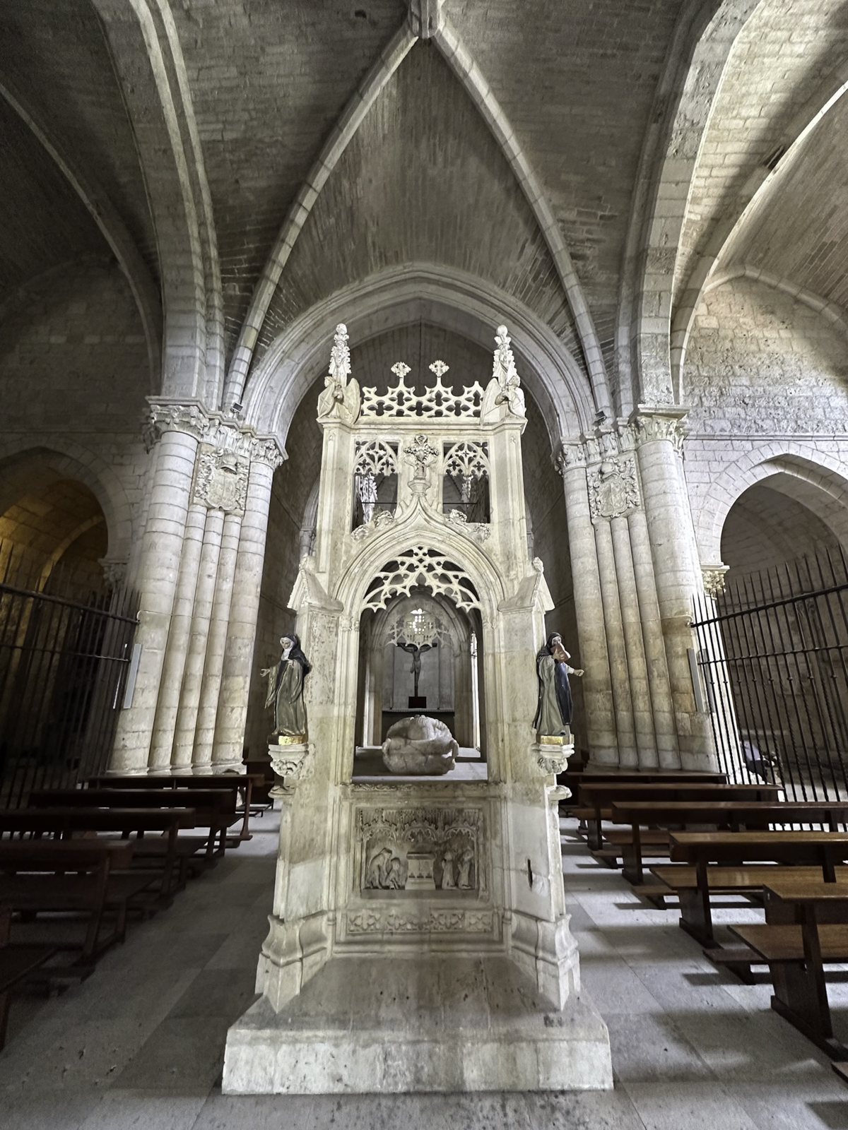 The cathedral’s interior is equally impressive, with an array of chapels, altarpieces, and tombs. One of the most notable chapels is the Chapel of the Constables, also known as the Chapel of the Purification, constructed between 1482 and 1496, a prime example of the late Gothic style, designed by Simón de Colonia, is one of the jewels of Burgos Cathedral. The Constable of Castile, Pedro Fernandez de Verlasco, and his wife, Mencia de Mendoza, were buried here. Philip of Burgundy in 1534 carved their tombs from Carrara marble. The cathedral also houses the tomb of the famous Spanish hero El Cid (Rodrigo Díaz de Vivar) and his wife, Doña Jimena.