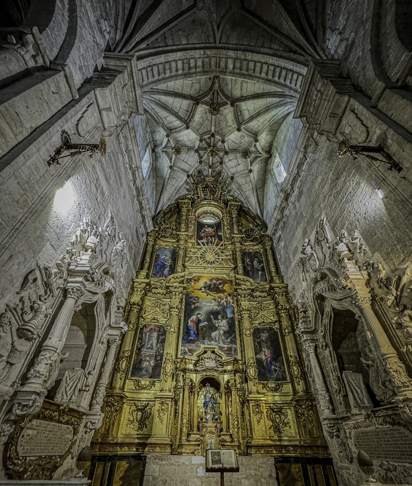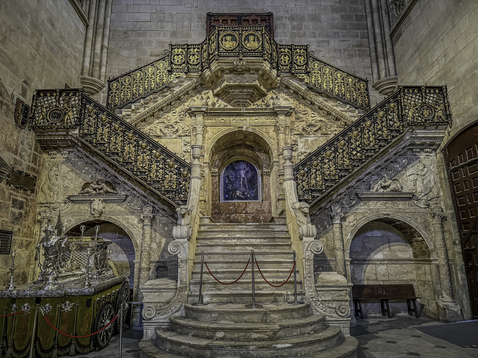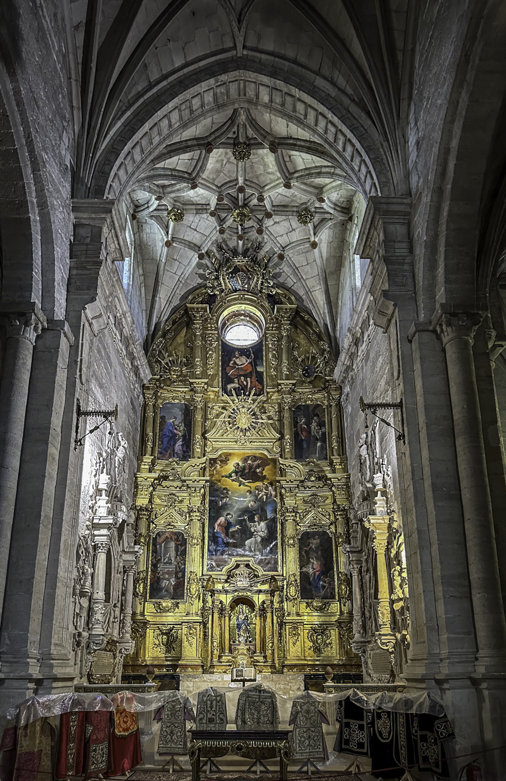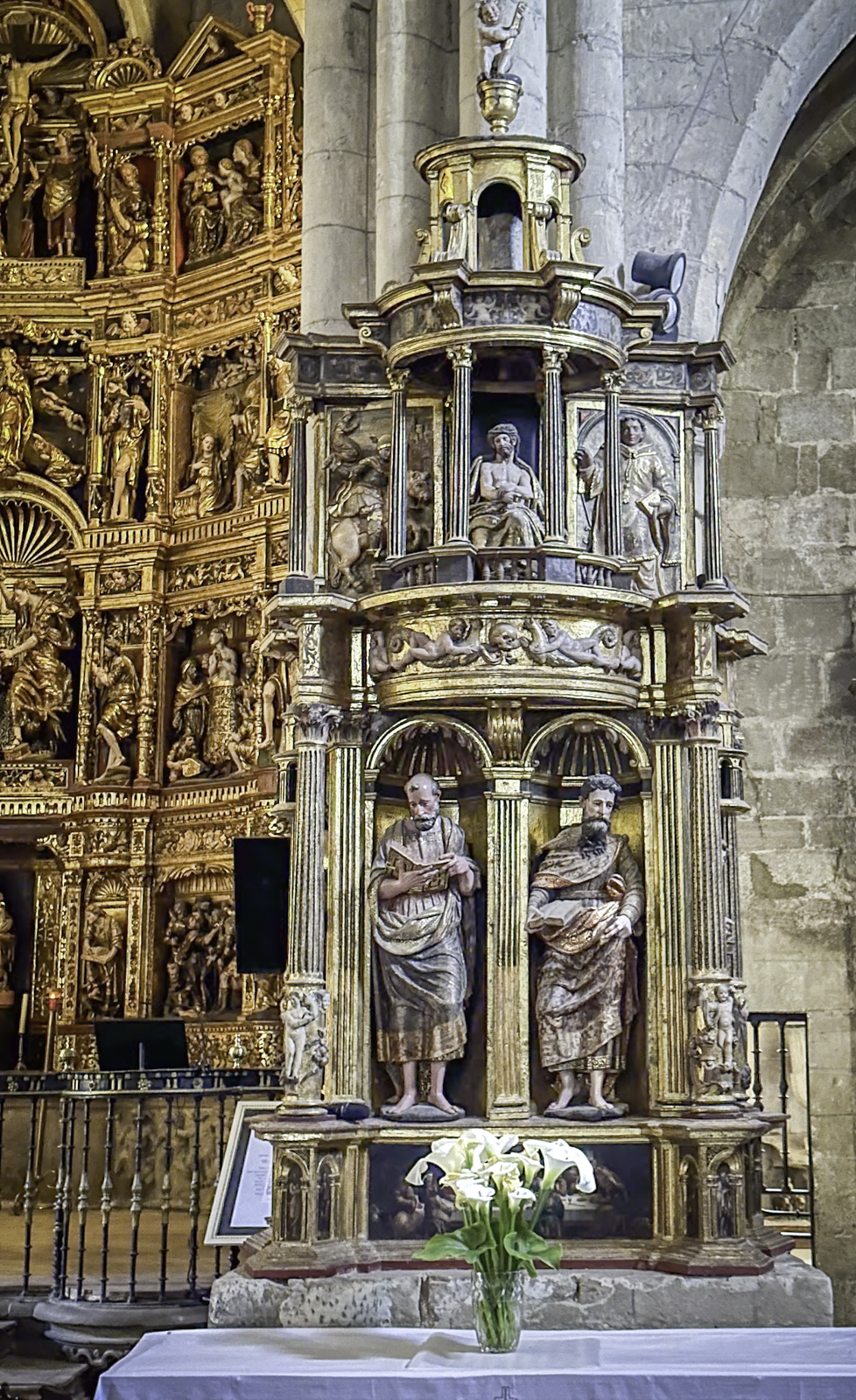 The cathedral’s interior is equally impressive, with an array of chapels, altarpieces, and tombs. One of the most notable chapels is the Chapel of the Constables, also known as the Chapel of the Purification, constructed between 1482 and 1496, a prime example of the late Gothic style, designed by Simón de Colonia, is one of the jewels of Burgos Cathedral. The Constable of Castile, Pedro Fernandez de Verlasco, and his wife, Mencia de Mendoza, were buried here. Philip of Burgundy in 1534 carved their tombs from Carrara marble. The cathedral also houses the tomb of the famous Spanish hero El Cid (Rodrigo Díaz de Vivar) and his wife, Doña Jimena.