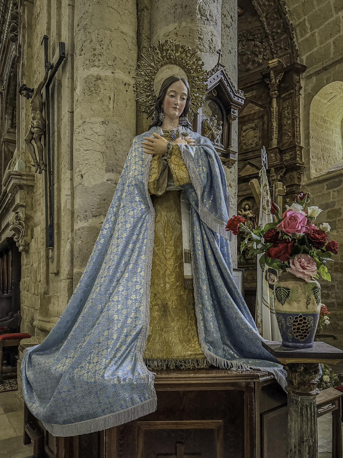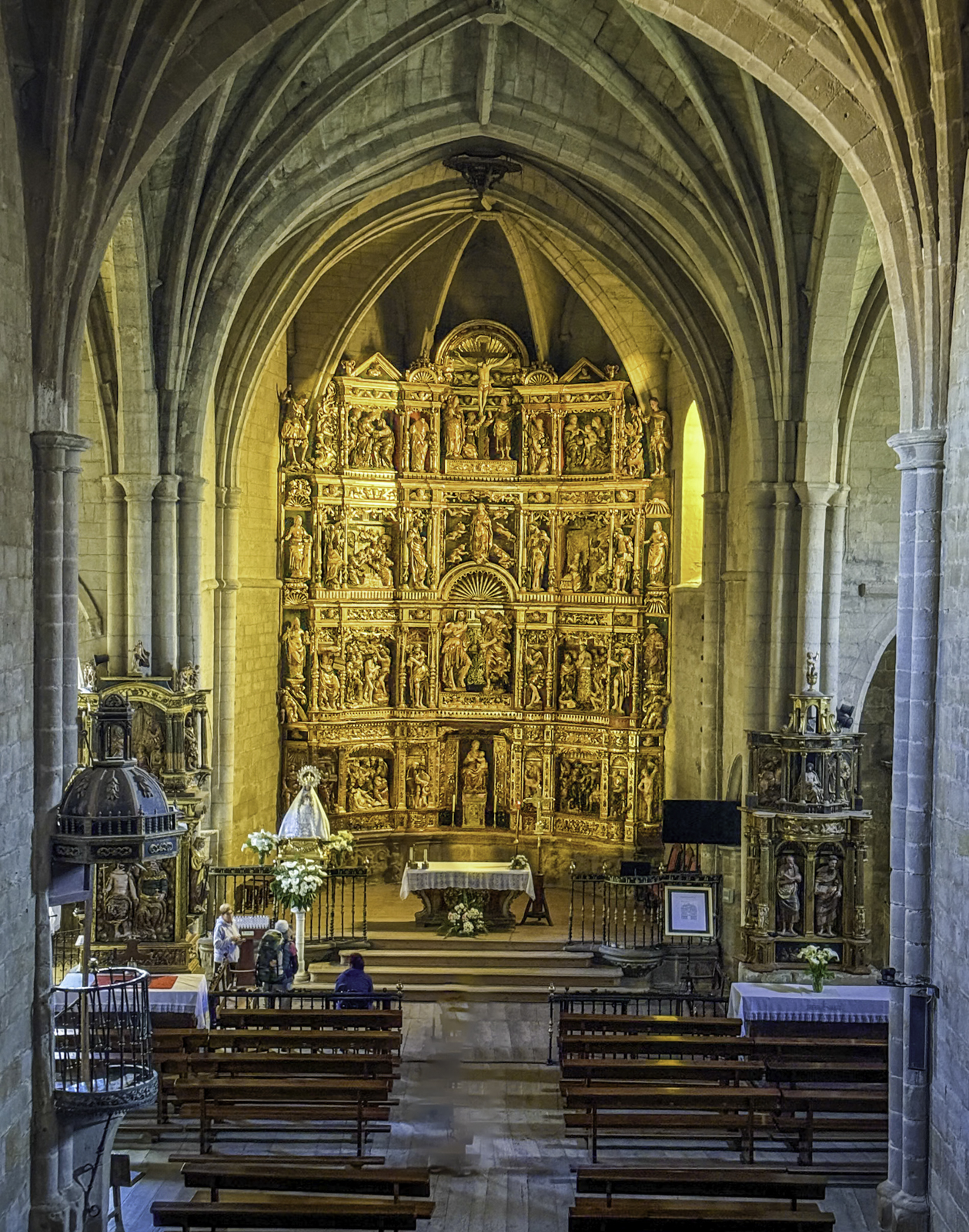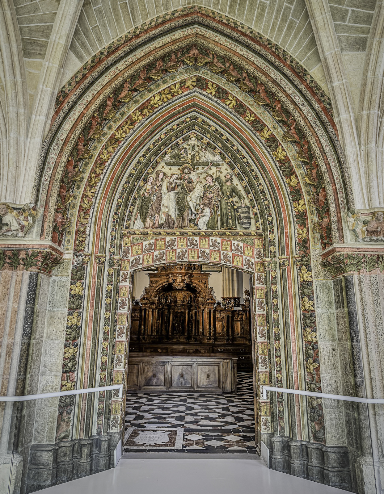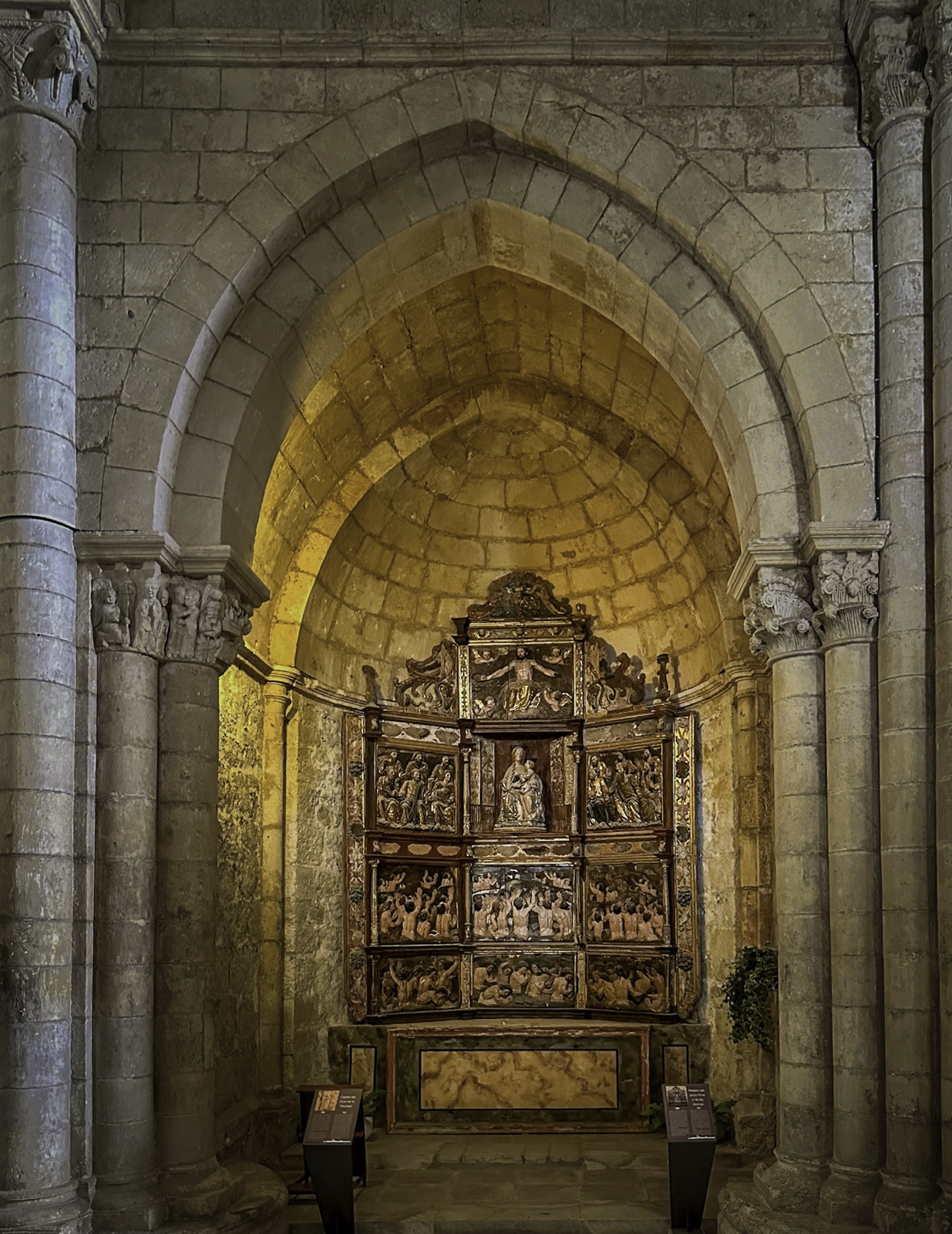 The cathedral’s interior is equally impressive, with an array of chapels, altarpieces, and tombs. One of the most notable chapels is the Chapel of the Constables, also known as the Chapel of the Purification, constructed between 1482 and 1496, a prime example of the late Gothic style, designed by Simón de Colonia, is one of the jewels of Burgos Cathedral. The Constable of Castile, Pedro Fernandez de Verlasco, and his wife, Mencia de Mendoza, were buried here. Philip of Burgundy in 1534 carved their tombs from Carrara marble. The cathedral also houses the tomb of the famous Spanish hero El Cid (Rodrigo Díaz de Vivar) and his wife, Doña Jimena.