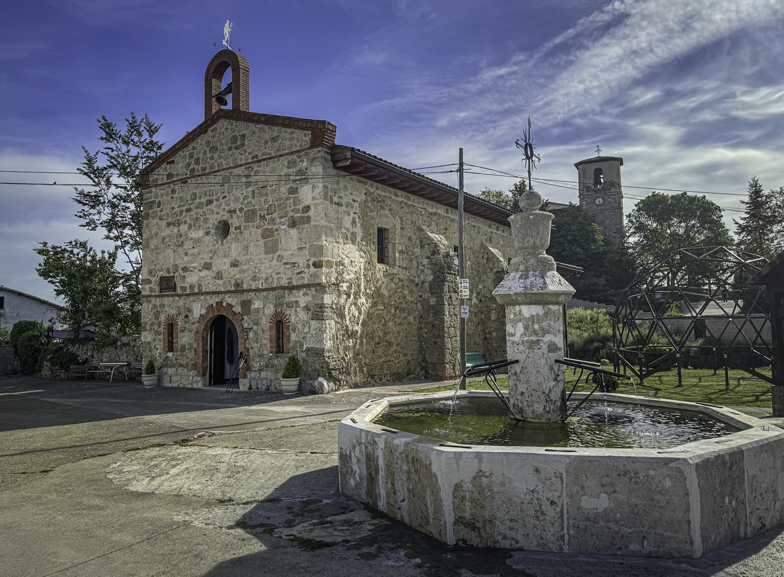 We passed through the village of Villafranca Montes de Oca, historically a key stop for pilgrims, with its 18th-century church and nearby ruins of a medieval hospital. From here, the ascent became steeper, and the trail wound through dense woodland, a contrast to the open farmland of previous days.