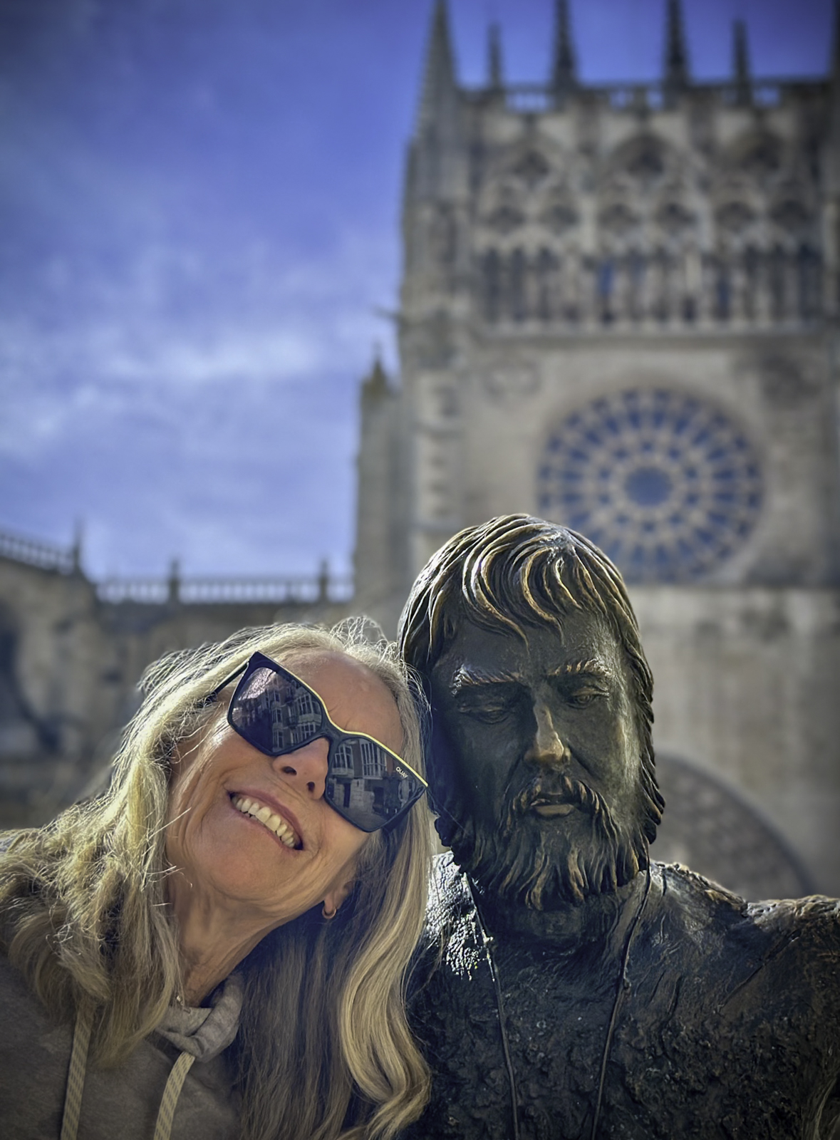 We spent the day at the Cathedral, with a 2 hour audio tour marveling at the 20 different chapels within the Cathedral and the craftsmanship it took to build it. The highlight of our rest day was the arrival in Burgos of our son Eric and his fiancée Laura who were going to spend three days with us. We had a wonderful day exploring Burgos and the amazing cathedral. We finished the day off with a wonderful meal and drinks with Eric and Laura and were joined by our new friends Maggie and Gordon White. Click on thumbnail to view images