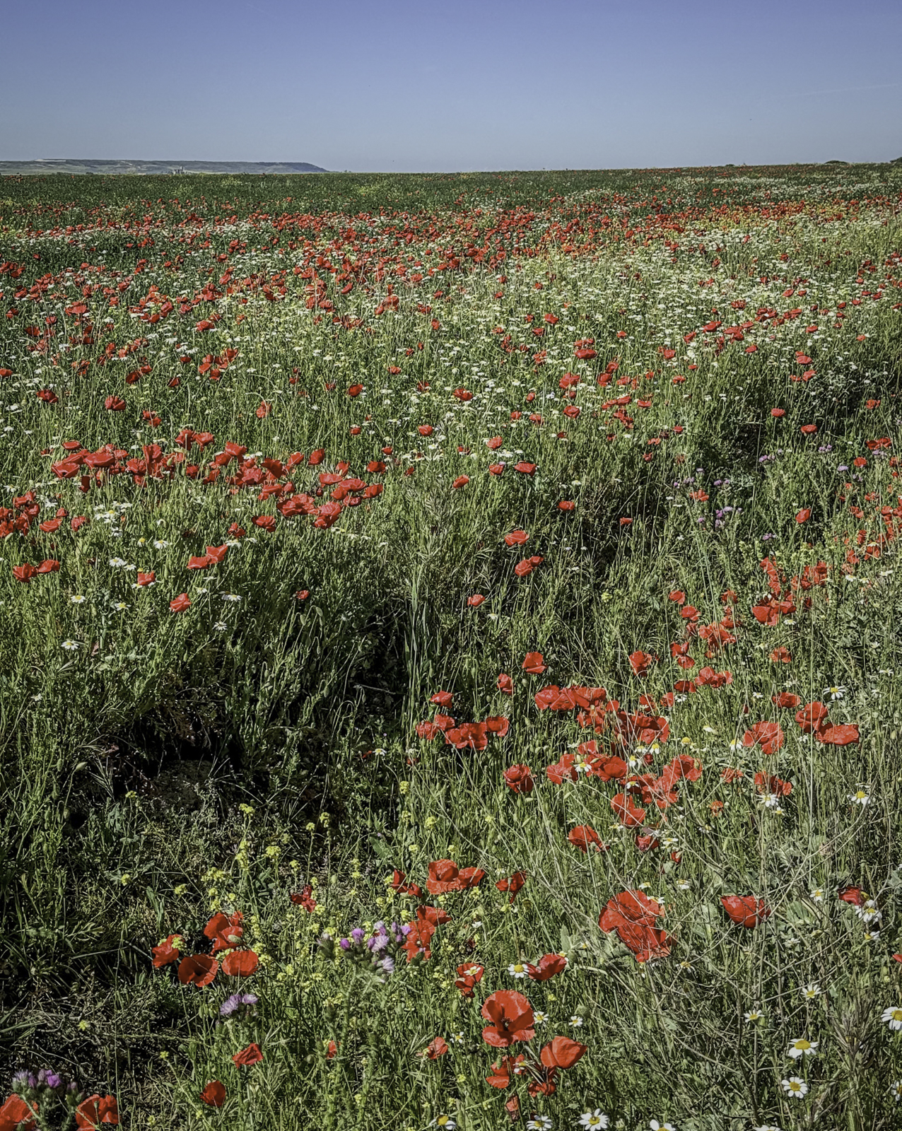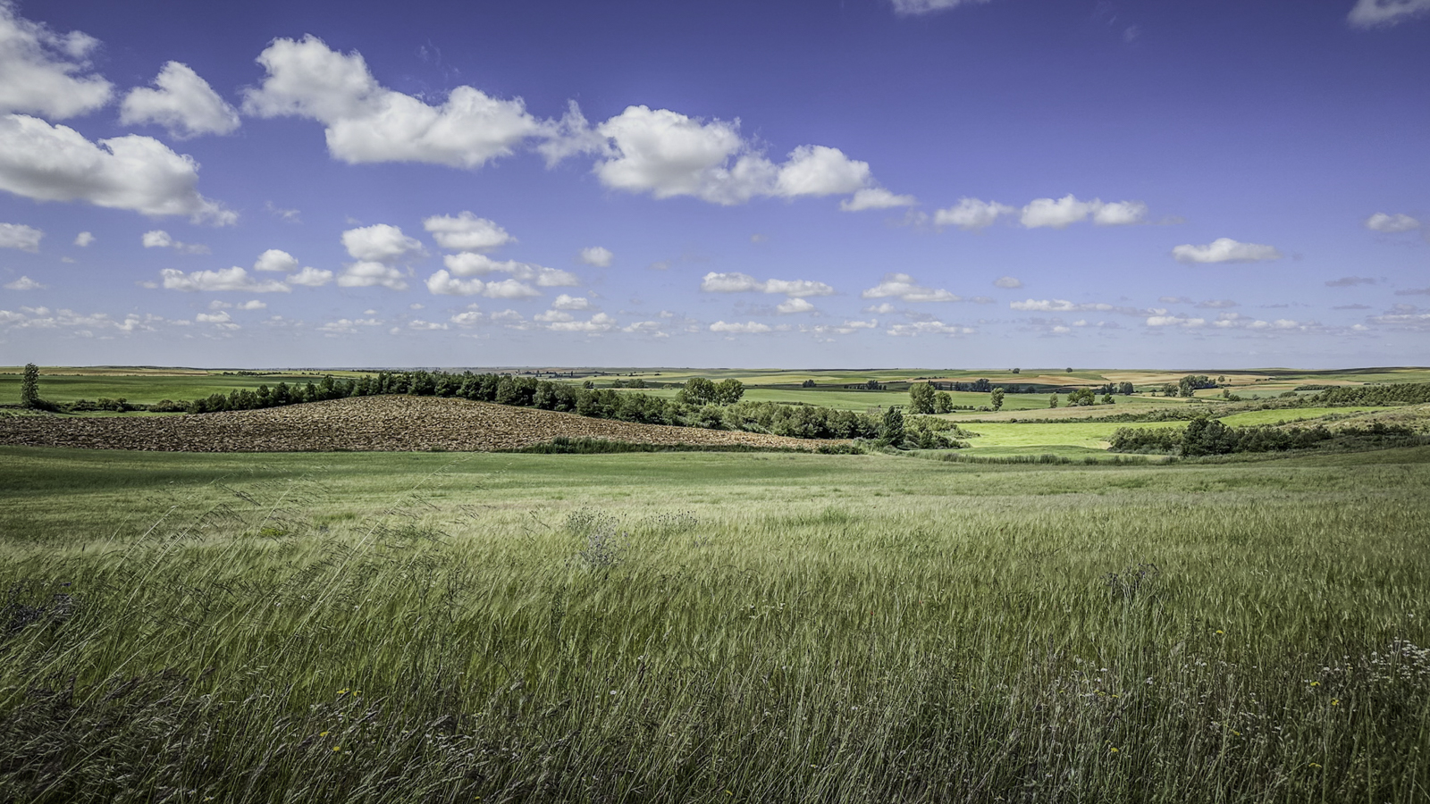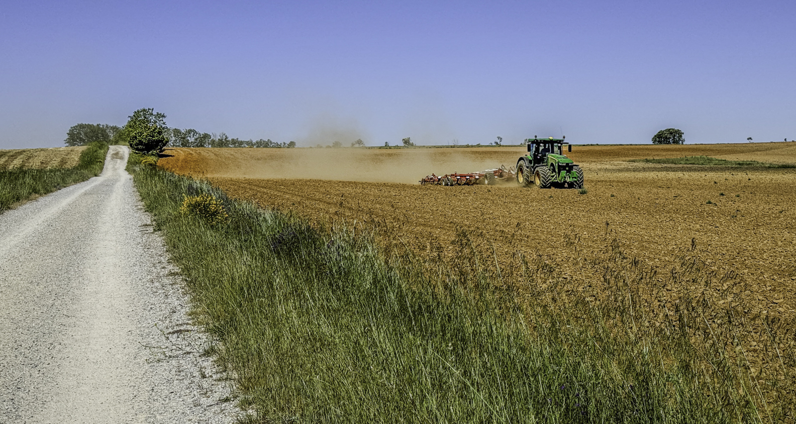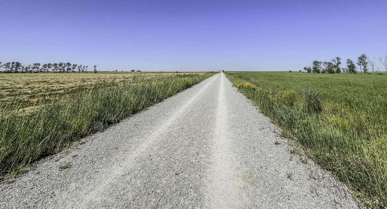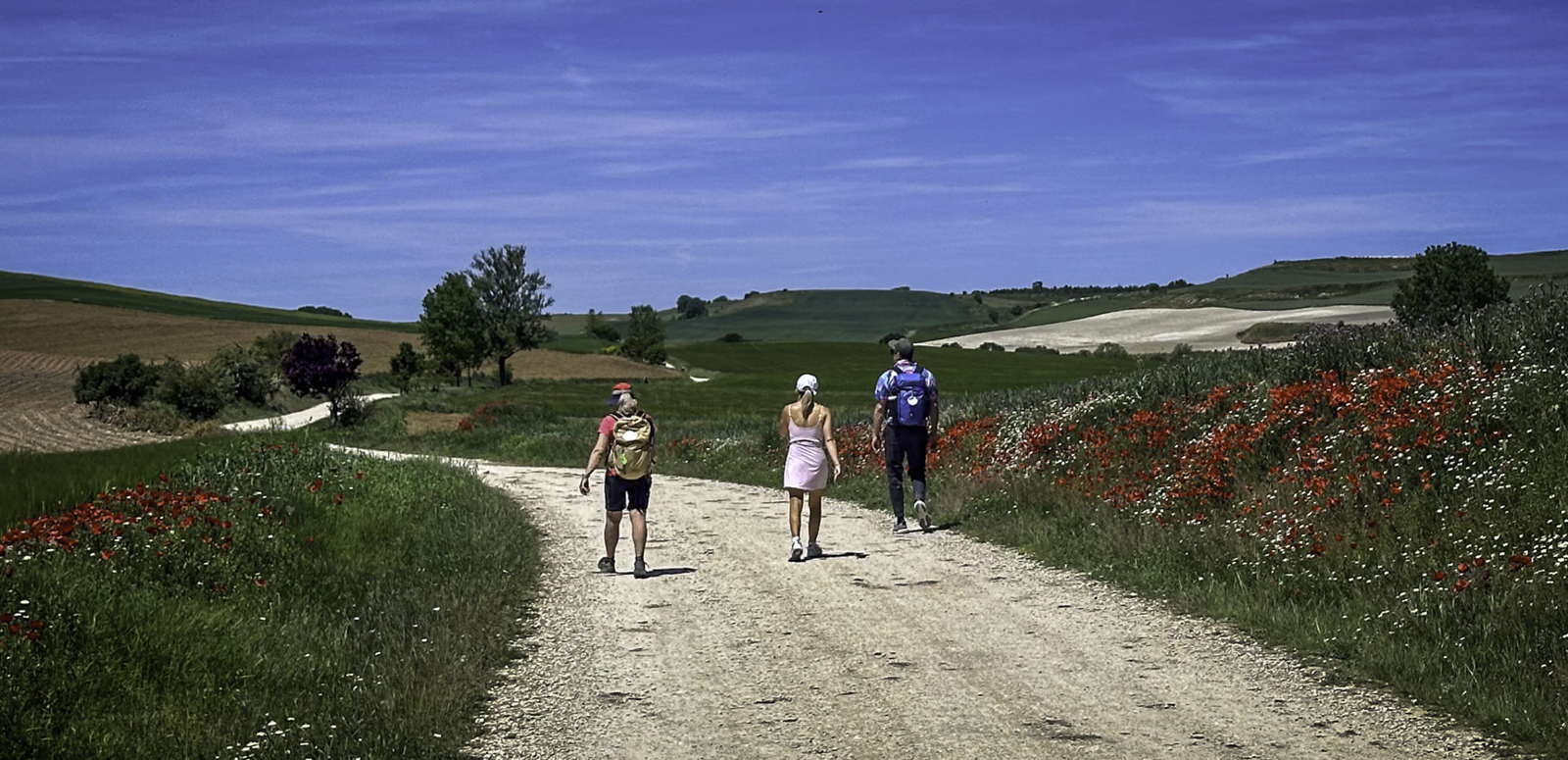 Departing Carrión de los Condes, we entered one of the most isolated stretches of the Camino—17 kilometers of open fields without villages or services. This section, following the remnants of the old Roman road, was a test of endurance, with little shade and an unbroken horizon of wheat fields and dry plains.