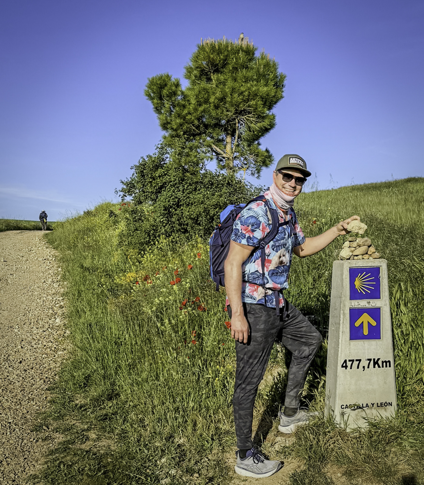 Leaving the quiet village of Calzadilla de la Cueza, we continued along the Camino’s historic Roman road, crossing the flat and arid landscape of the Meseta. The morning was peaceful, with few distractions beyond the rhythmic sound of our steps on the gravel path.