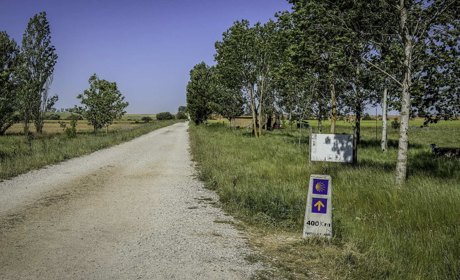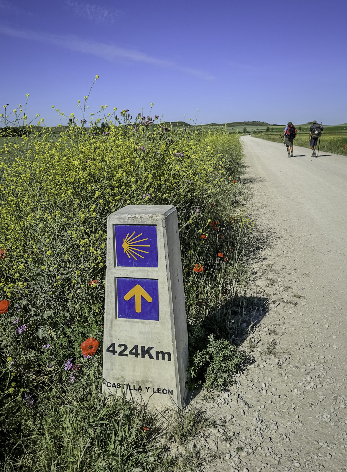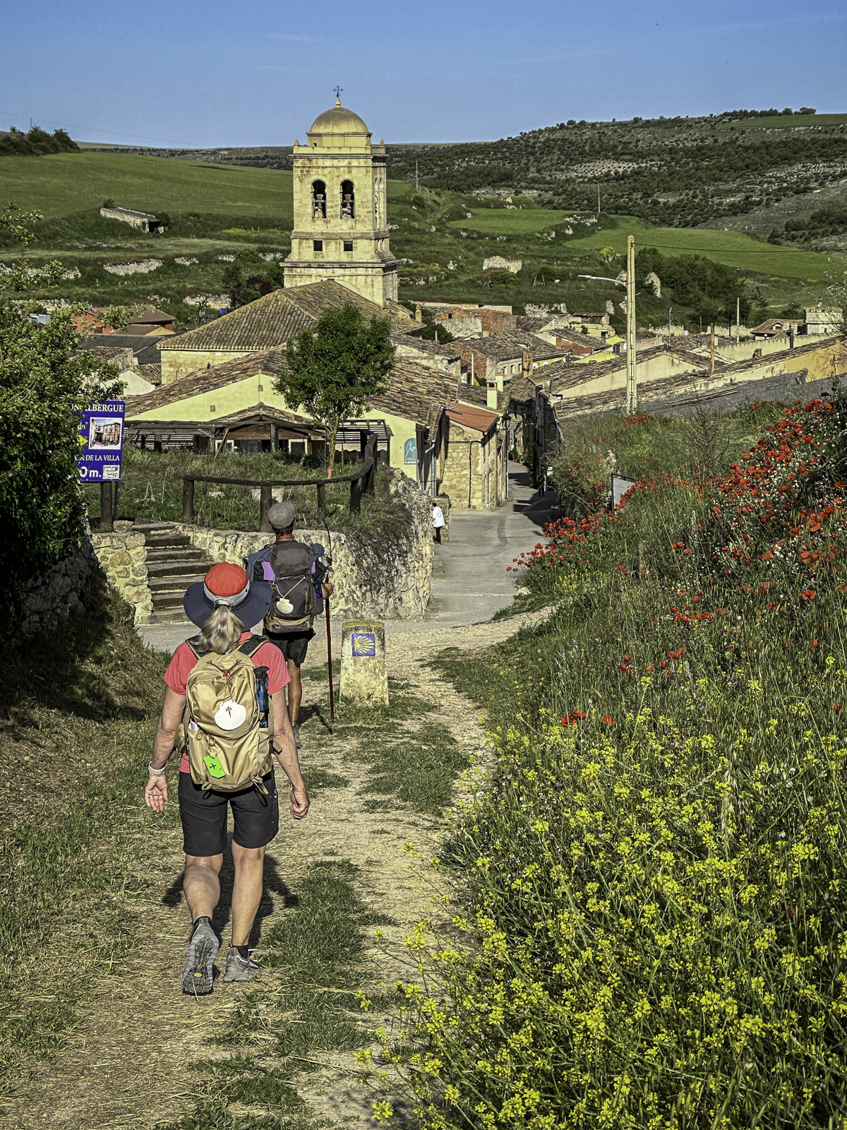 Leaving Frómista, known for its perfectly preserved 11th-century Church of San Martín, we followed the Camino along the historic Tierra de Campos. This region, often called “Spain’s granary,” featured vast wheat fields stretching to the horizon, with a flat and open landscape that made for an easy but repetitive walk.