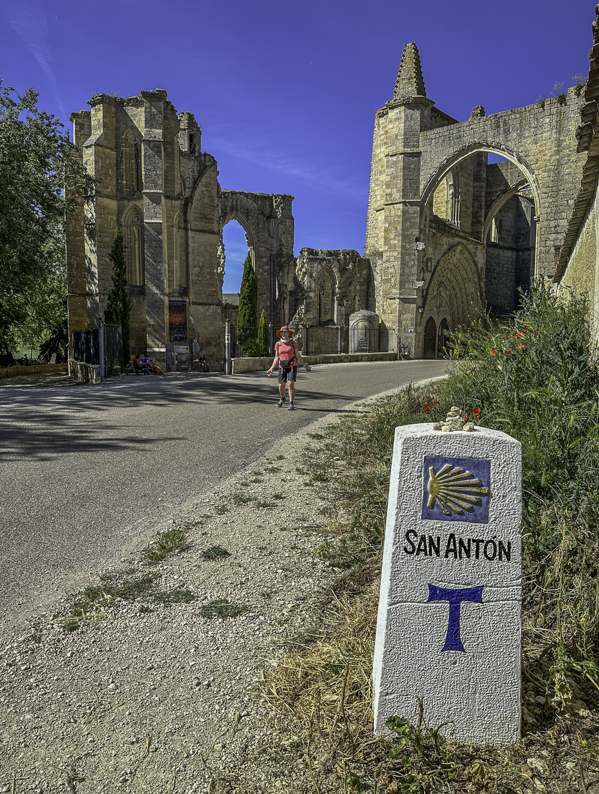 Midway, we passed the ancient ruins of San Anton, a former 14th Century monastery and pilgrim hospital. The stone archways, now partially open to the sky, stand as a reminder of the Camino’s centuries-old history of care and hospitality. Pilgrims in medieval times would walk beneath its impressive archway, where monks provided food and care, particularly for those suffering from ergotism, known as “St. Anthony’s Fire.”