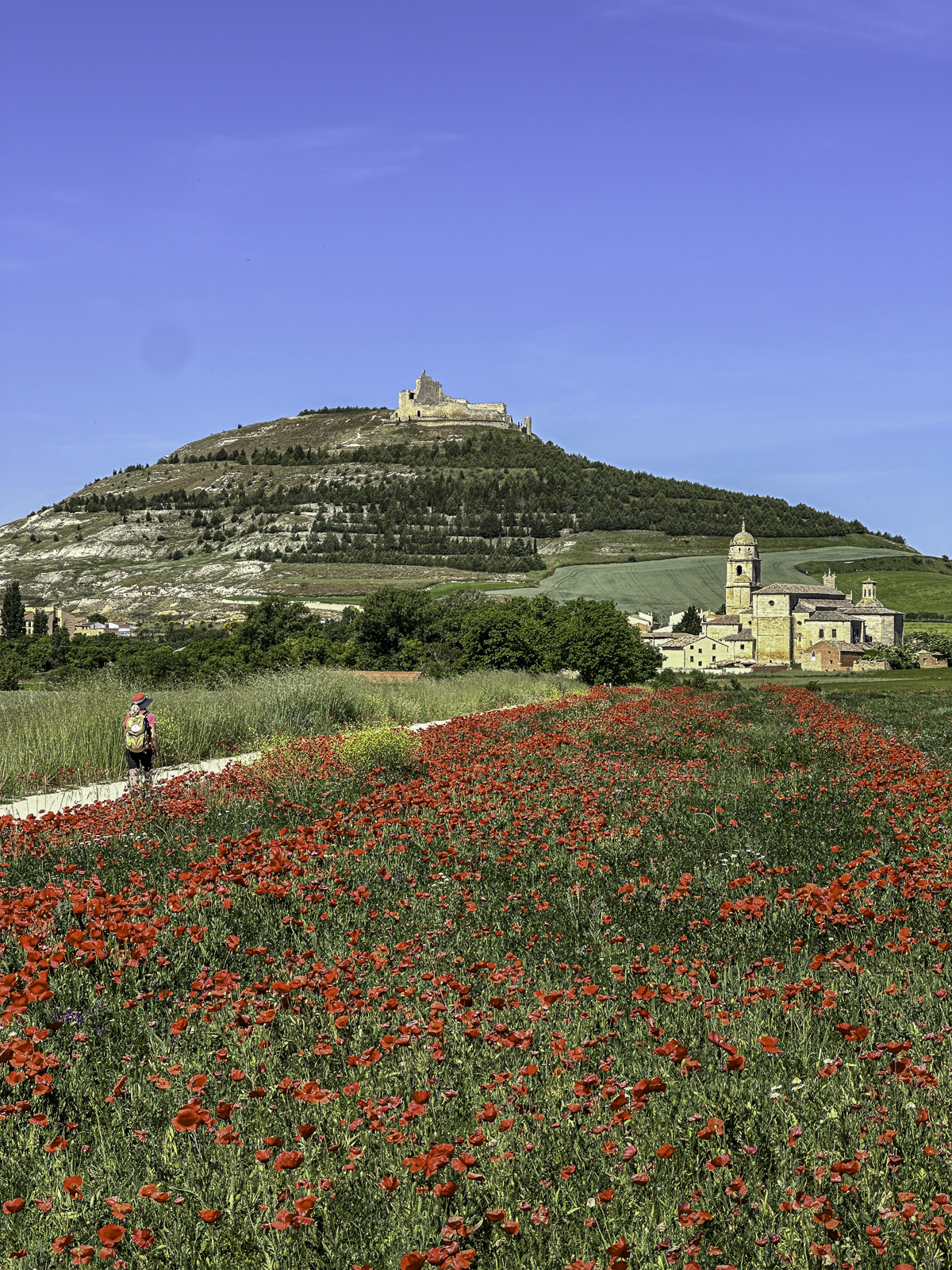 Reaching Castrojeriz, we were greeted by its rich medieval history. Overlooking the town were the ruins of a 9th-century castle, offering a striking silhouette against the sky. Originally a Roman fortification, it later became a Visigoth stronghold and was expanded during the Reconquista as part of Spain’s defense against Moorish invasions. The castle has witnessed centuries of history, from battles to pilgrim protection, and offers panoramic views of the surrounding countryside.