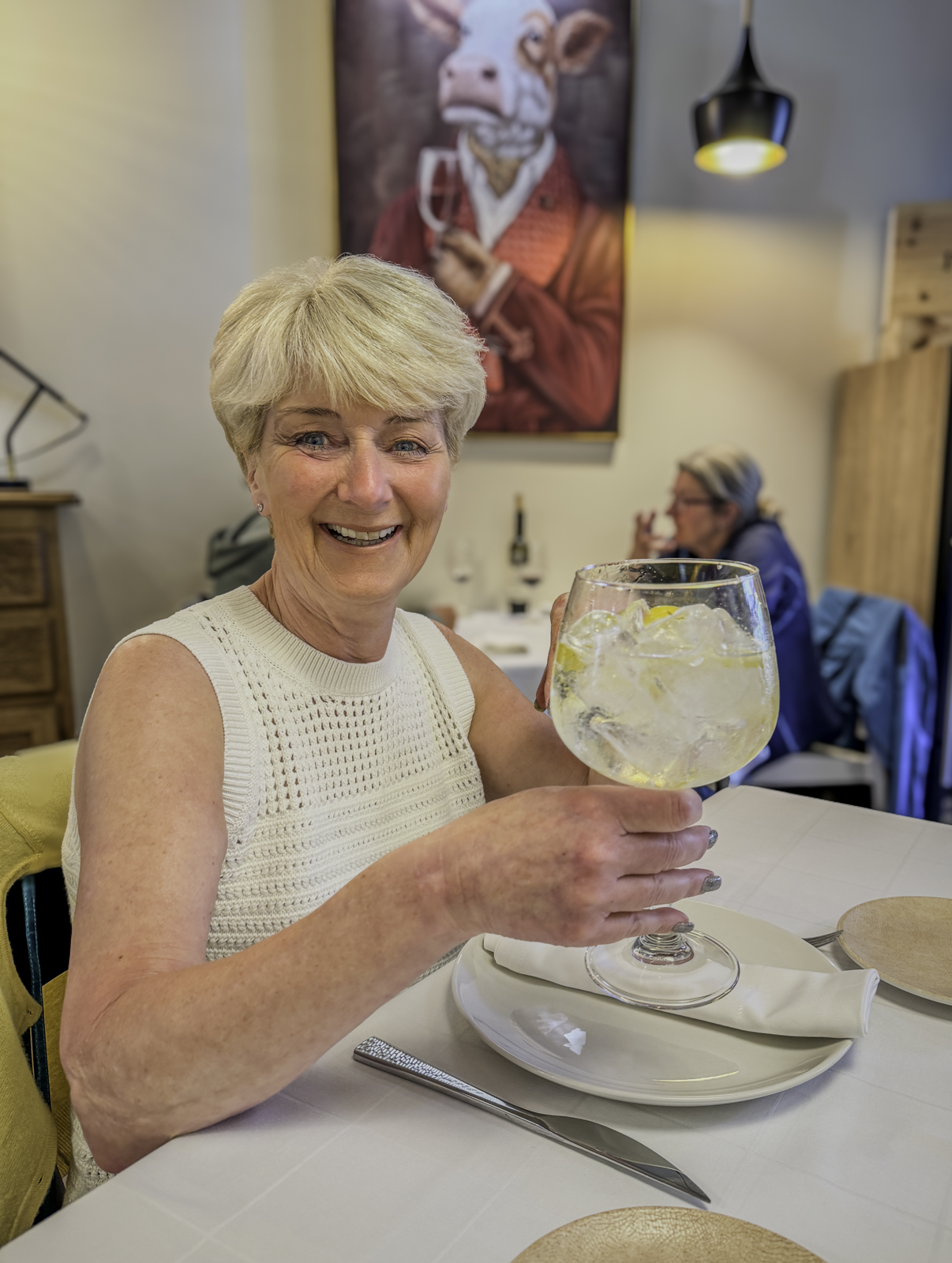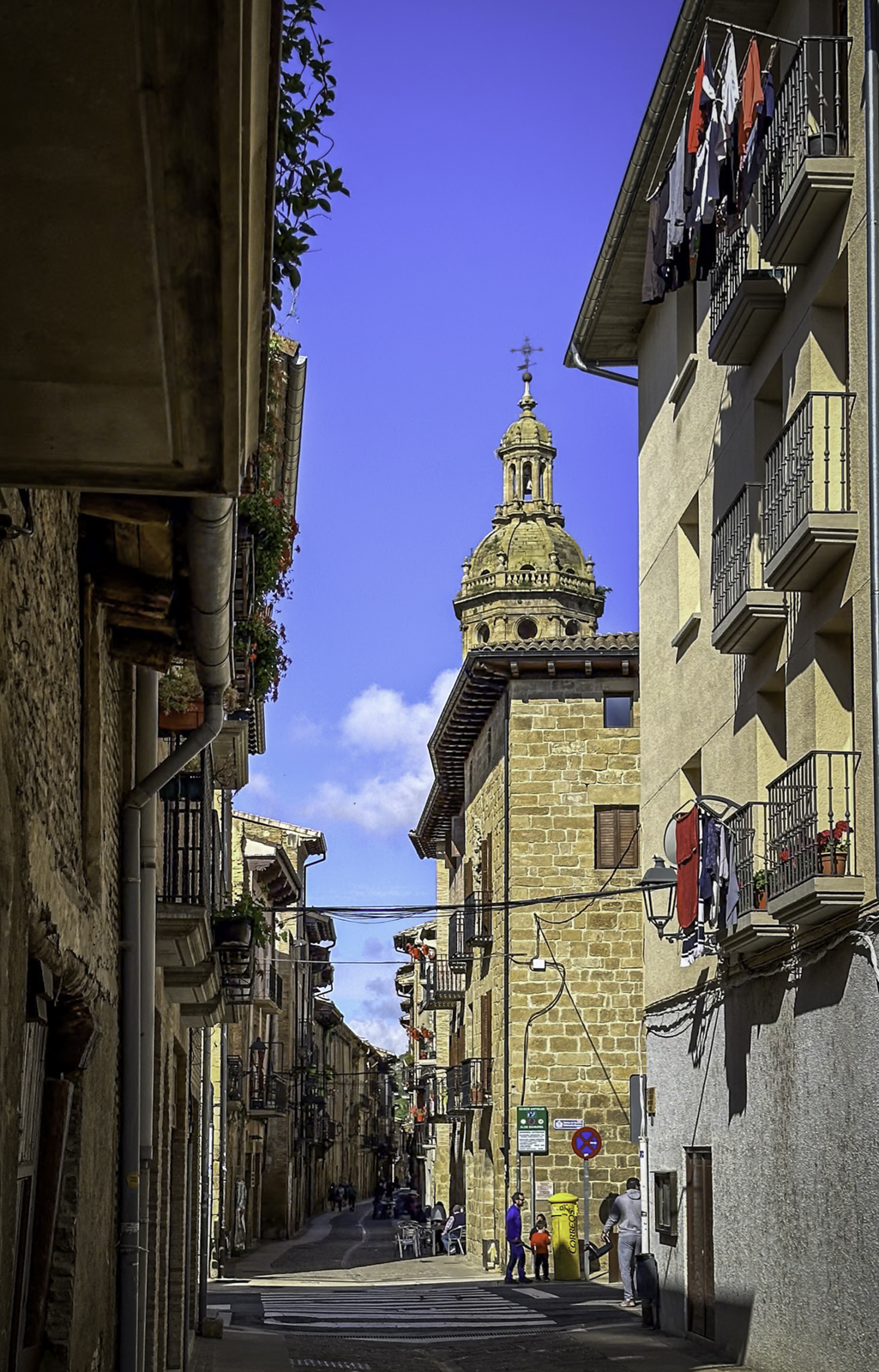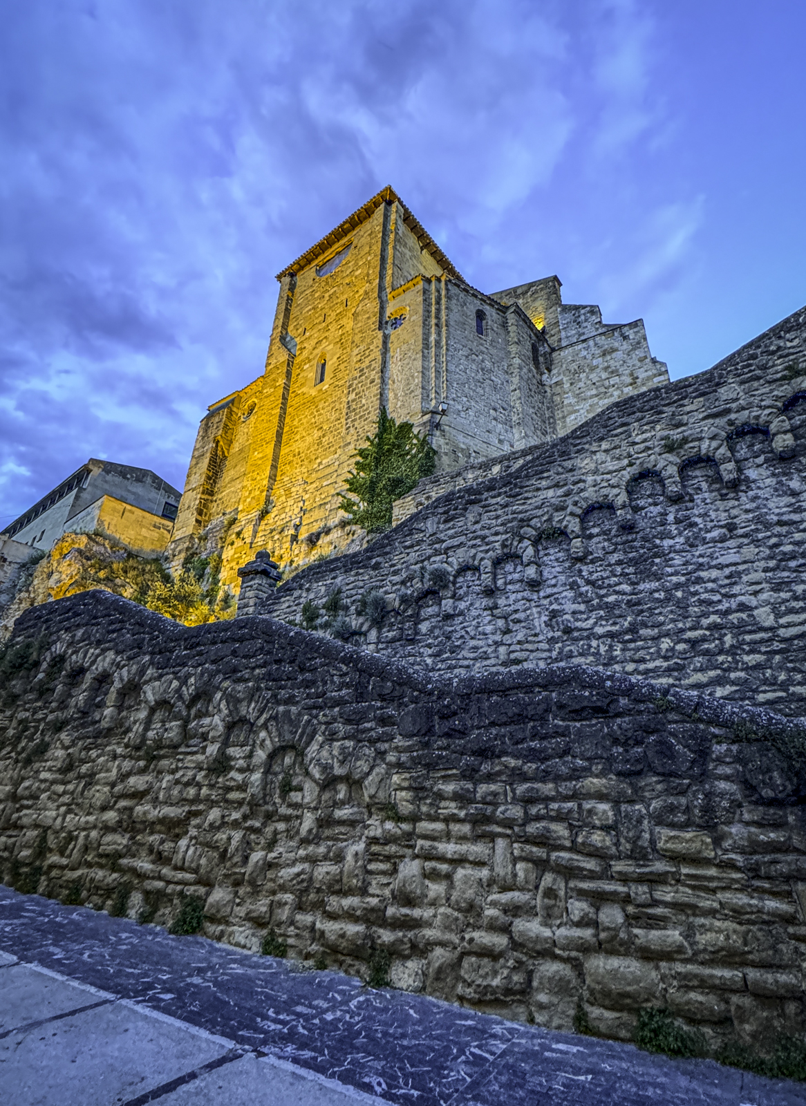 We stopped for lunch in the quaint village of Lorca and enjoyed a fabulous bowl of lentil soup. Arriving in Estella, our destination, we passed by the Church of the Holy Sepulchre, one of the oldest parish churches in the village. Iglesia del Santo Sepulcro is a striking example of Gothic architecture, the church dates back to the 12th and 13th centuries. The most remarkable part of the church is its elaborately sculpted Gothic facade, that features a series of beautifully detailed carvings, depicting biblical scenes such as the Last Judgement and various saints. The figures are life-like and dynamic, showcasing the craftsmanship of the time. We could not go inside the church as it is no longer in use for regular worship. We continued to our destination for the night, the town of Estella, known as Estella-Lizarra in Basque, a historic and vibrant town, founded in 1090 by King Sancho Ramirez of Navarre to serve the growing number of pilgrims traveling to Santiago de Compostela. The town’s layout is picturesque, with cobblestone streets, medieval bridges, and well-preserved buildings that give it a charming, old-world feel. We made our way to the Hotel Maisoneuve in the heart of the historic town. After settling in to our room we went out for dinner with Maggie and Gordon to a quaint restaurant on the river. Click on thumbnail to view images