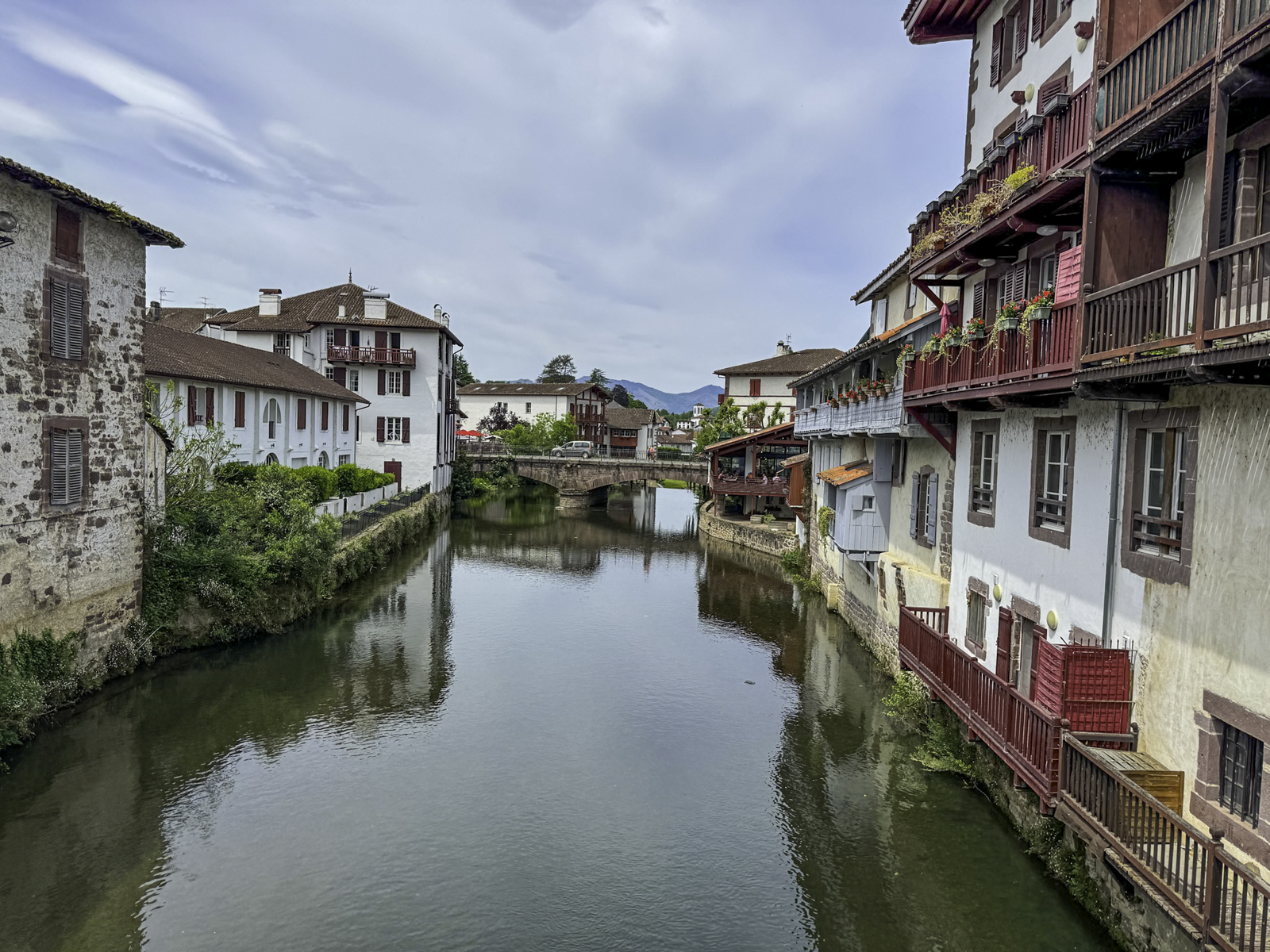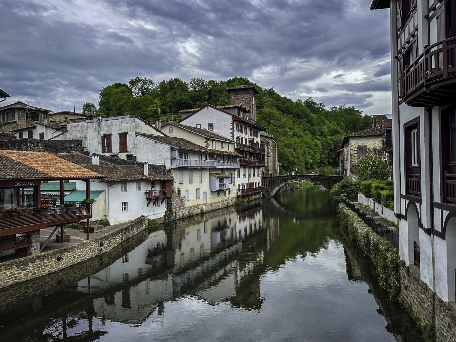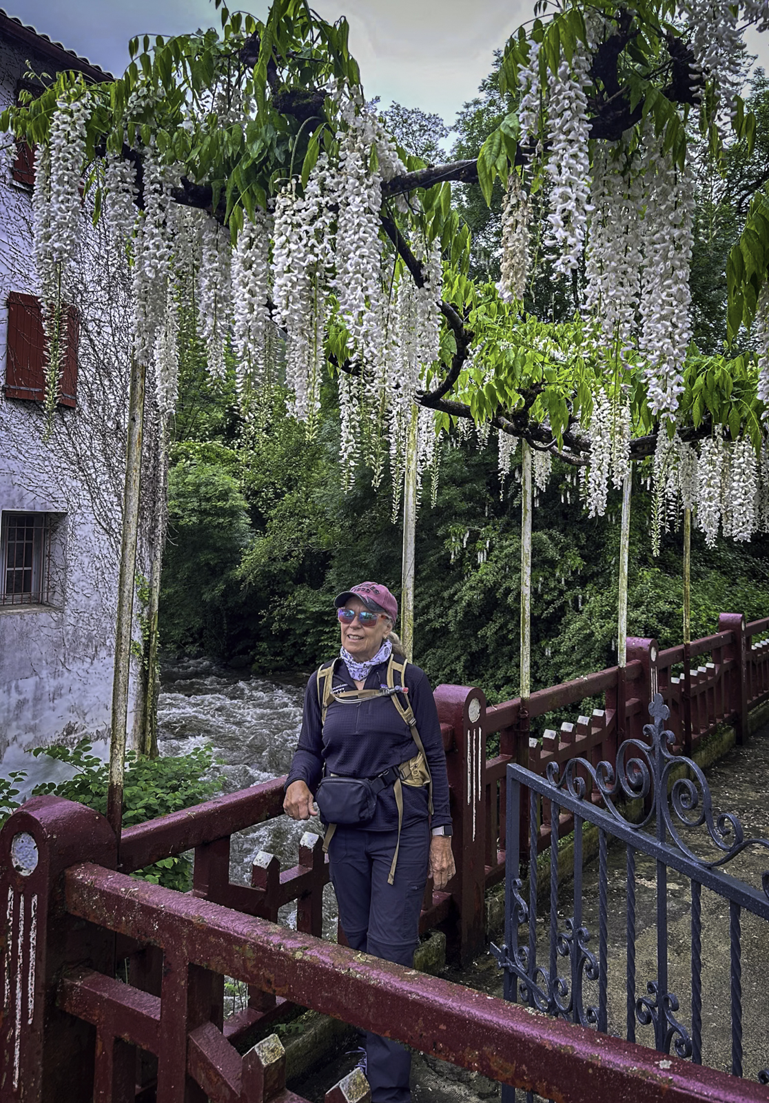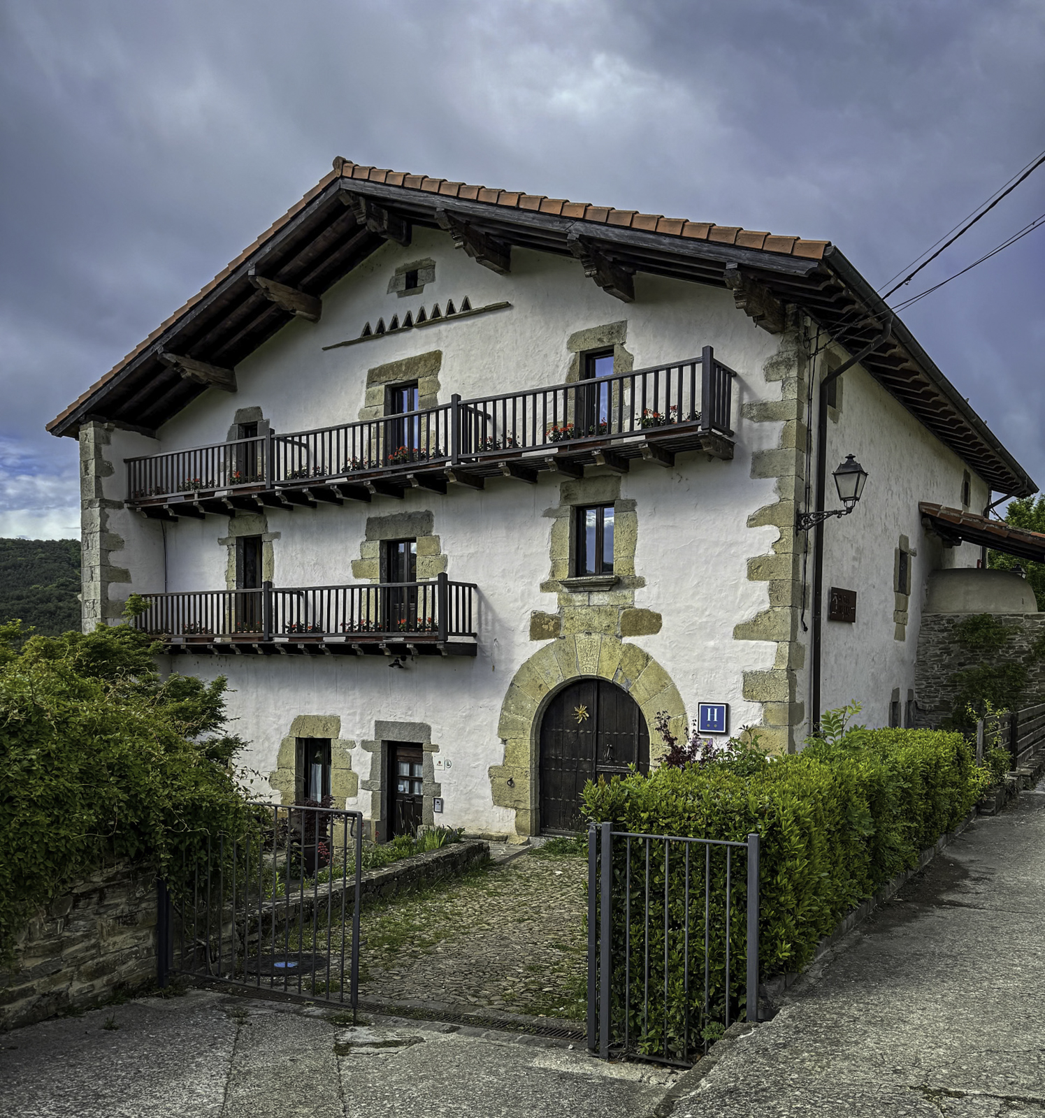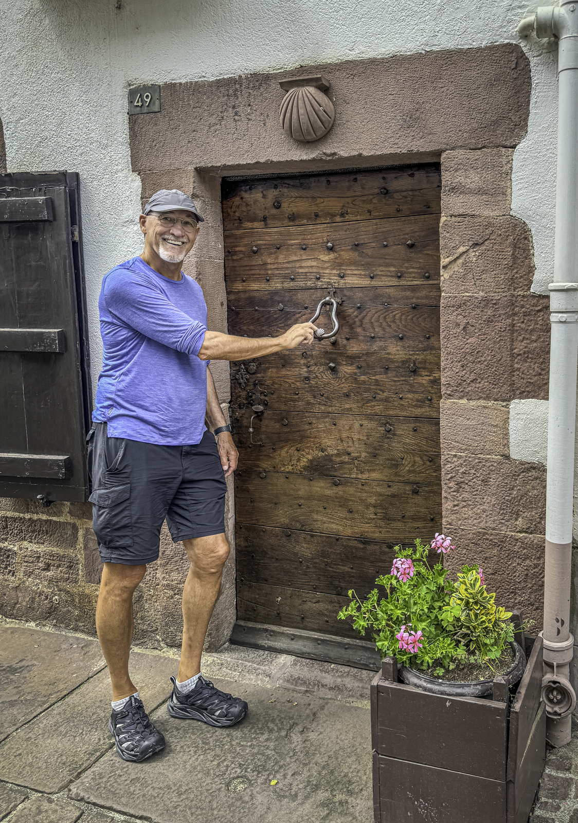 We still gained significant elevation as we ascended into the woods, but it’s more gradual compared to the more rigorous high route. Along the way, we passed small chapels and shrines, and views of the Pyrenean peaks rising above the valleys through the mist. Upon reaching Roncevalles, we were greeted by the historic monastery, a significant landmark for pilgrims, where we stopped to get our passports stamped. Since the Middle Ages, this collegiate church of Santa Maria de Orreaga/Roncevalles has been a resting place for Pilgrims along the French Way path. We were transported (3 km) to our accommodation tonight at Hotel Rural Loizu in Burguete. This hotel blends modern amenities with the charm of traditional Basque architecture, offering a cozy, restful environment after a long day, 8.5 hours, walking the Camino. This charming seasonal hotel in a half-timbered building dating from the 1900s, has been an inn for pilgrims since the 19th Century, and is located on the St James Way. We enjoyed our first Pilgrim meal of pasta, salad, dessert and wine for 24 euros. What a wonderful start to our journey on the Camino Frances. Click on thumbnail to view images