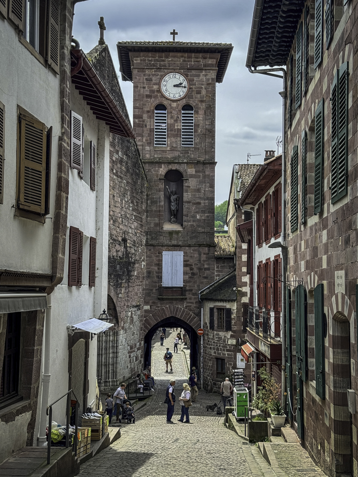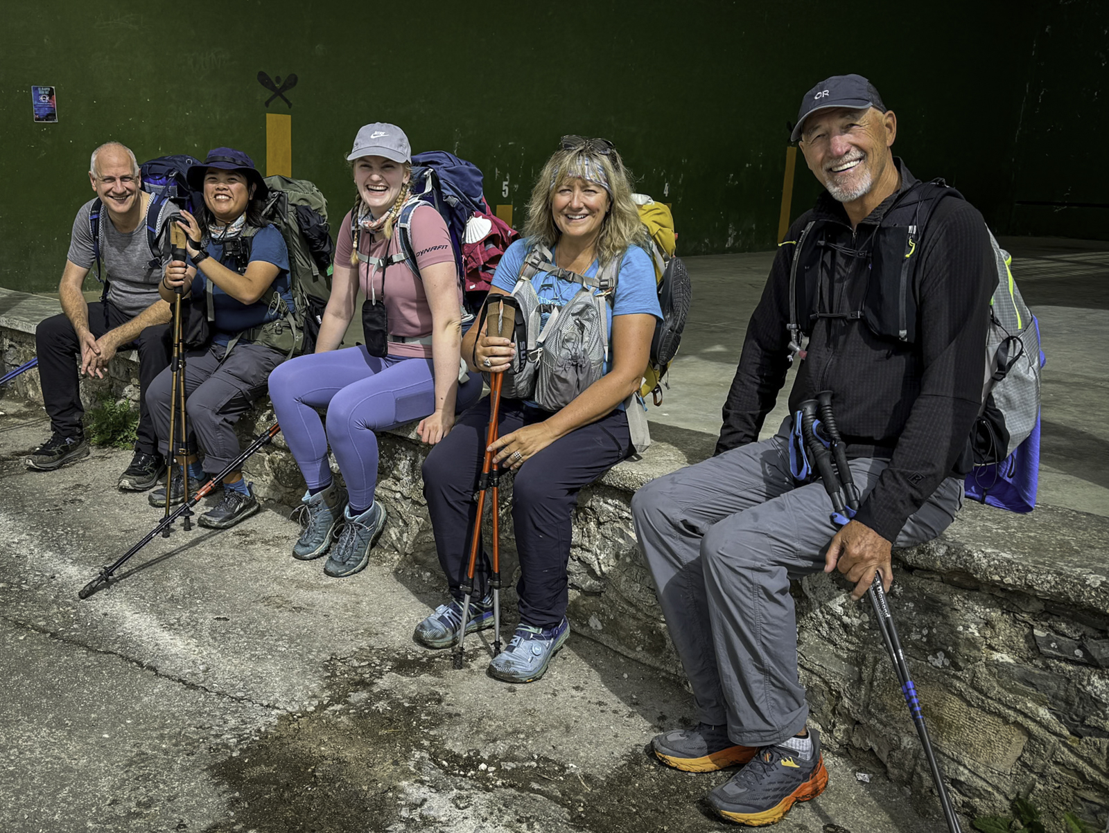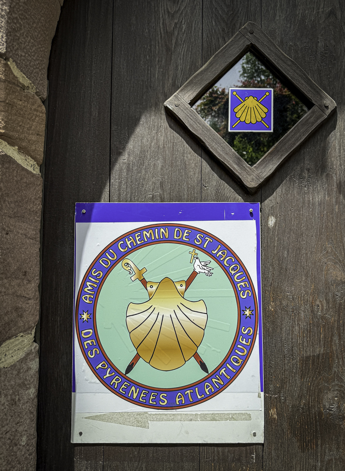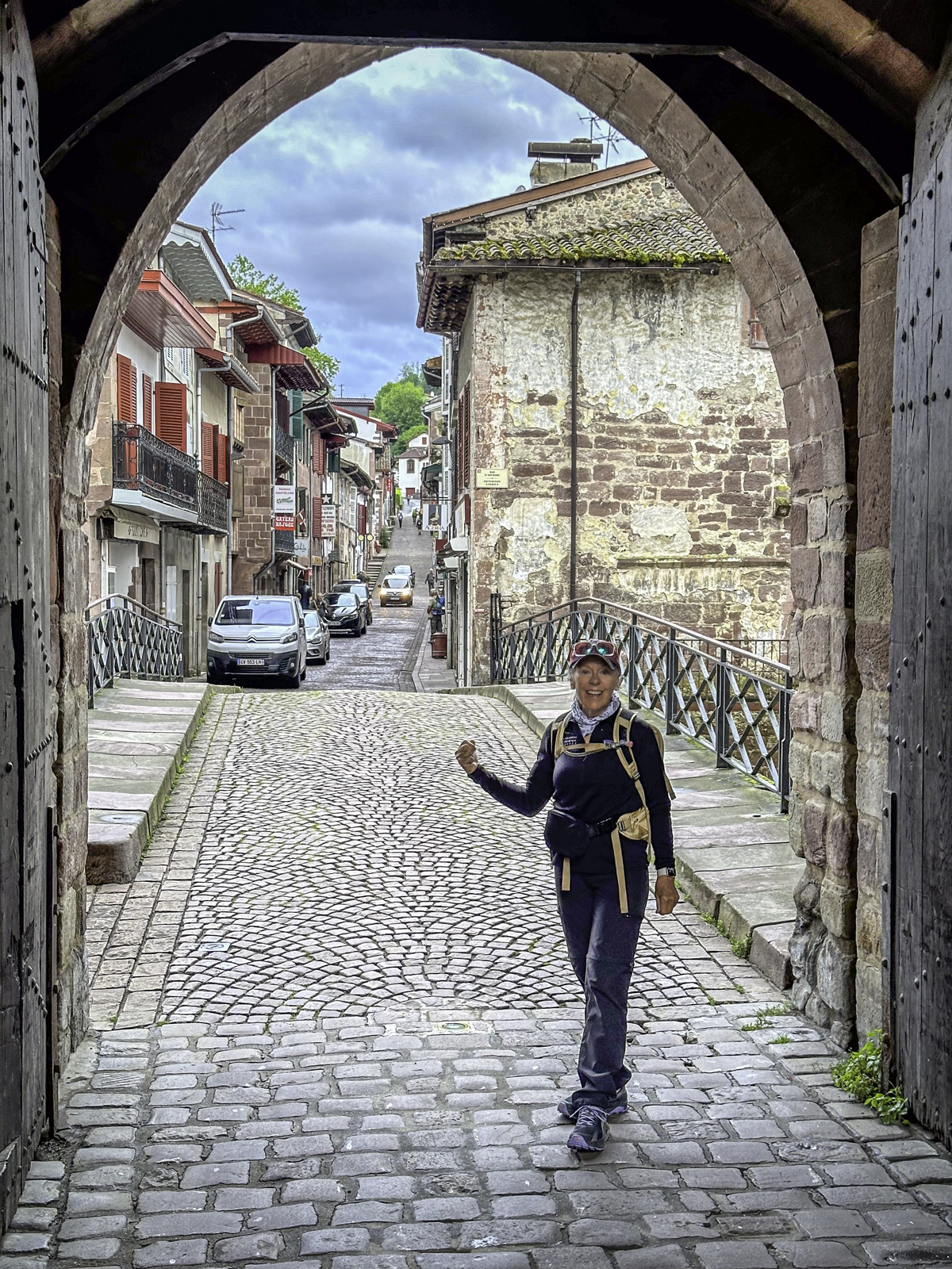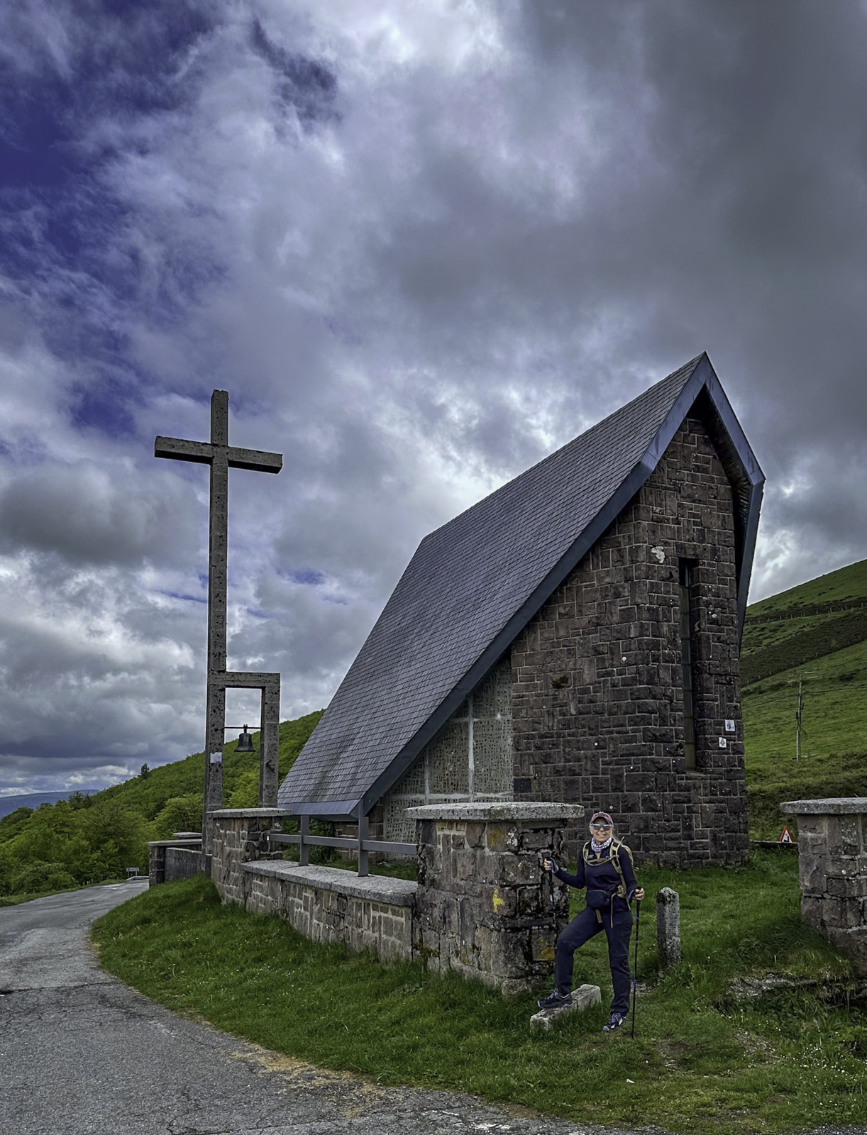 Today, May 14th, we begin our Camino Frances Pilgrimage, on a cloudy morning from St Jean Pied de Port leaving the Hotel Central at 8 am to start the climb on the lower route. This path, known as the “Napoleon Route” alternative, starts in the Basque region of France and crosses into Spain over the Pyrenees. The hike begins with a steady climb out of Saint-Jean, through pastoral scenery with rolling hills, meadows, and scattered farmhouses. We met a nice young couple from Spain and then stopped for lunch in Azanka, offering a well-deserved break during the hike, as it was beginning to rain. With the rustic, peaceful surroundings and a chance to recharge, we enjoyed a small tortilla, my first of many, before continuing the journey toward Roncevalles, “valley of thorns”, (Orreaga in Basque).