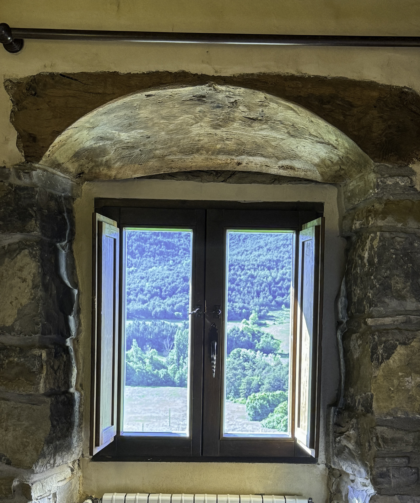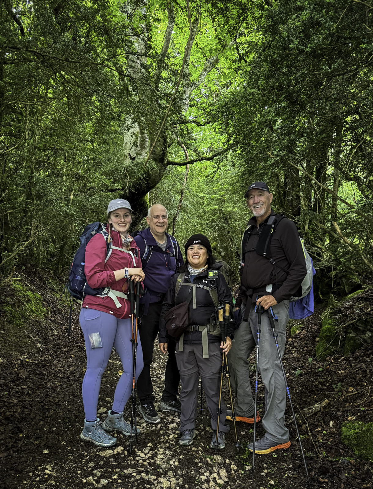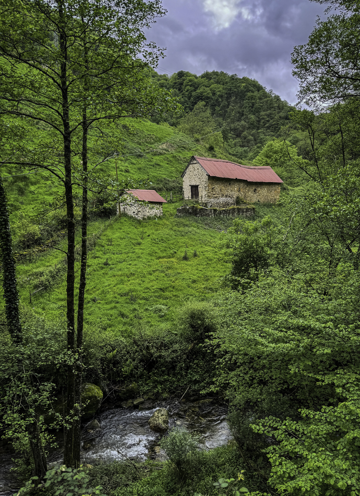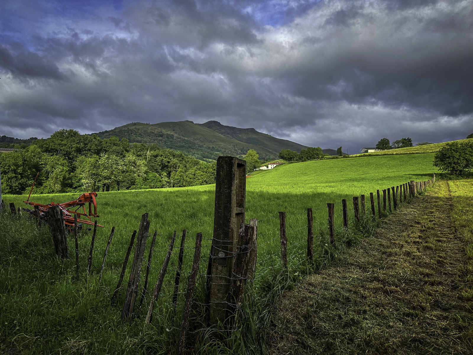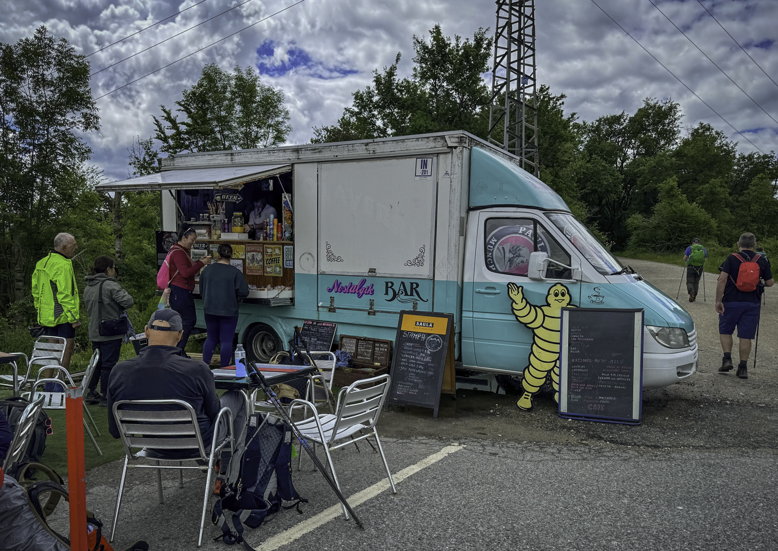 Today, May 14th, we begin our Camino Frances Pilgrimage, on a cloudy morning from St Jean Pied de Port leaving the Hotel Central at 8 am to start the climb on the lower route. This path, known as the “Napoleon Route” alternative, starts in the Basque region of France and crosses into Spain over the Pyrenees. The hike begins with a steady climb out of Saint-Jean, through pastoral scenery with rolling hills, meadows, and scattered farmhouses. We met a nice young couple from Spain and then stopped for lunch in Azanka, offering a well-deserved break during the hike, as it was beginning to rain. With the rustic, peaceful surroundings and a chance to recharge, we enjoyed a small tortilla, my first of many, before continuing the journey toward Roncevalles, “valley of thorns”, (Orreaga in Basque).