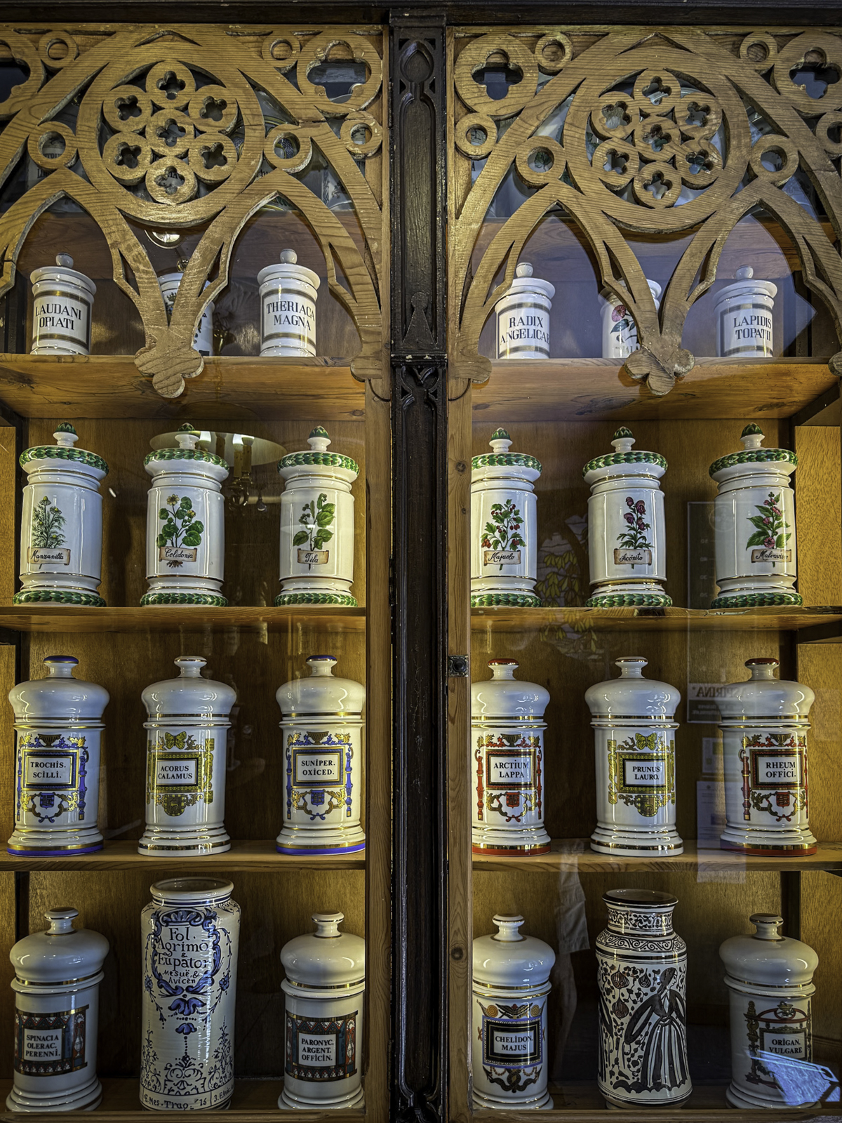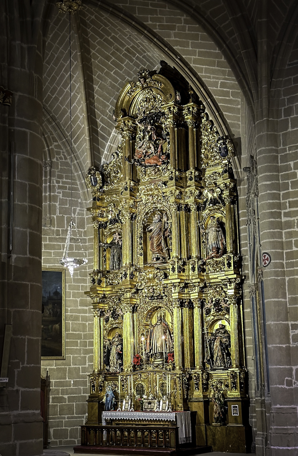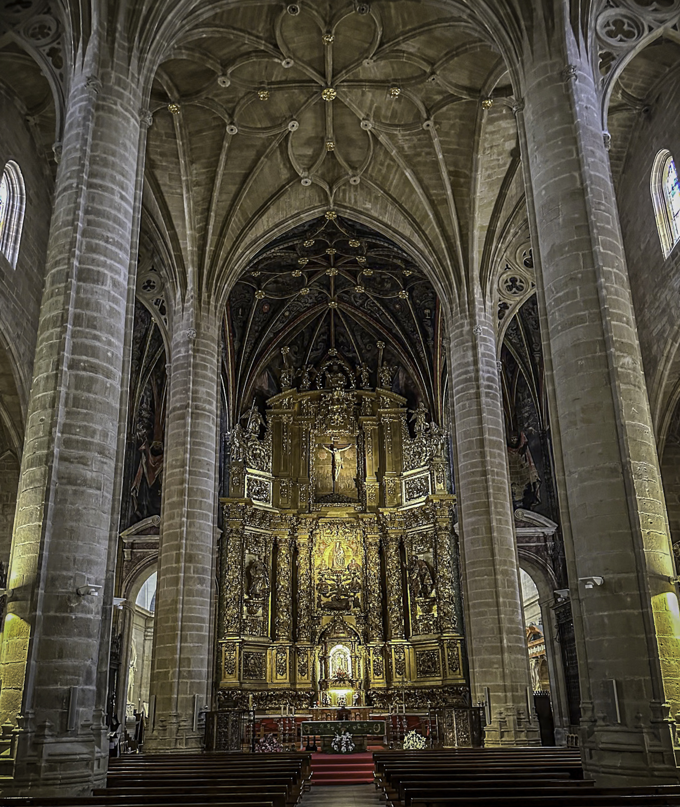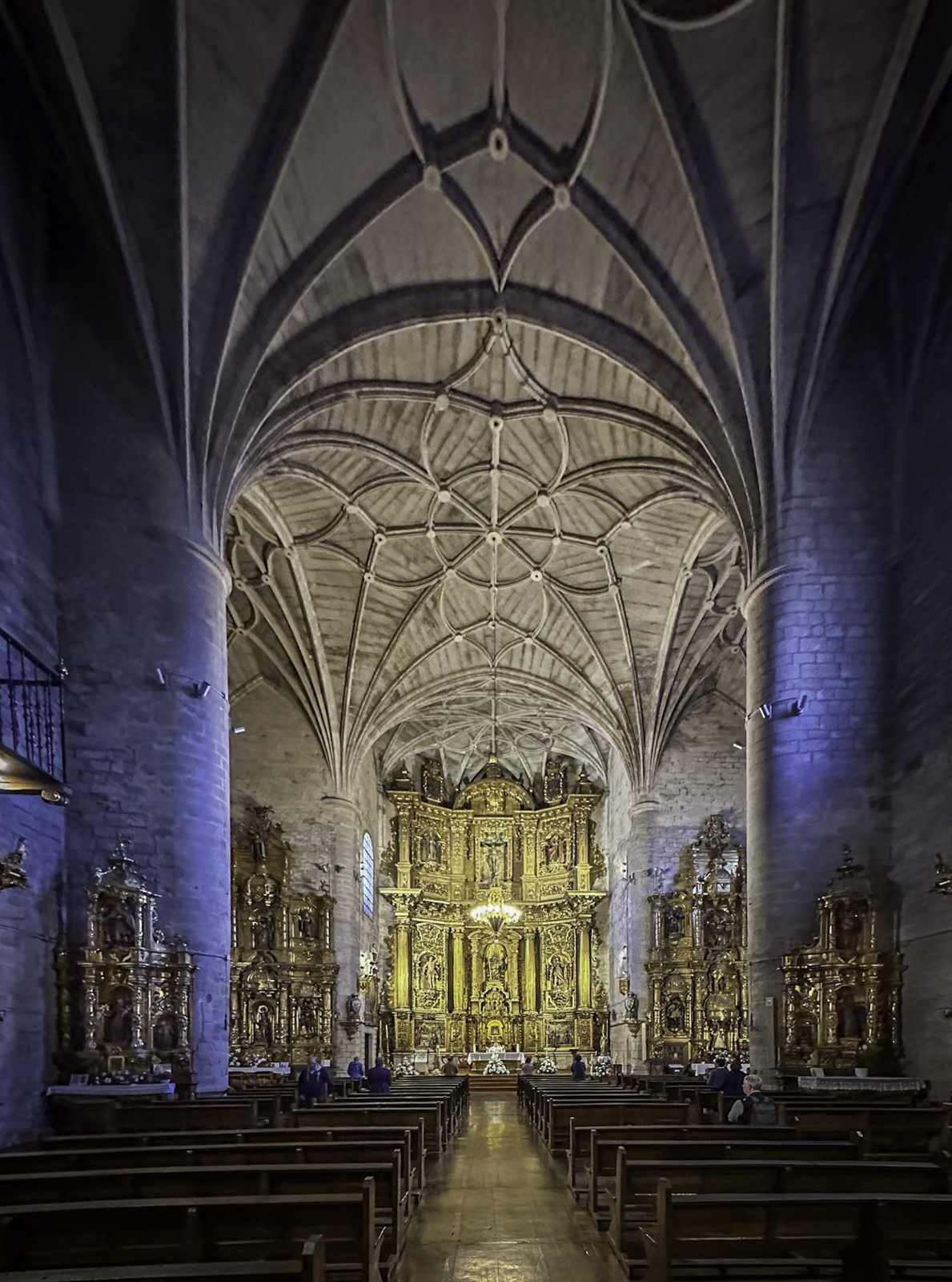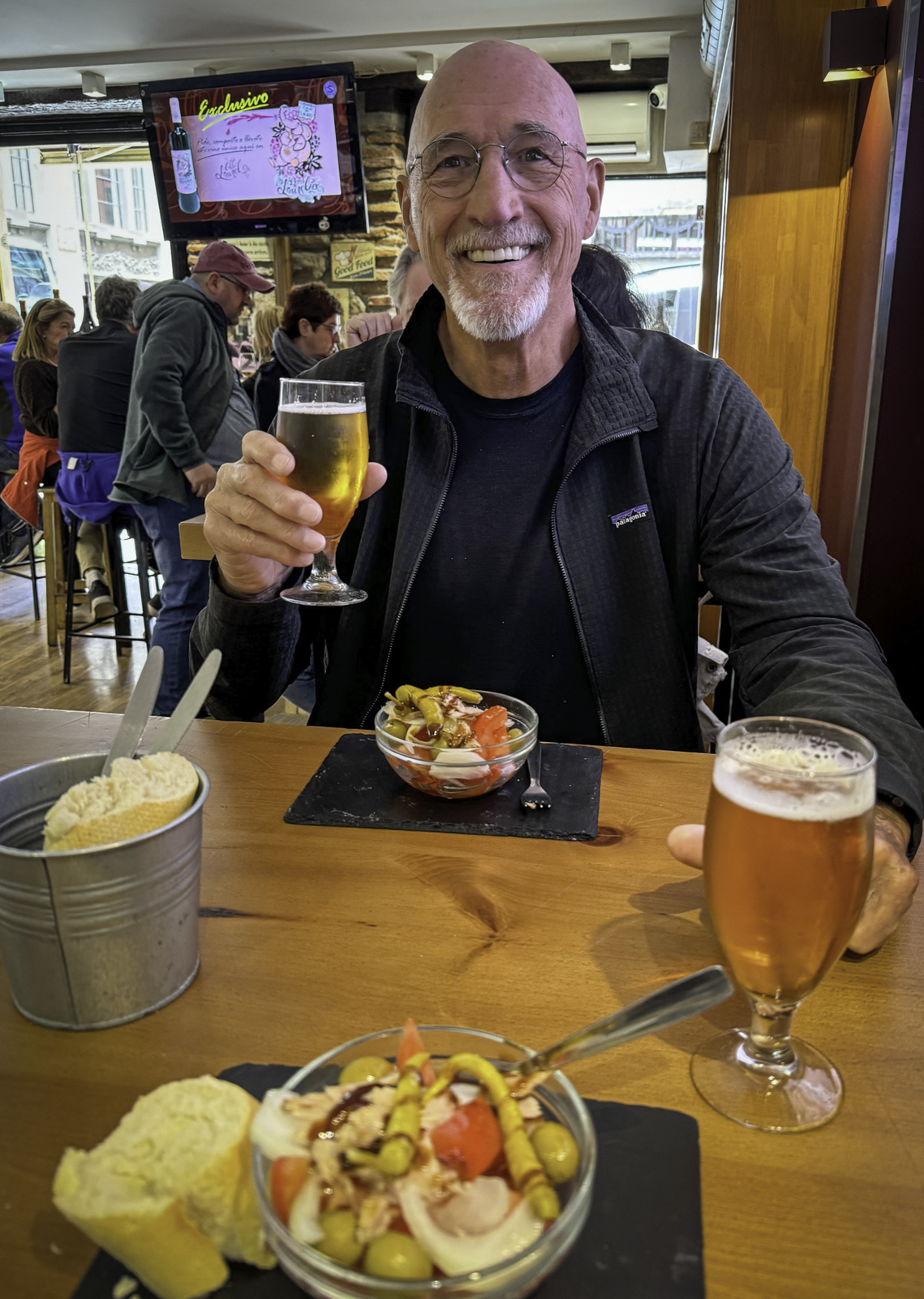 One of the most striking features is the ornate High Altar, intricately decorated with gilded carvings and statues. The altar is crowned by an impressive retablo (altarpiece) filled with religious iconography, sculptures and saints. The golden tones and detailed craftsmanship of the retablo create a sense of awe and reverence. The interior also features stunning stained glass windows, which bathe the space in colorful light, adding to the atmosphere of sacredness. We gazed with wonder at the harmonious blend of light, color, and ornate decoration, creating a space that is both majestic and deeply spiritual. We continued exploring Logrono and went into a 120 year old pharmacy, and had lunch at a small cafe on Calle del Laurel. Returning to the hotel we had some time to rest before dinner. Click on thumbnail to view images