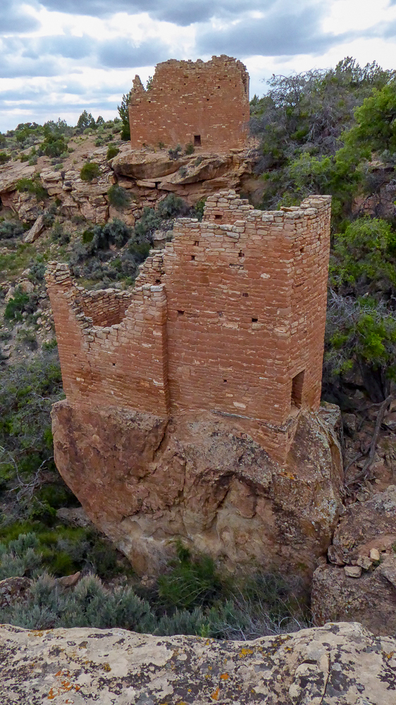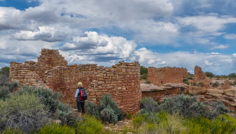 At the Hovenweep Visitor Center we watched a great short film about all the ruins that exist here in this canyon. We walked the Rim Trail Loop, about 2 miles, with views of all the wonderful ruins; the Stonghold House, Twin Towers, Rim Rock House, Square Tower, Hovenweep House, Hovenweep Castle, and Tower Point. The Twin Towers were very carefully constructed, amazing architecture, the two buildings rise from the native bedrock, their walls almost touching. Hovenweep means “deserted valley”, it’s hard to imagine that these solitary canyons once echoed with the cries and laughter of hundreds of men, women and children. Hovenweep is considered to be the finest examples of ancestral Puebloan masonry found anywhere, and we were definitely in awe as we walked through the canyons, these ruins evoke feelings of wonder at the motivations and resourcefulness of their builders. We went to three more ruins of the Hovenweep, the Holly, Horseshoe and Hackberry just off the paved road. The Holly includes Tilted Tower, Holly Tower and Holly House which are located at the end of Keeley Canyon. Loved the Holly Tower, built atop a large sandstone boulder in the canyon bottom, sometime after AD 1200, and you can still see the steps and hand-holds that were pecked into the boulder below the entrance. Holly House is the largest ruin here and the two wood beams at the top of the Holly House are the original beams constructed 800 years ago. Amazing!!!! Our last ruins were a one mile walk round trip that includes the structures at the Horseshoe and Hackberry sites, built 800 years ago. Finally we headed back after visiting many, many different Ancestral Puebloan ruins, I am on overload. So we stopped at the Pepperhead Restaurant in Cortez for dinner and a margarita, yummy!! Click on thumbnail to view images